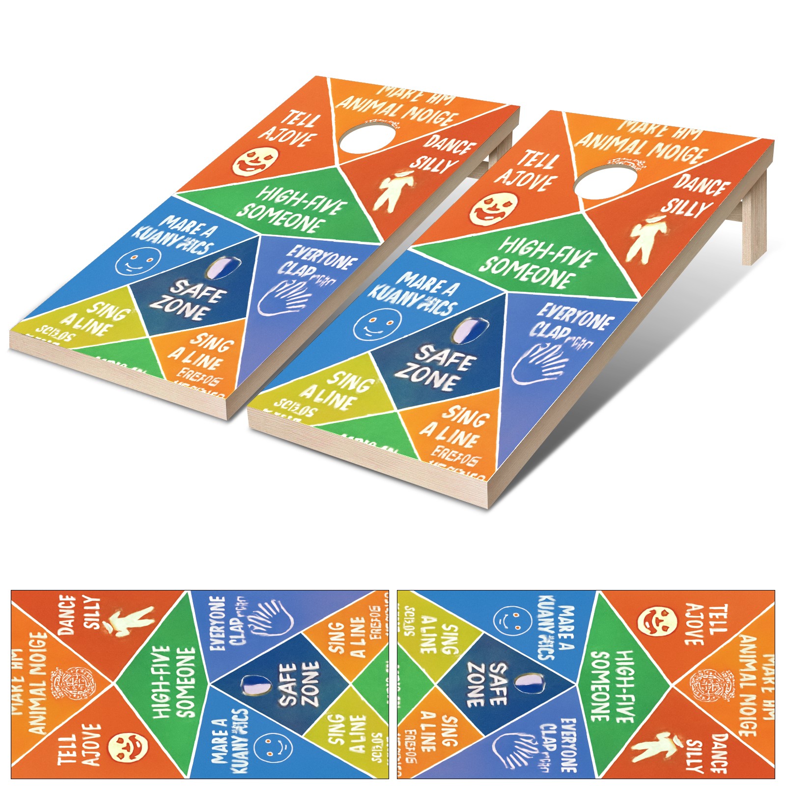 • <p>Whether you’re a casual cornhole player or a backyard party host, these&nbsp;Custom Cornhole Wrap Stickers&nbsp;are designed to make your game setup stand out—without the hassle of complicated DIY or flimsy decor.</p> <p>Our 2-piece vinyl decals check every box for outdoor use: Thick, waterproof material shrugs off rain, dew, and grass stains (wipe clean in 10 seconds); UV-resistant ink keeps bold, funny patterns vibrant even after weeks of summer sun. No more faded, peeling stickers that ruin your game day vibe.</p> <p>Installation? It’s so easy even your kid can help: The low-tack adhesive lets you reposition the decal until it’s perfectly aligned (no bubbles, no wrinkles), and the pre-cut size fits standard 48×24 inch cornhole boards like a glove.</p> <p>Beyond the game: Stick them on garage walls, patio tables, or picnic coolers to add a playful touch to your outdoor space. Perfect for tailgates, 4th of July parties, or lazy weekend barbecues—this isn’t just a sticker set, it’s a quick way to make every gathering feel more fun.</p> <p>We keep it simple: Quality materials, easy setup, and custom options that let you show off your style. If you’re tired of boring cornhole boards that blend in, this is the upgrade you’ve been looking for.</p>