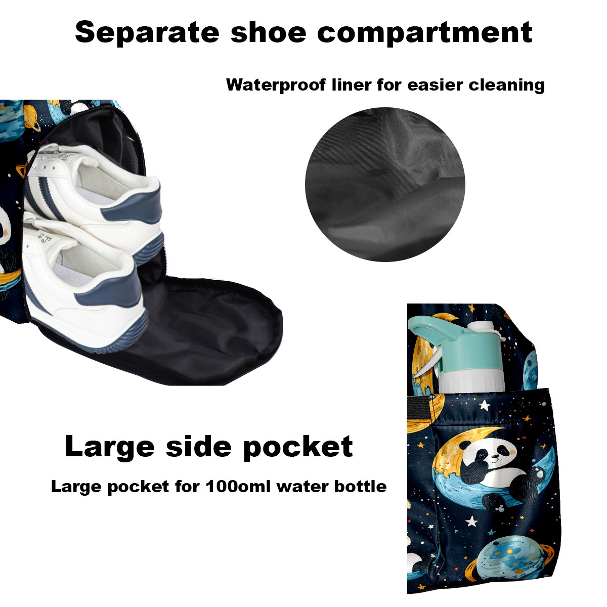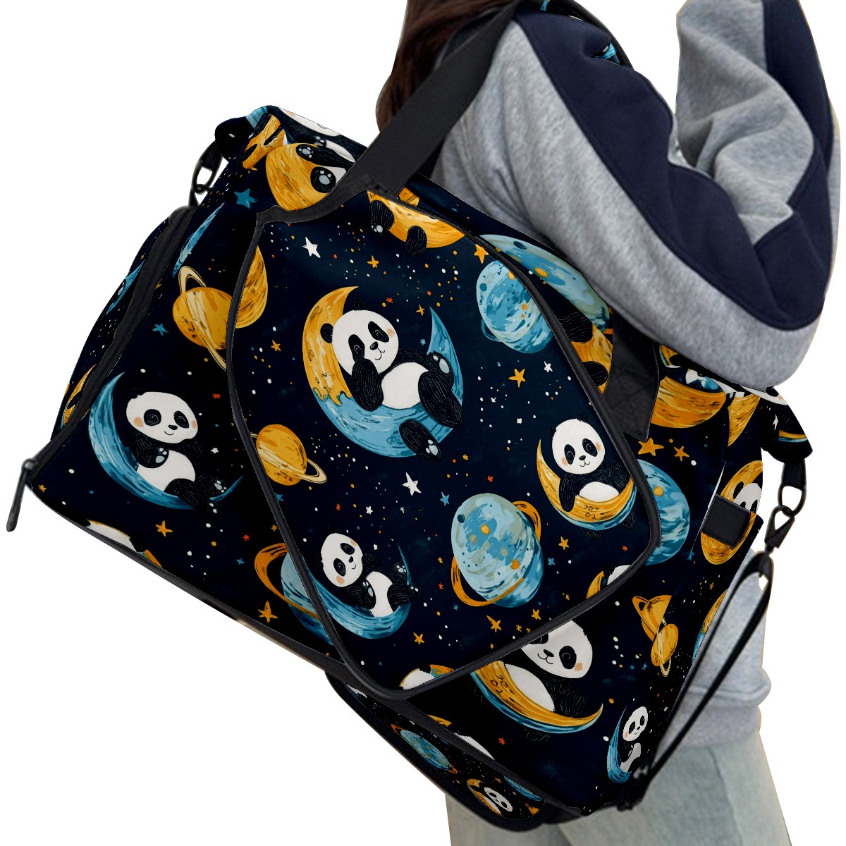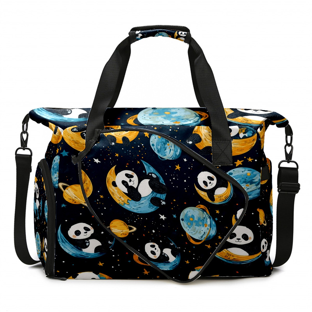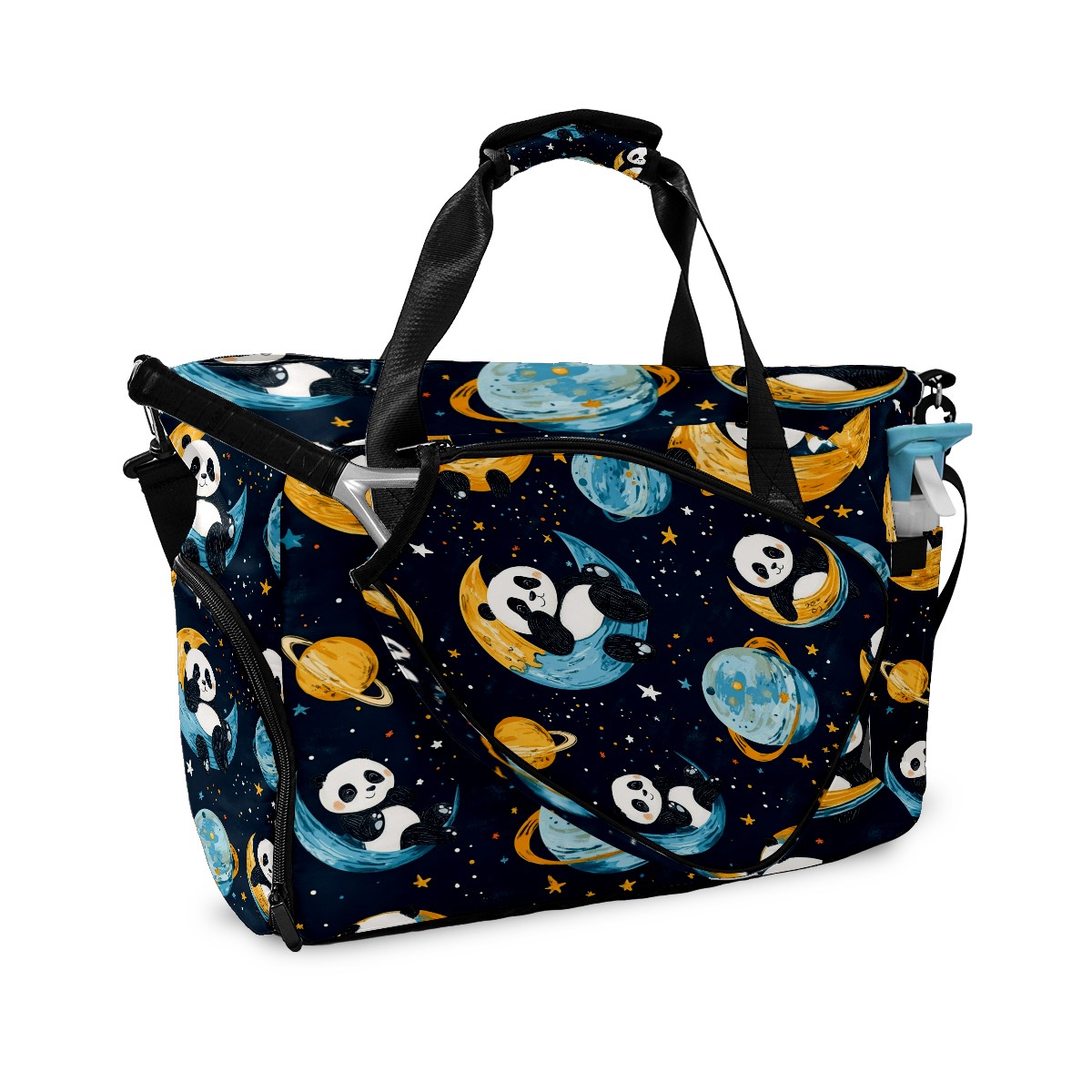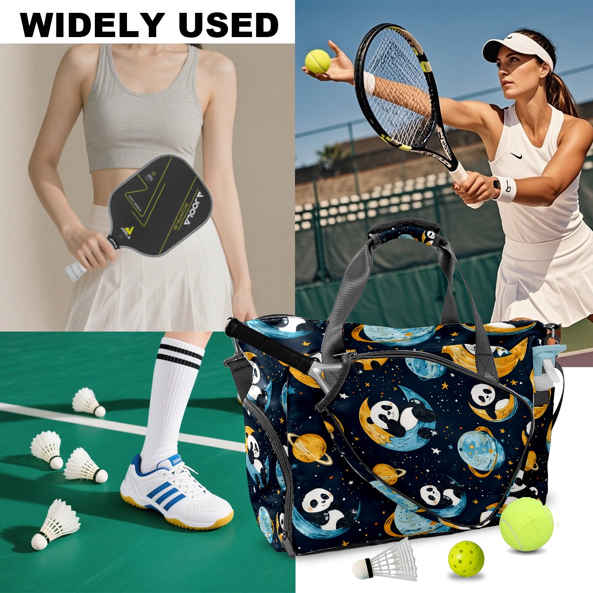 Pickleball Tote Bag Carryall for Paddles Balls and Accessories, Portable Lightweight Gear Bag for Players(Playful Pandas Floating)