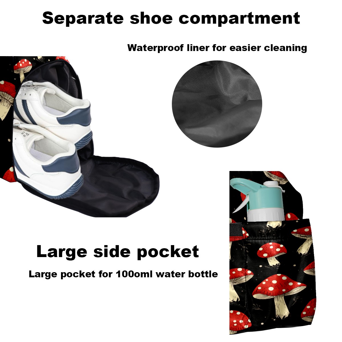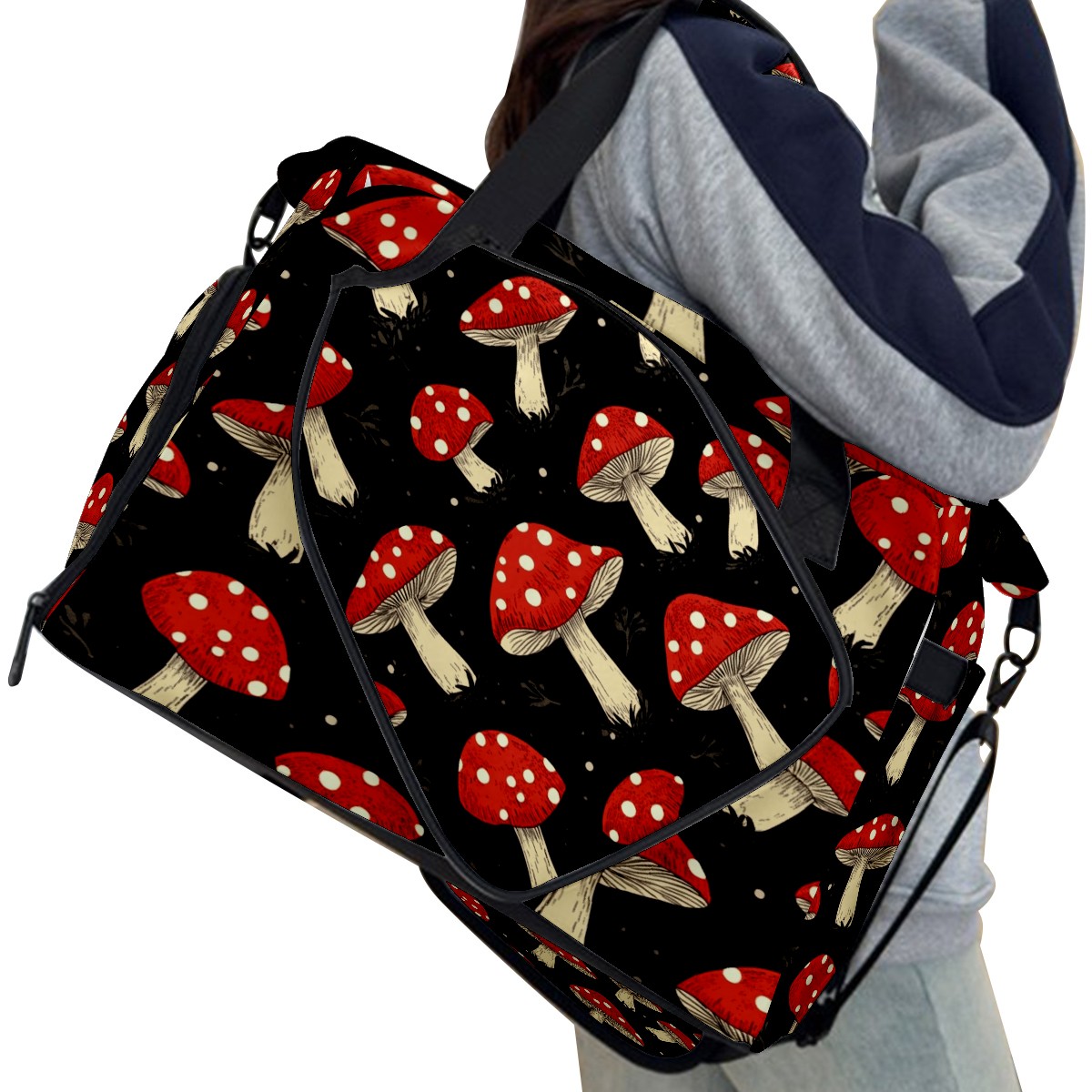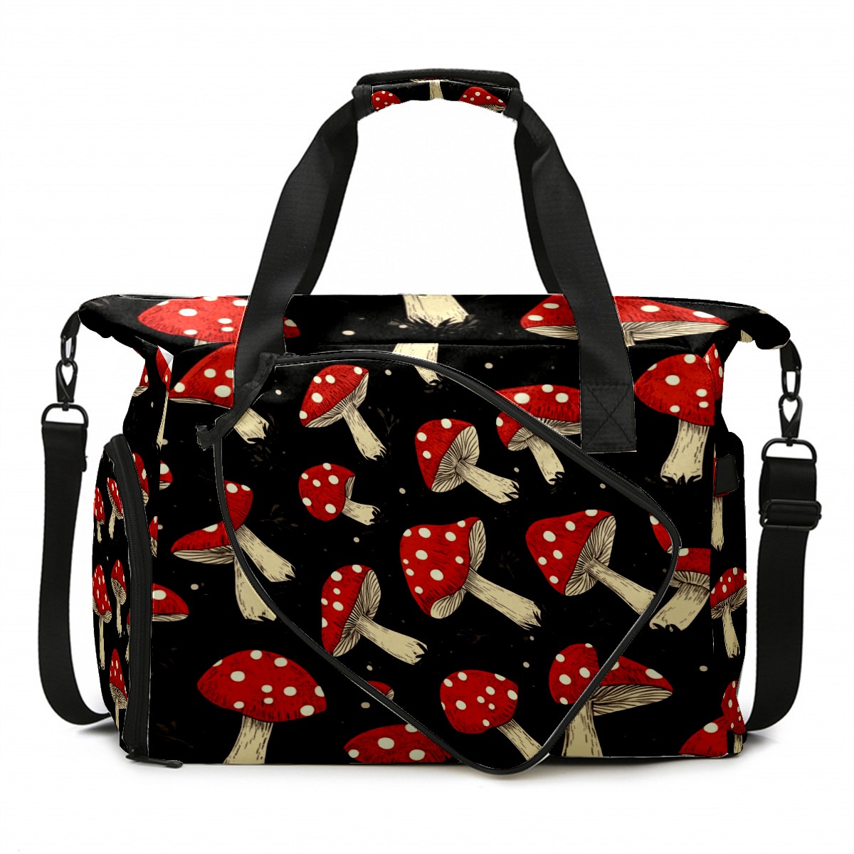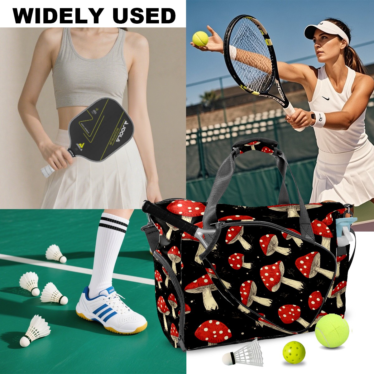 Pickleball Tote Bag Carryall for Paddles Balls and Accessories, Portable Lightweight Gear Bag for Players(Red Mushrooms)