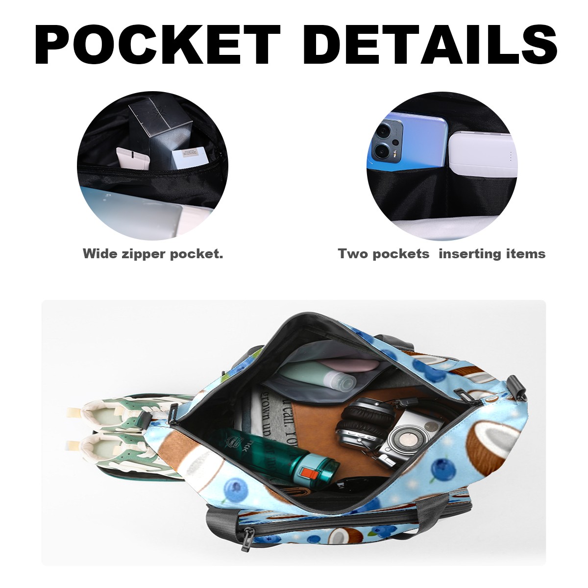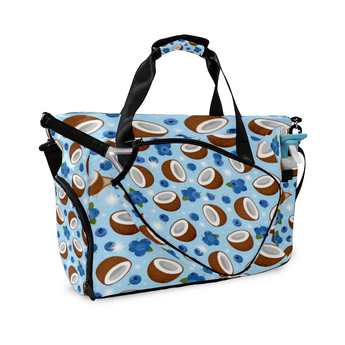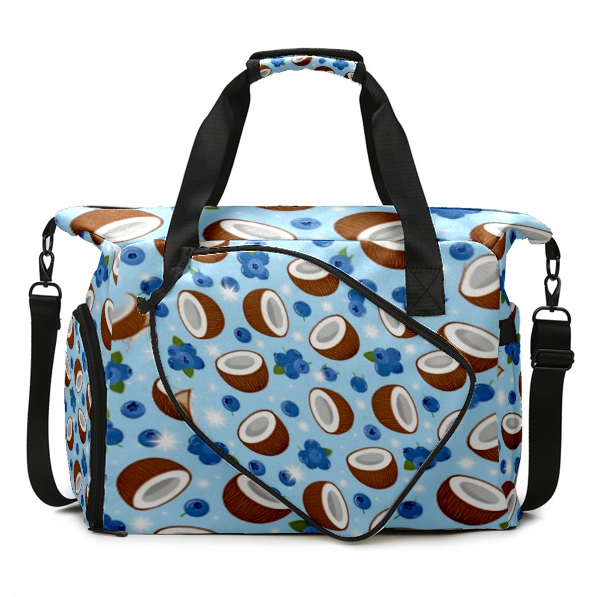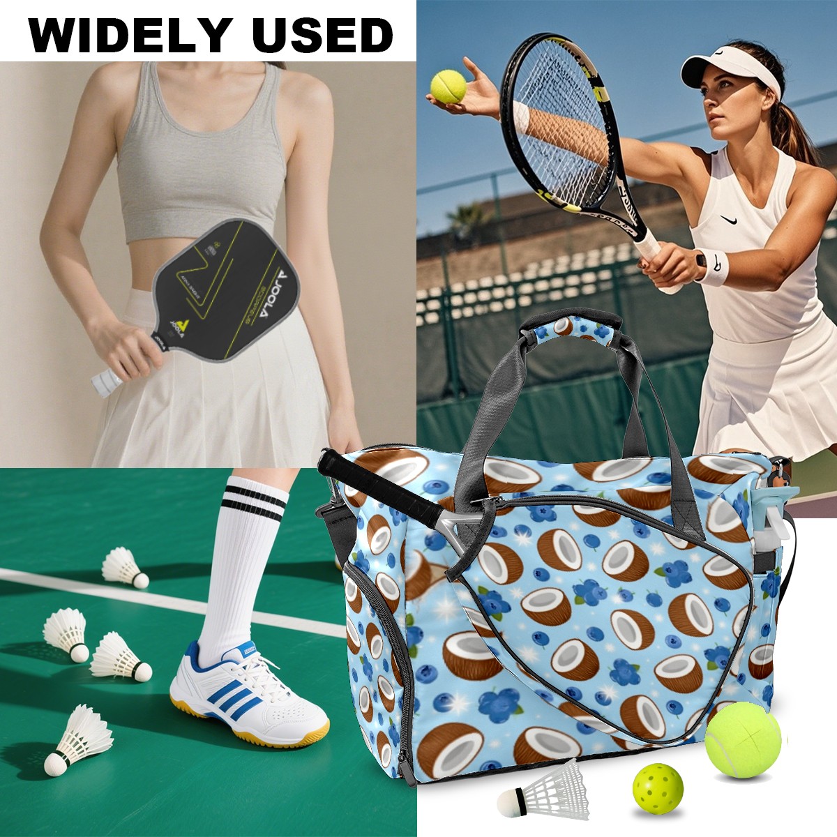 Pickleball Tote Bag Carryall for Paddles Balls and Accessories, Portable Lightweight Gear Bag for Players(Coconut Blueberry)