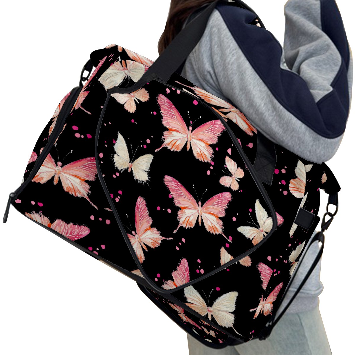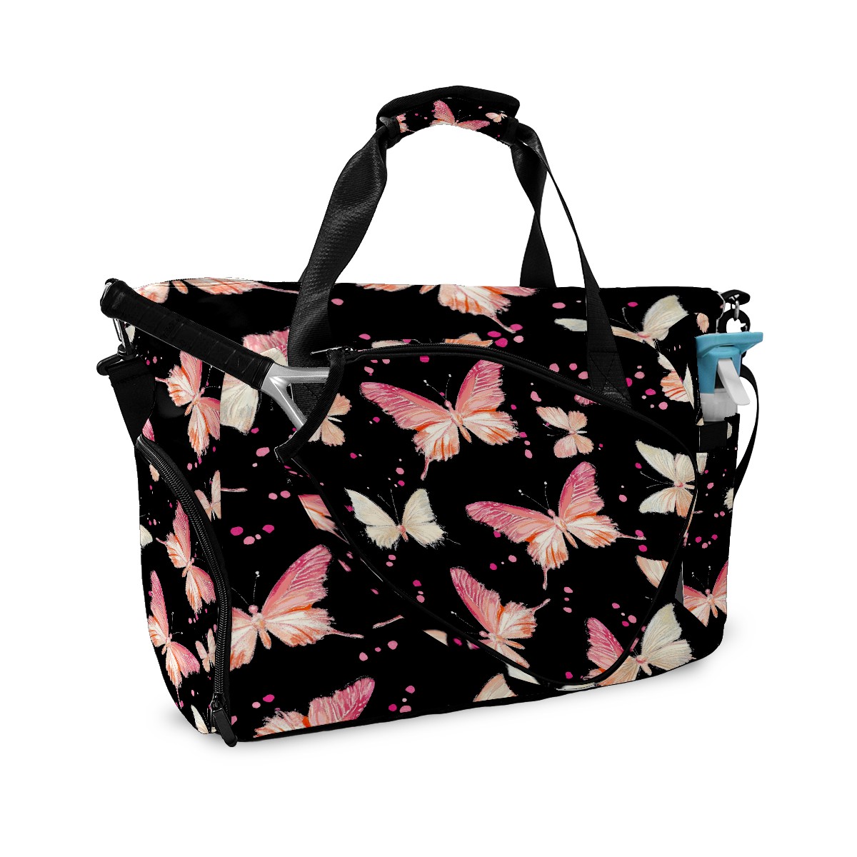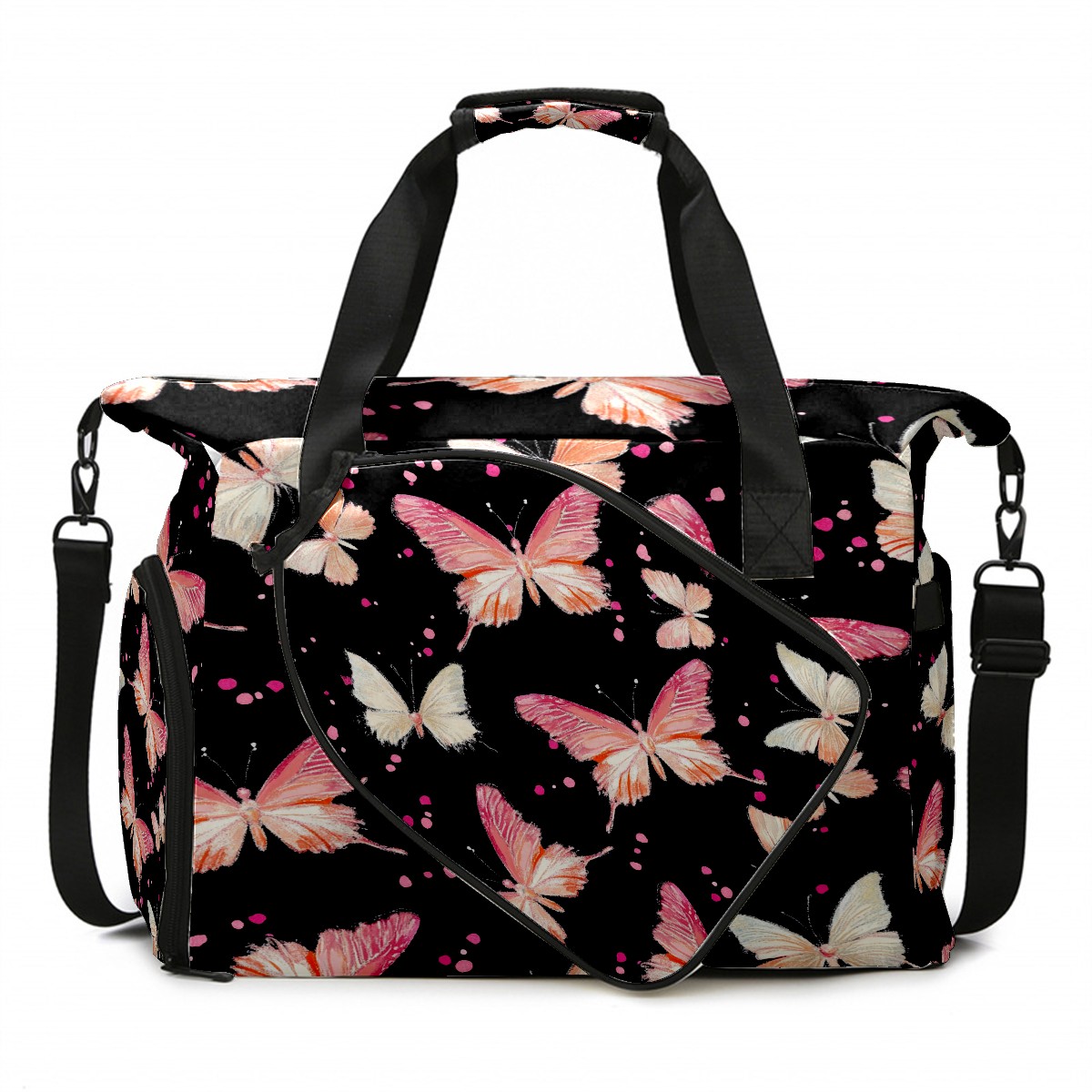 Pickleball Tote Bag Carryall for Paddles Balls and Accessories, Portable Lightweight Gear Bag for Players(Pink And White Butterflies)