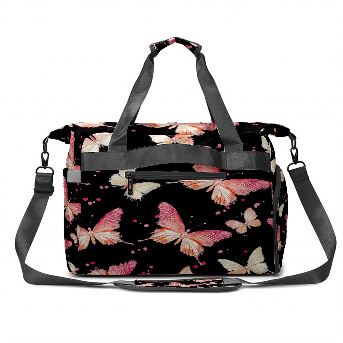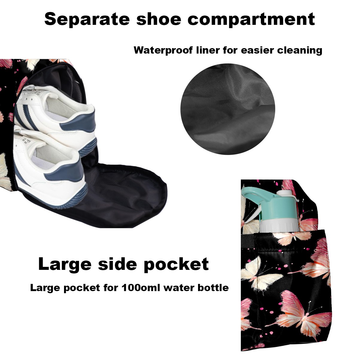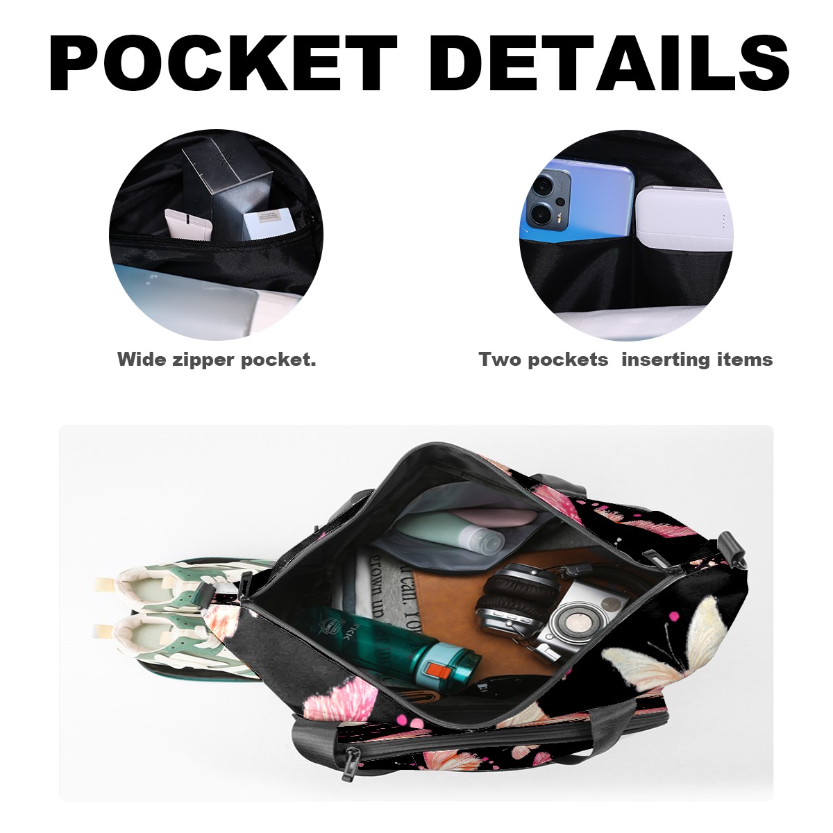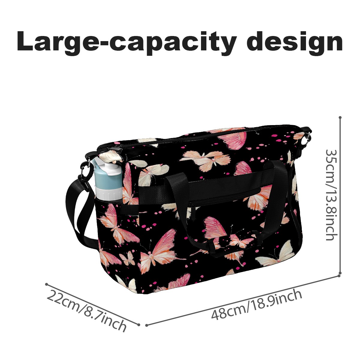 Pickleball Tote Bag Carryall for Paddles Balls and Accessories, Portable Lightweight Gear Bag for Players(Pink And White Butterflies)