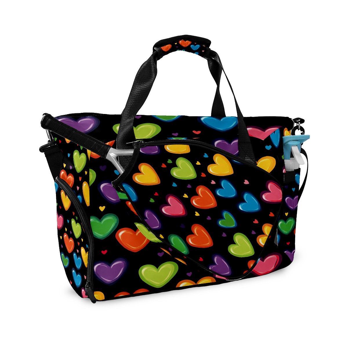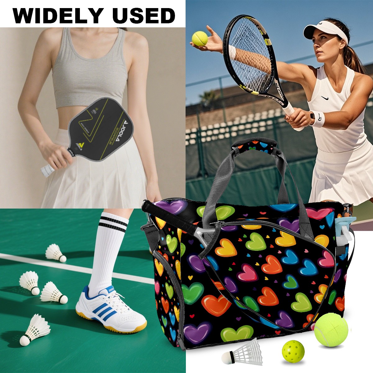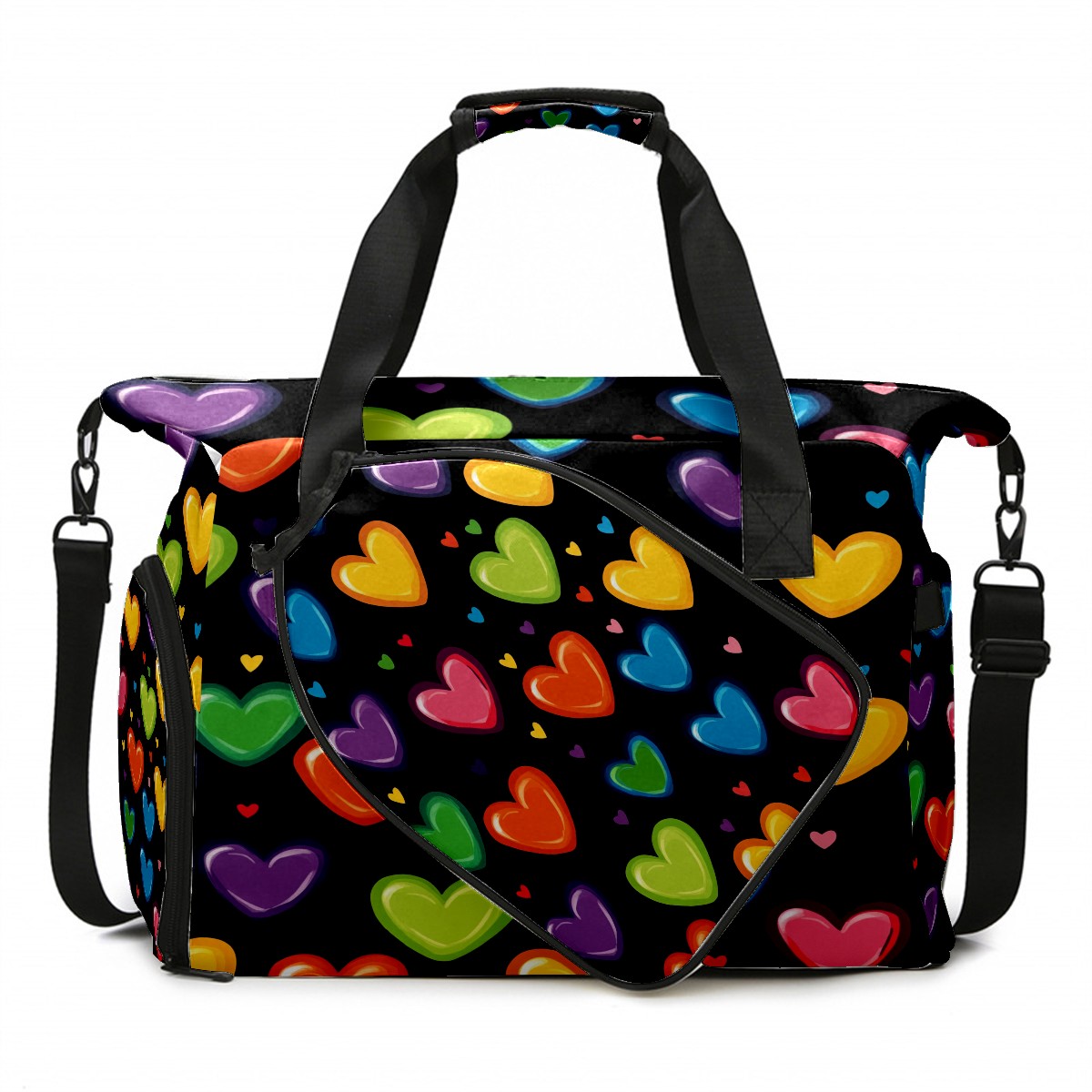 Pickleball Tote Bag Carryall for Paddles Balls and Accessories, Portable Lightweight Gear Bag for Players(Hearts In Rainbow Colors)