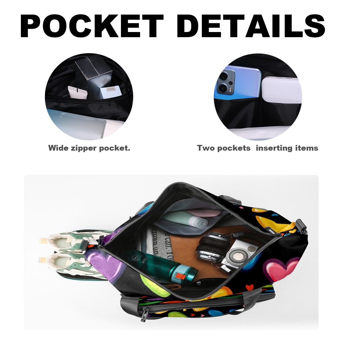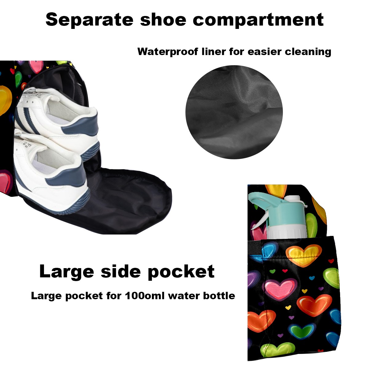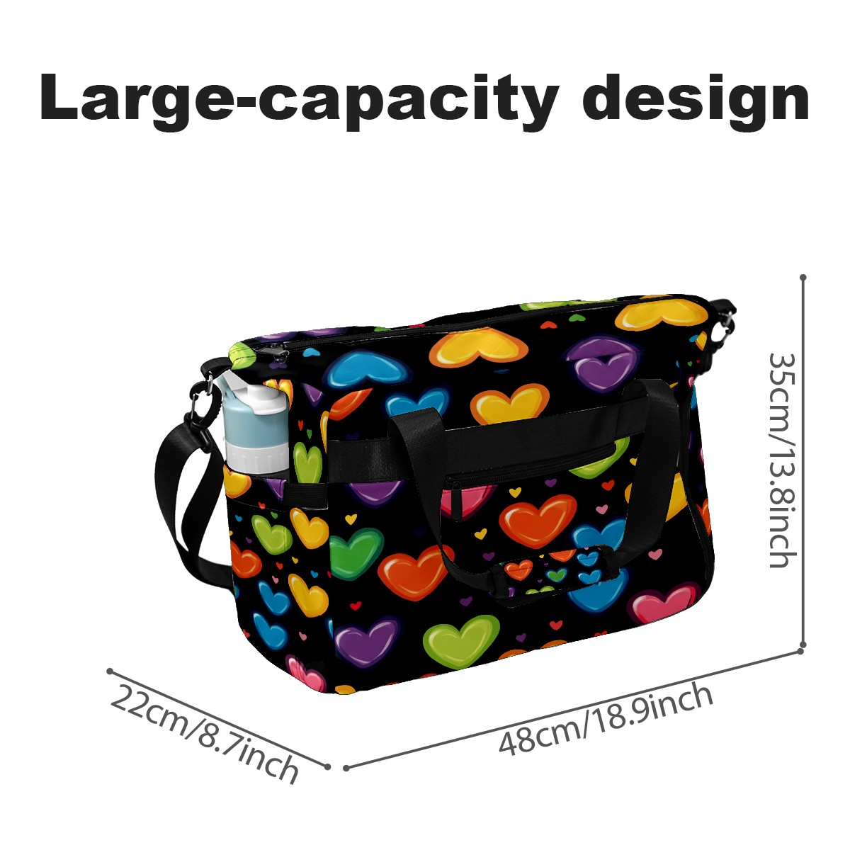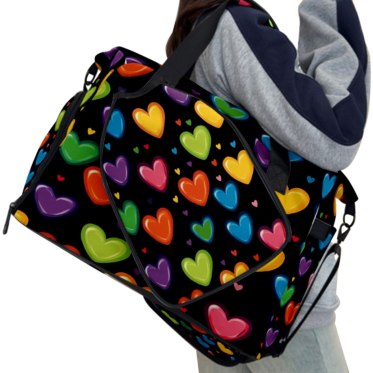 Pickleball Tote Bag Carryall for Paddles Balls and Accessories, Portable Lightweight Gear Bag for Players(Hearts In Rainbow Colors)