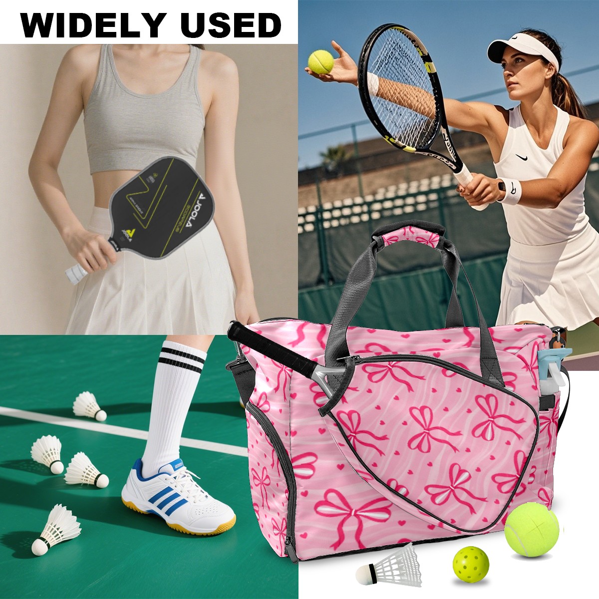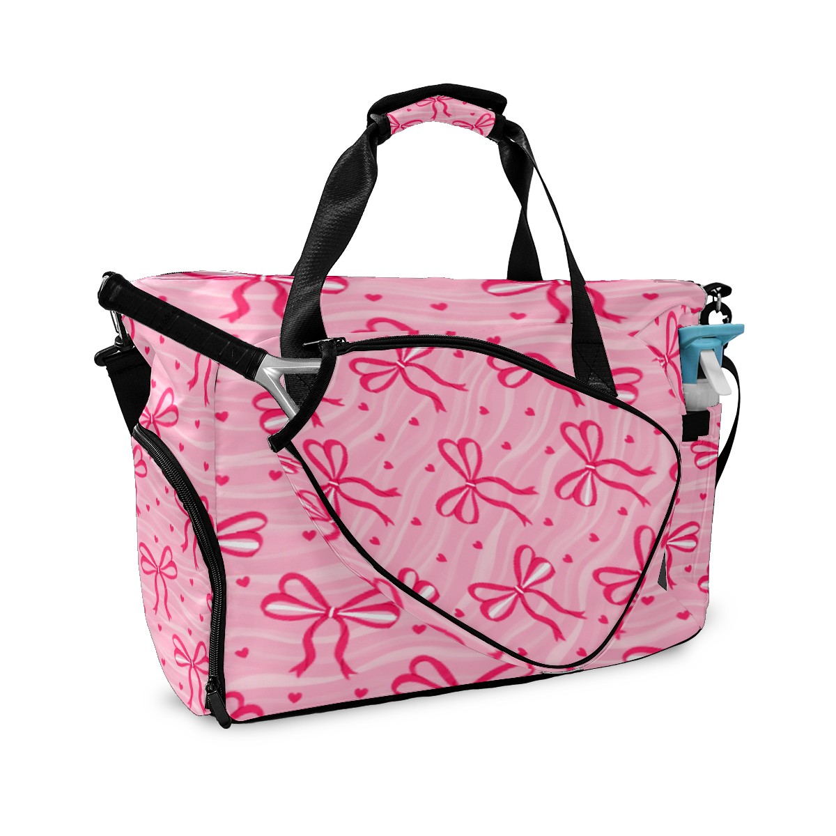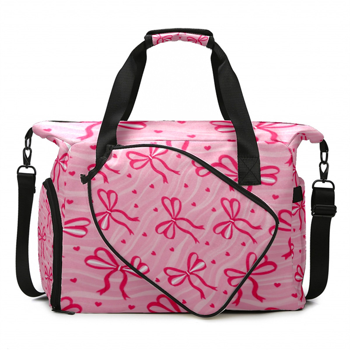 Pickleball Tote Bag Carryall for Paddles Balls and Accessories, Portable Lightweight Gear Bag for Players(Pink Bow)