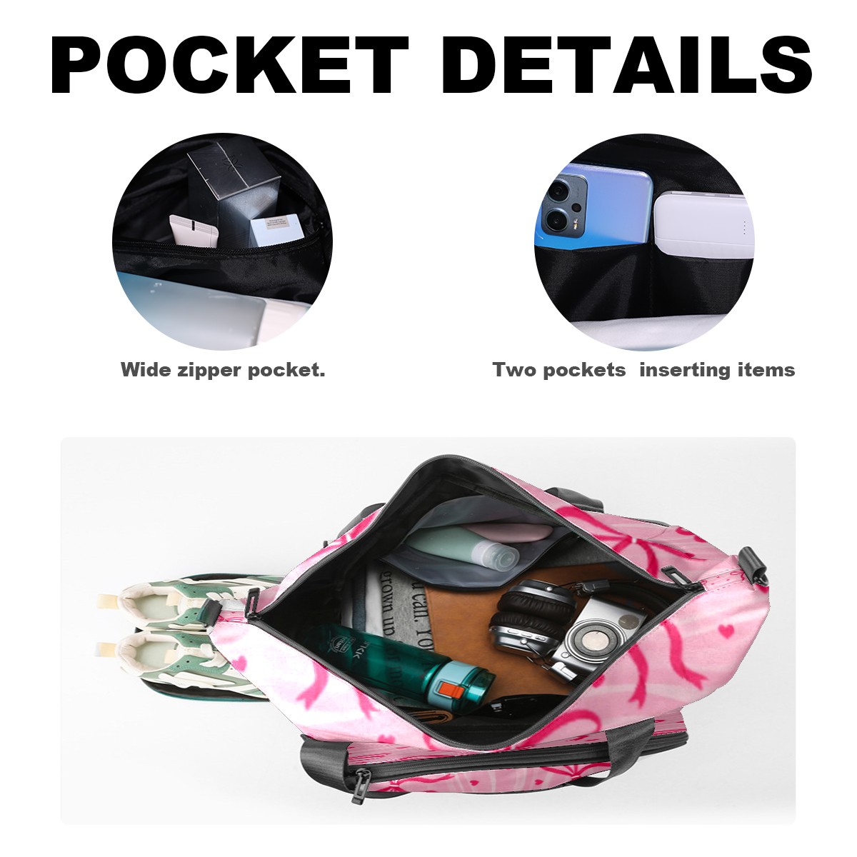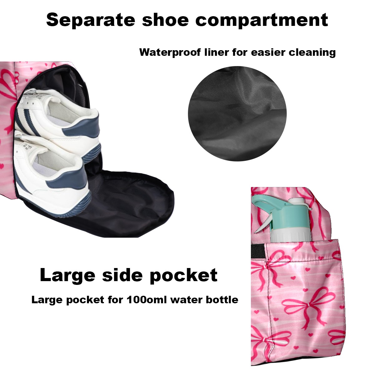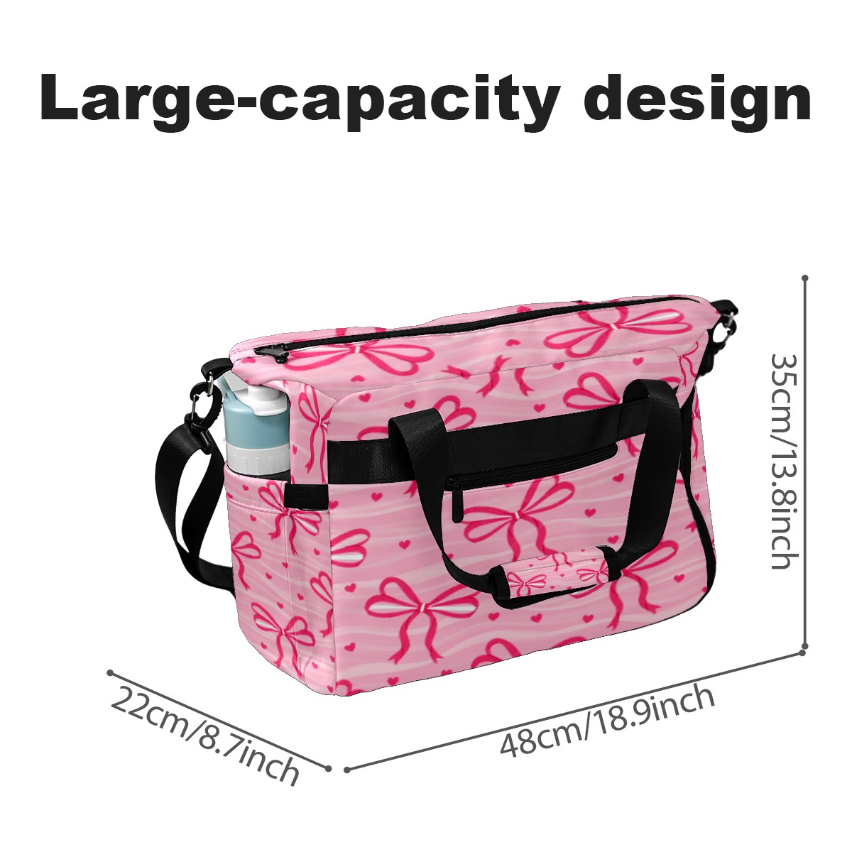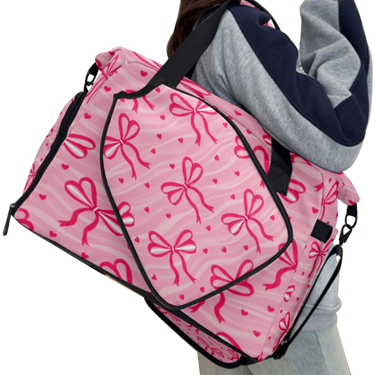 Pickleball Tote Bag Carryall for Paddles Balls and Accessories, Portable Lightweight Gear Bag for Players(Pink Bow)