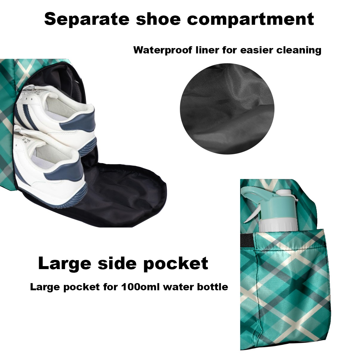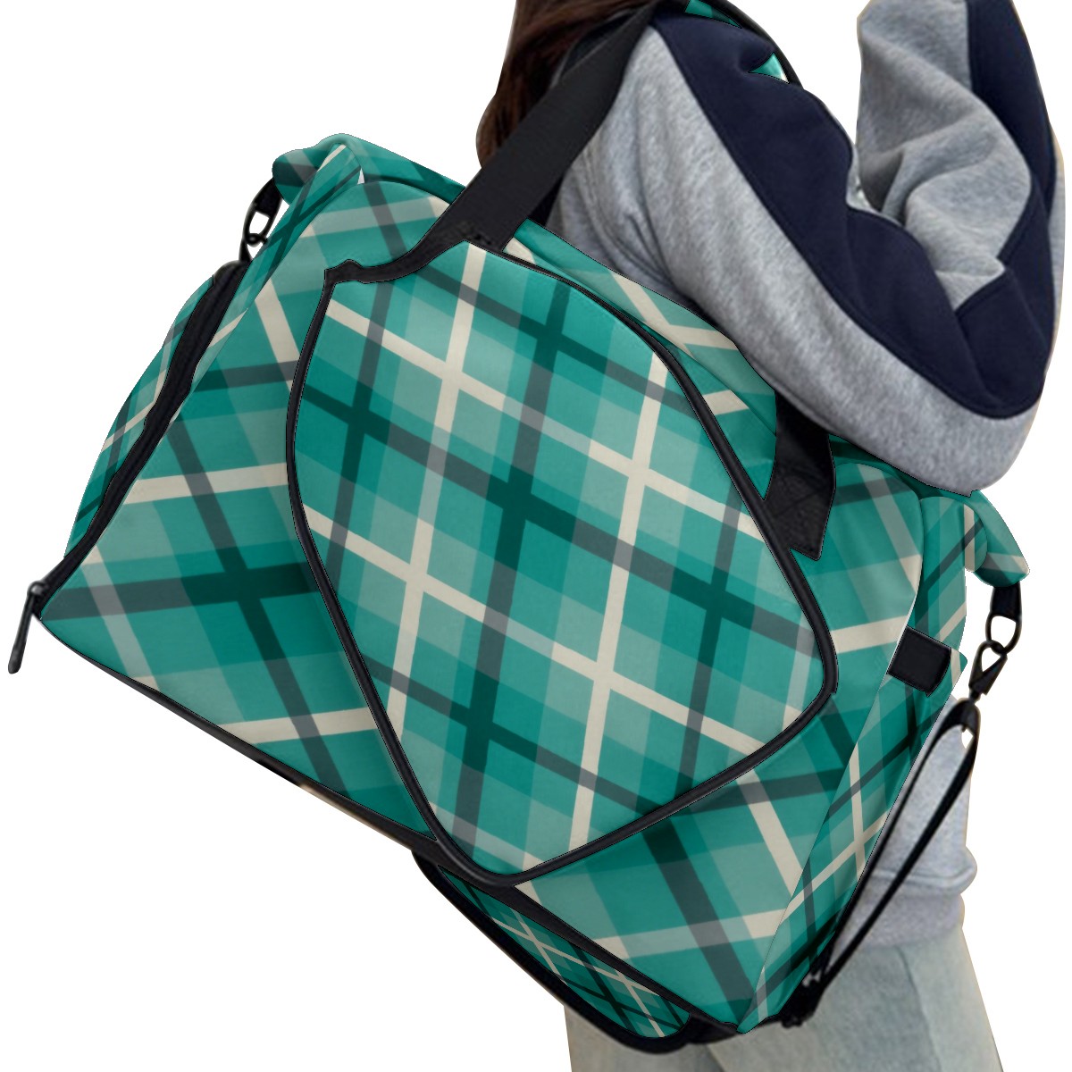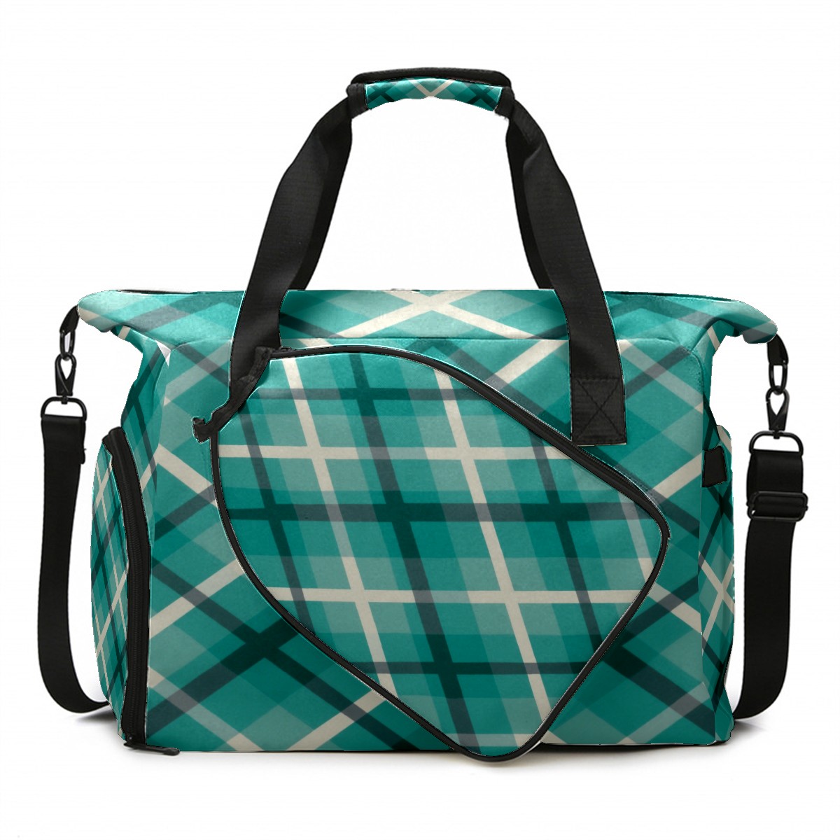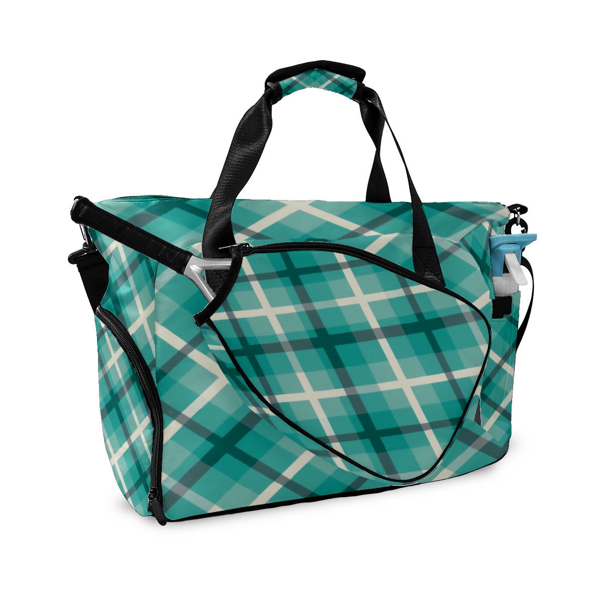 Pickleball Tote Bag Carryall for Paddles Balls and Accessories, Portable Lightweight Gear Bag for Players(Blue Checkered)