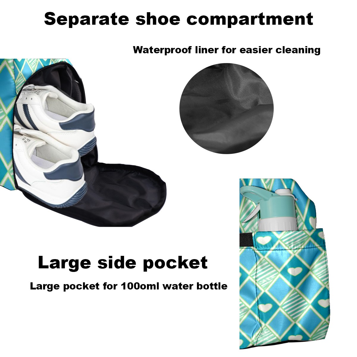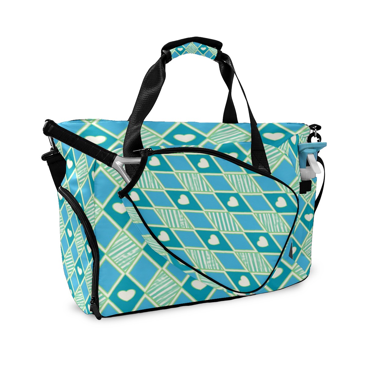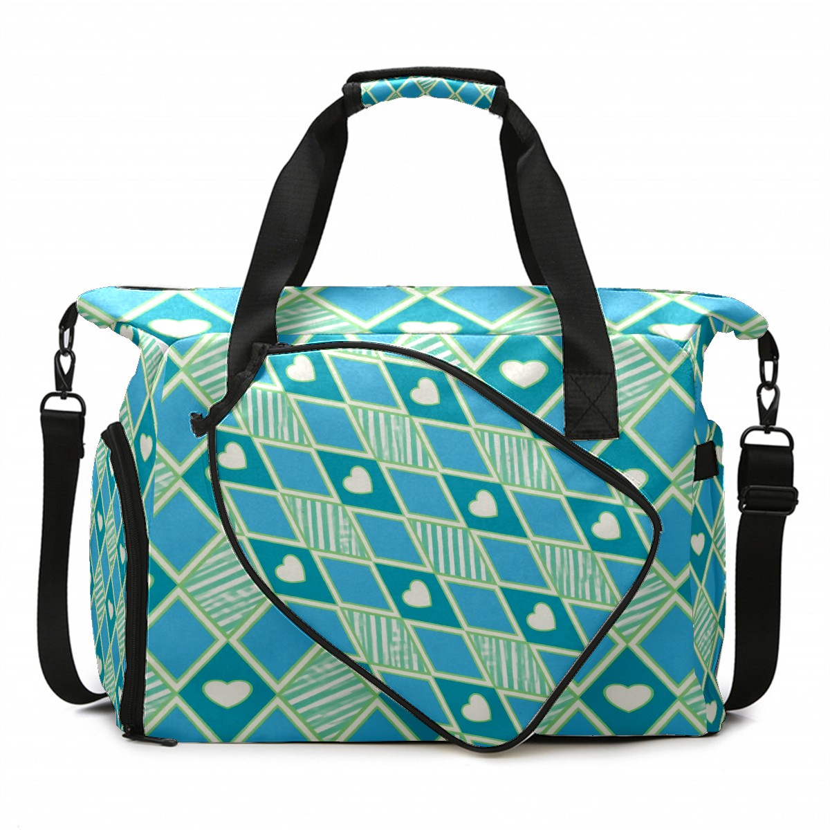 Pickleball Tote Bag Carryall for Paddles Balls and Accessories, Portable Lightweight Gear Bag for Players(Blue Green Checkered)