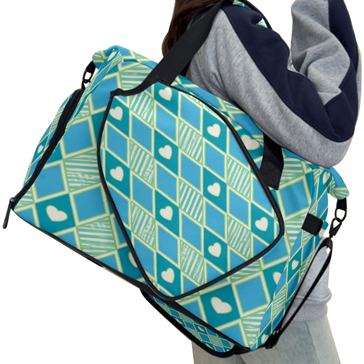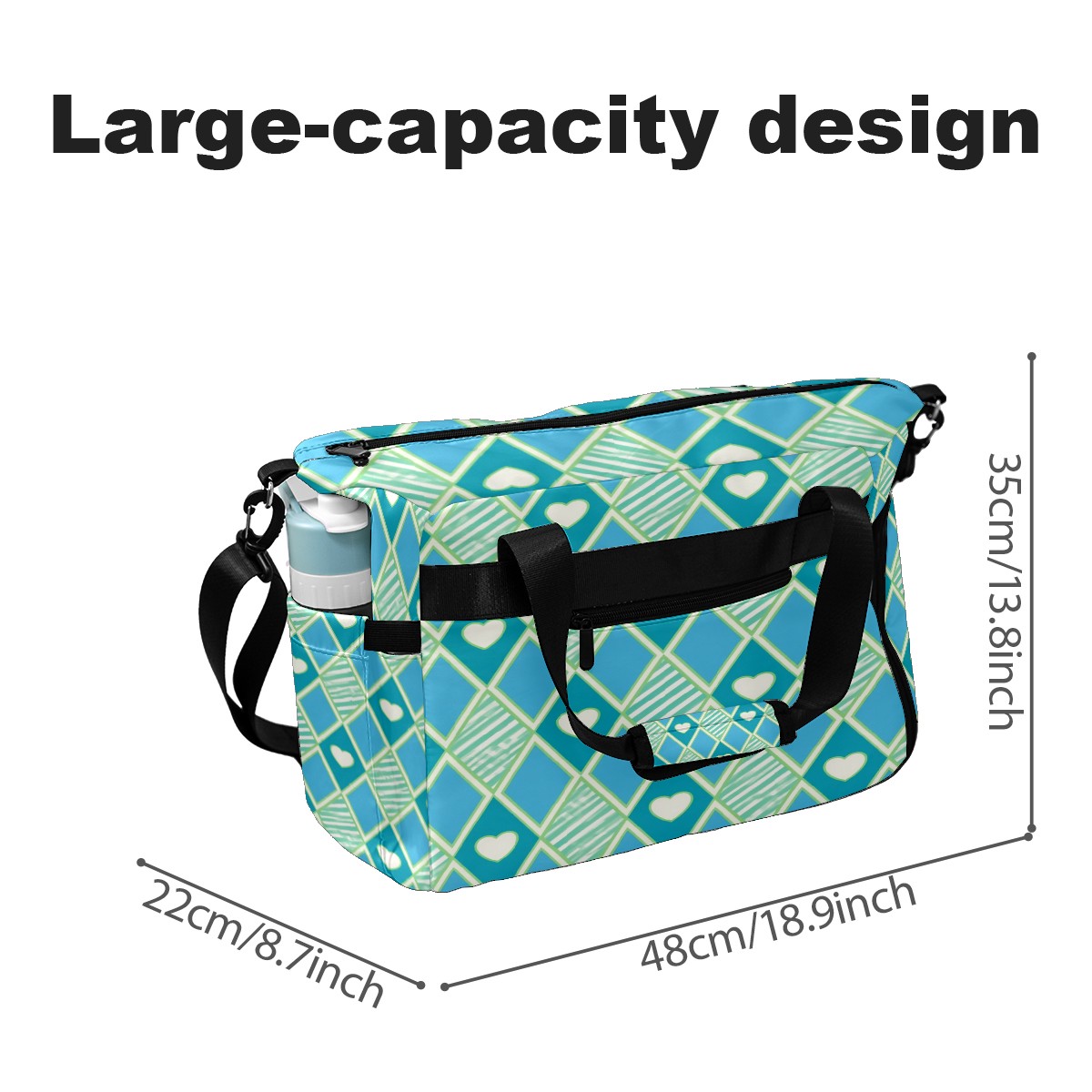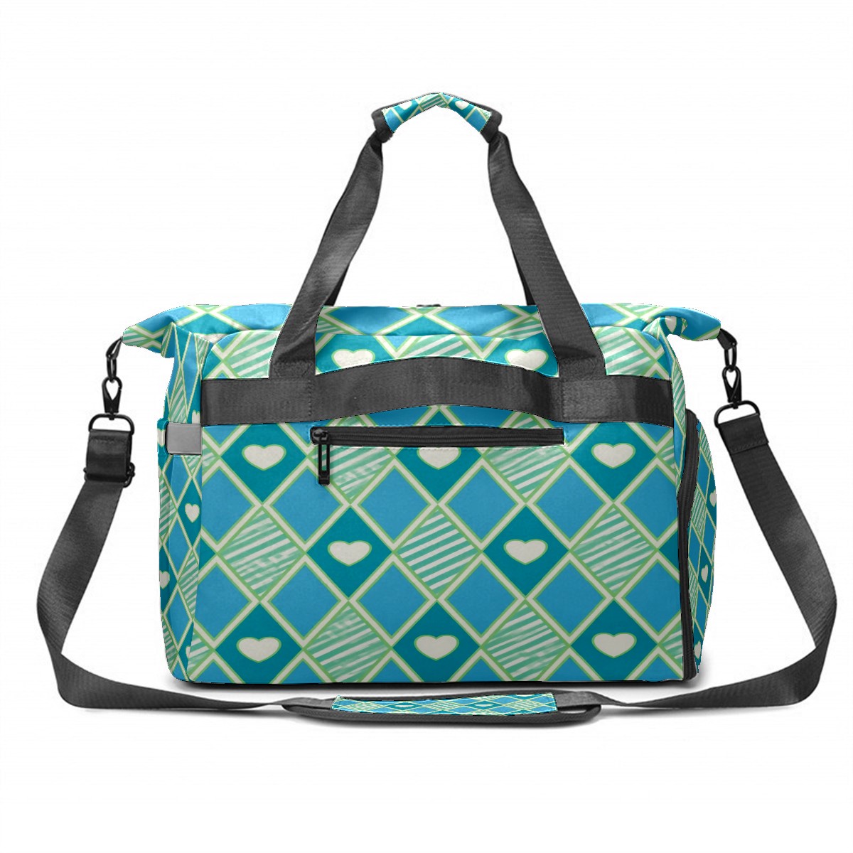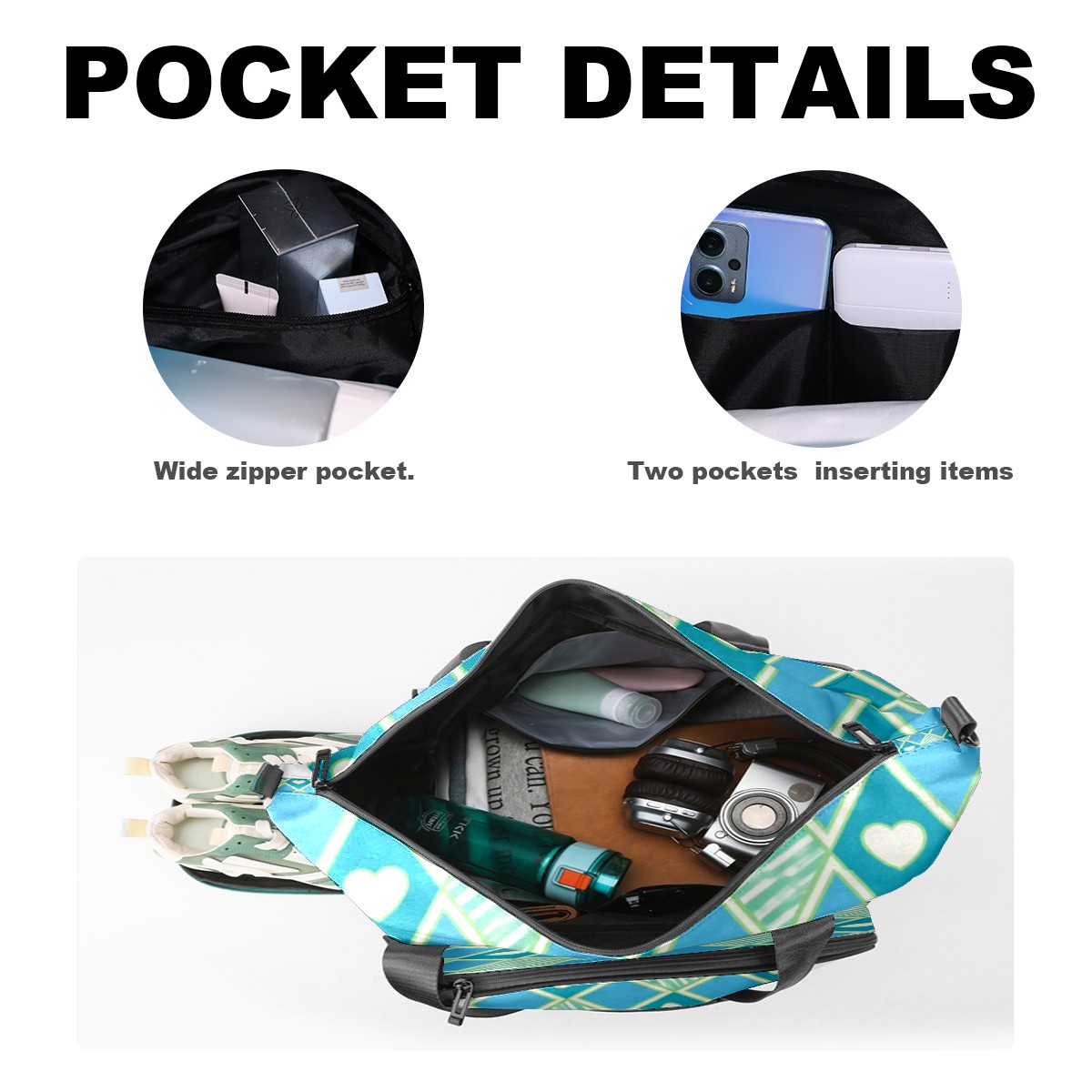 Pickleball Tote Bag Carryall for Paddles Balls and Accessories, Portable Lightweight Gear Bag for Players(Blue Green Checkered)