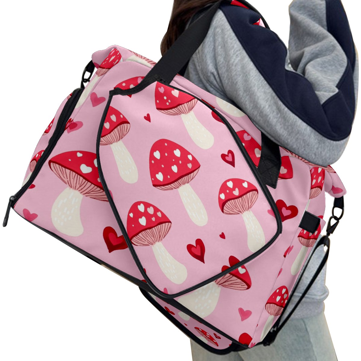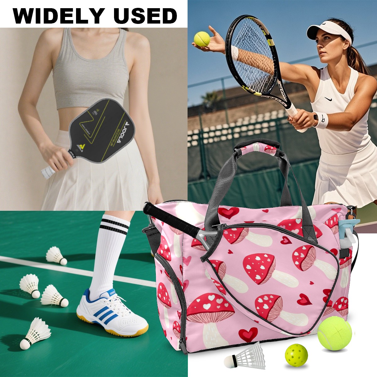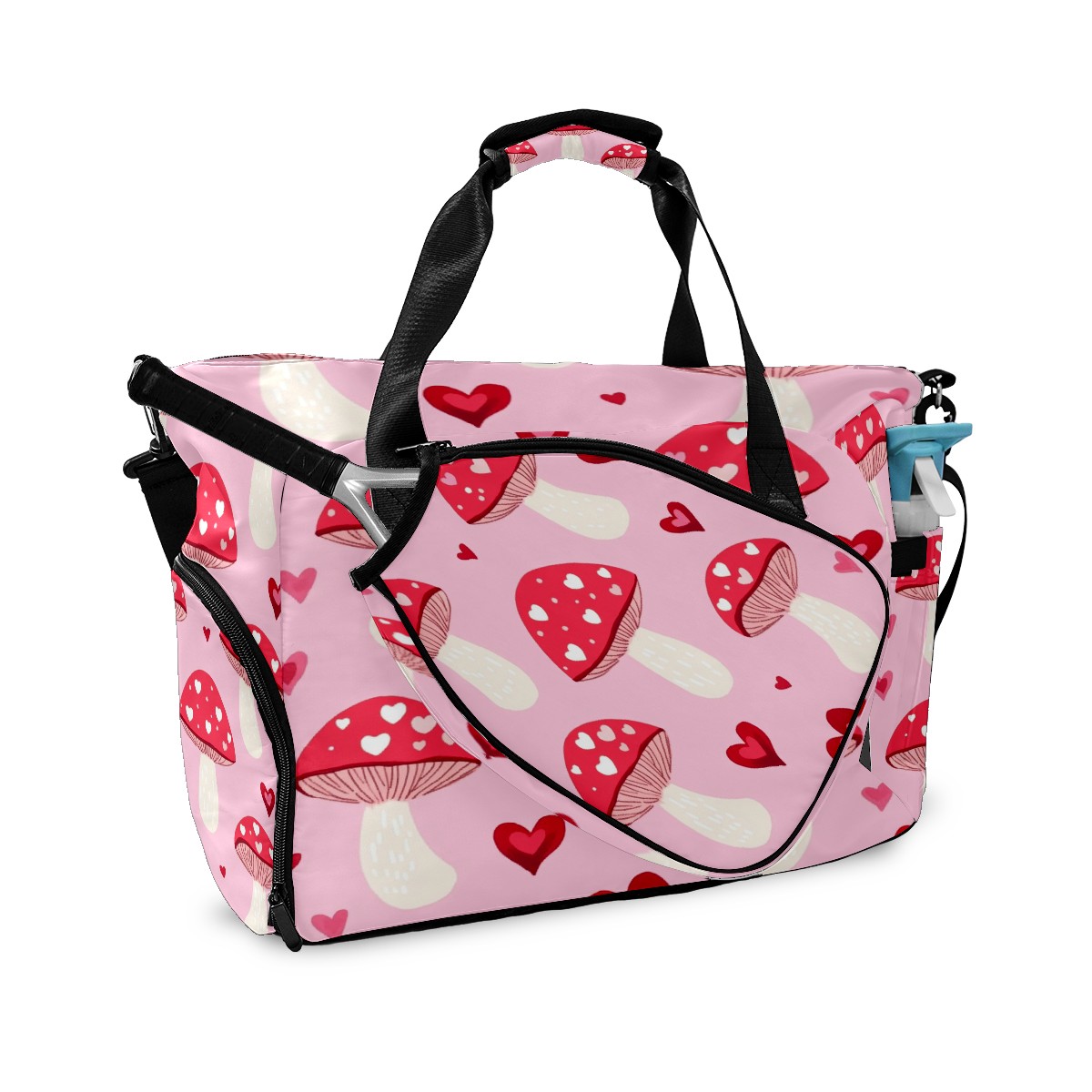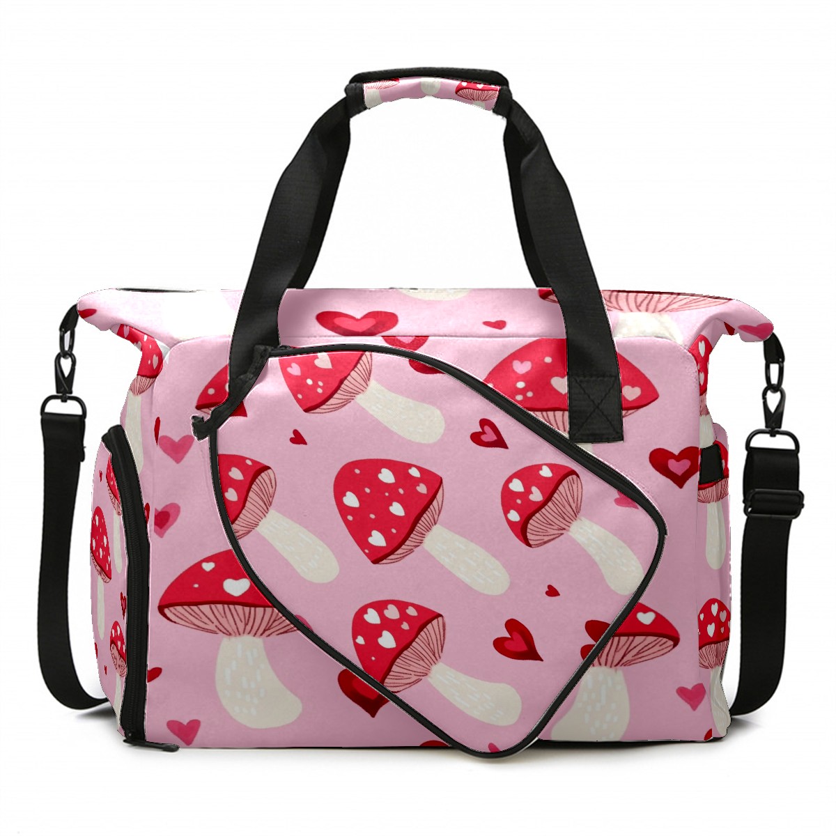 Pickleball Tote Bag Carryall for Paddles Balls and Accessories, Portable Lightweight Gear Bag for Players(Pink Mushrooms)