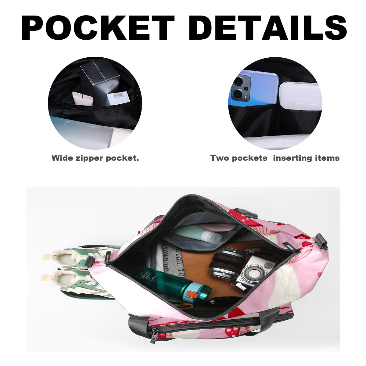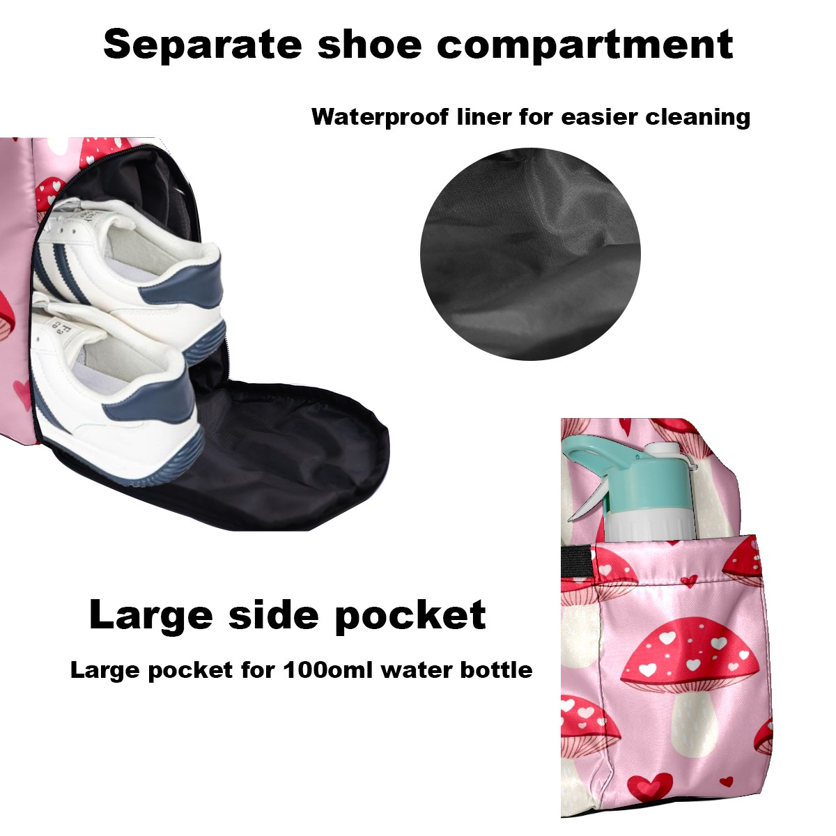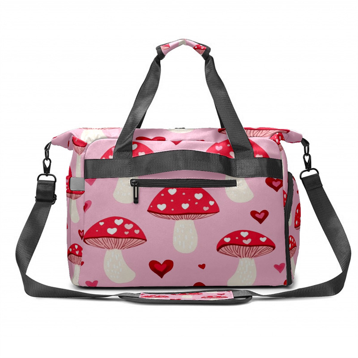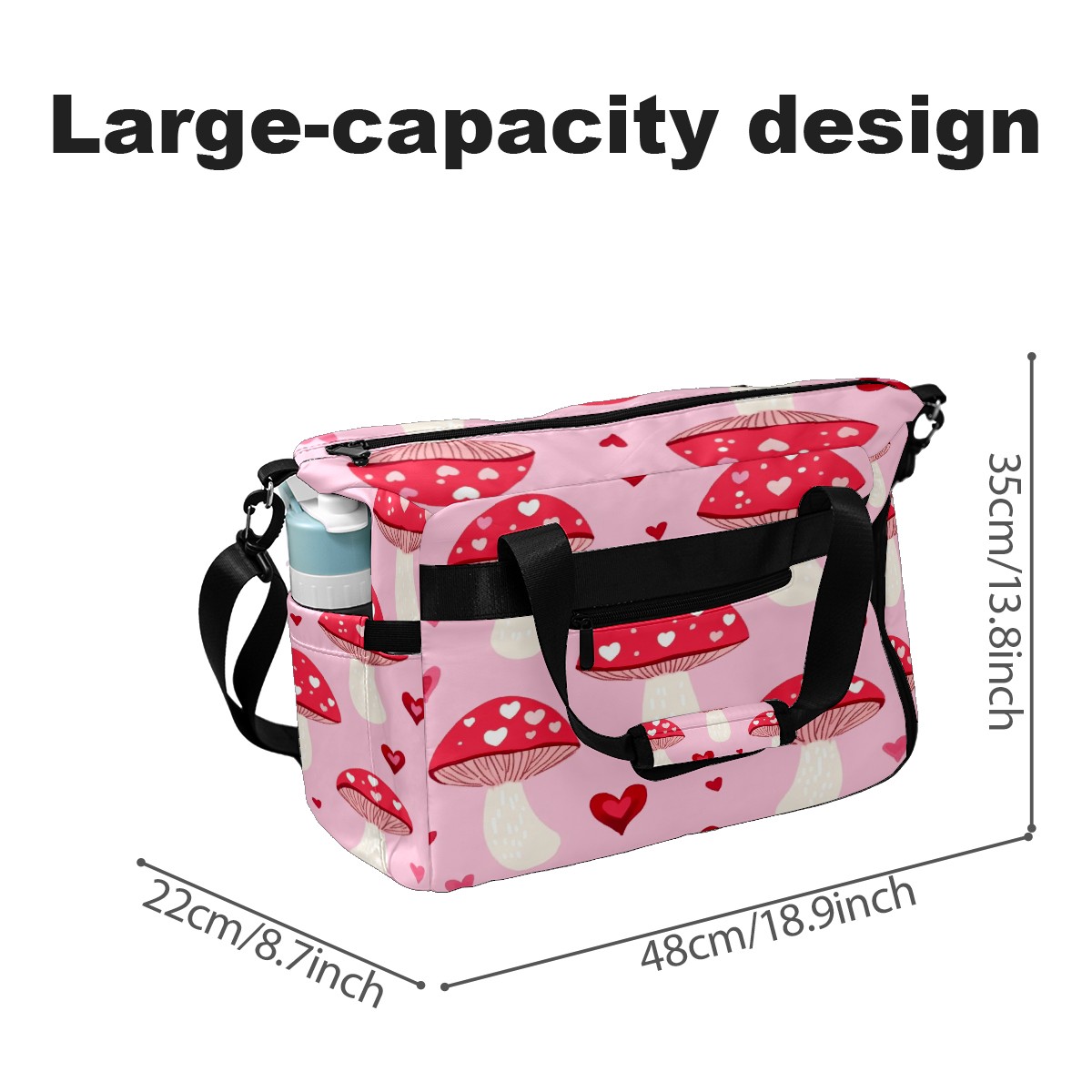 Pickleball Tote Bag Carryall for Paddles Balls and Accessories, Portable Lightweight Gear Bag for Players(Pink Mushrooms)