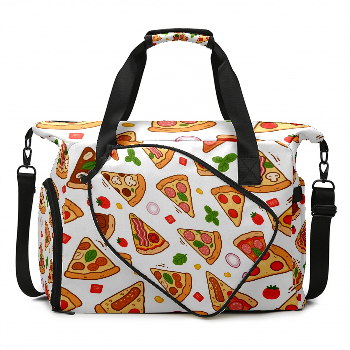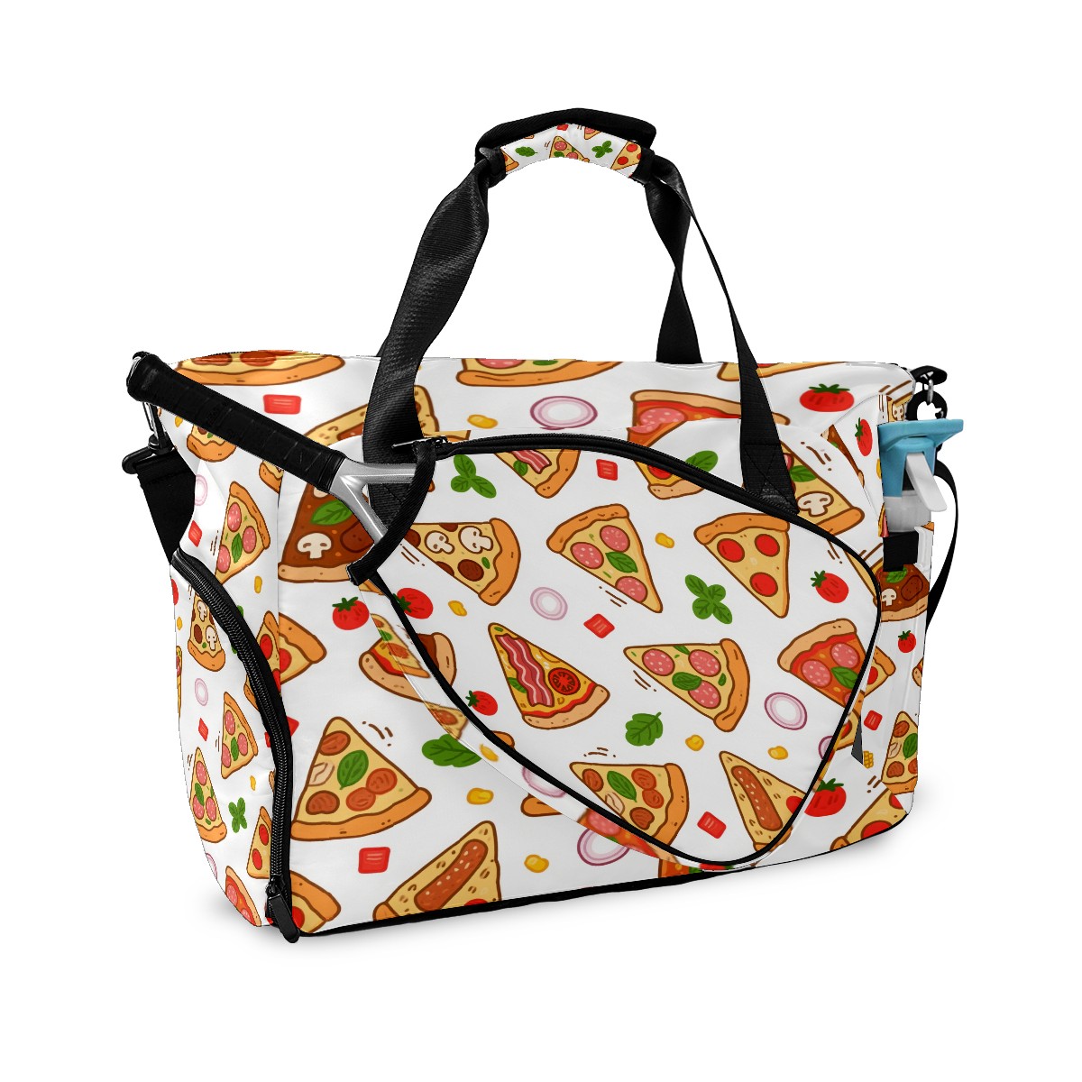 Pickleball Tote Bag Carryall for Paddles Balls and Accessories, Portable Lightweight Gear Bag for Players(Pizza)