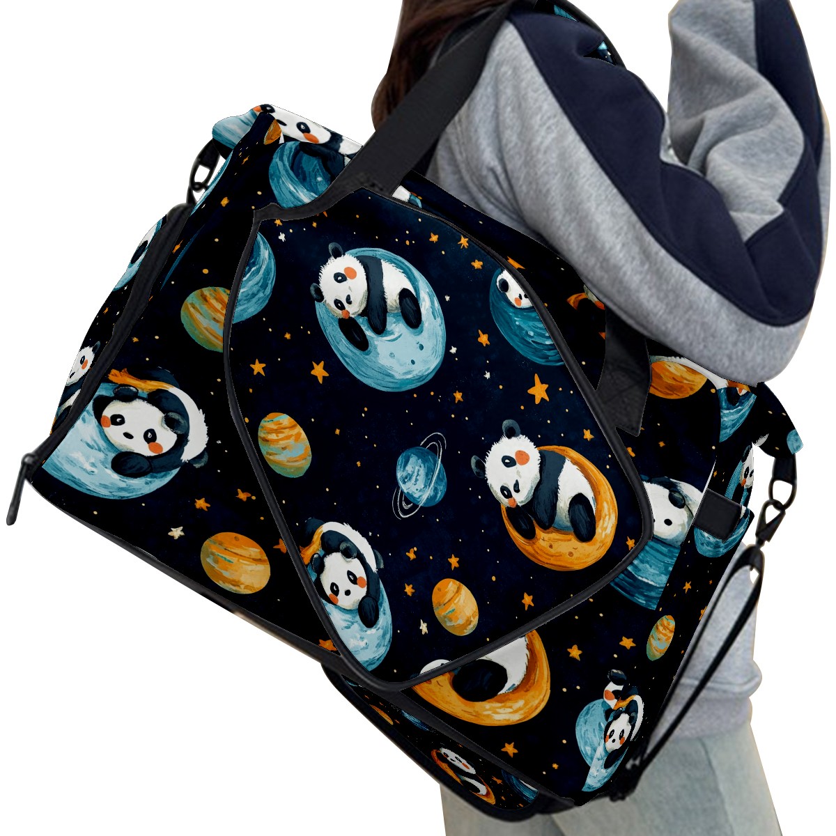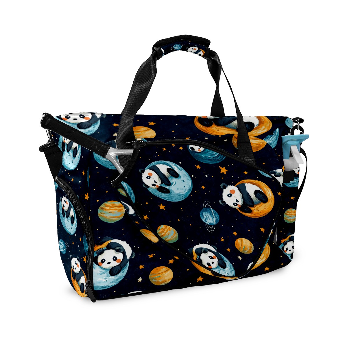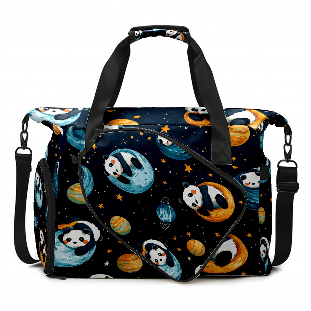 Pickleball Tote Bag Carryall for Paddles Balls and Accessories, Portable Lightweight Gear Bag for Players(Playful Pandas)
