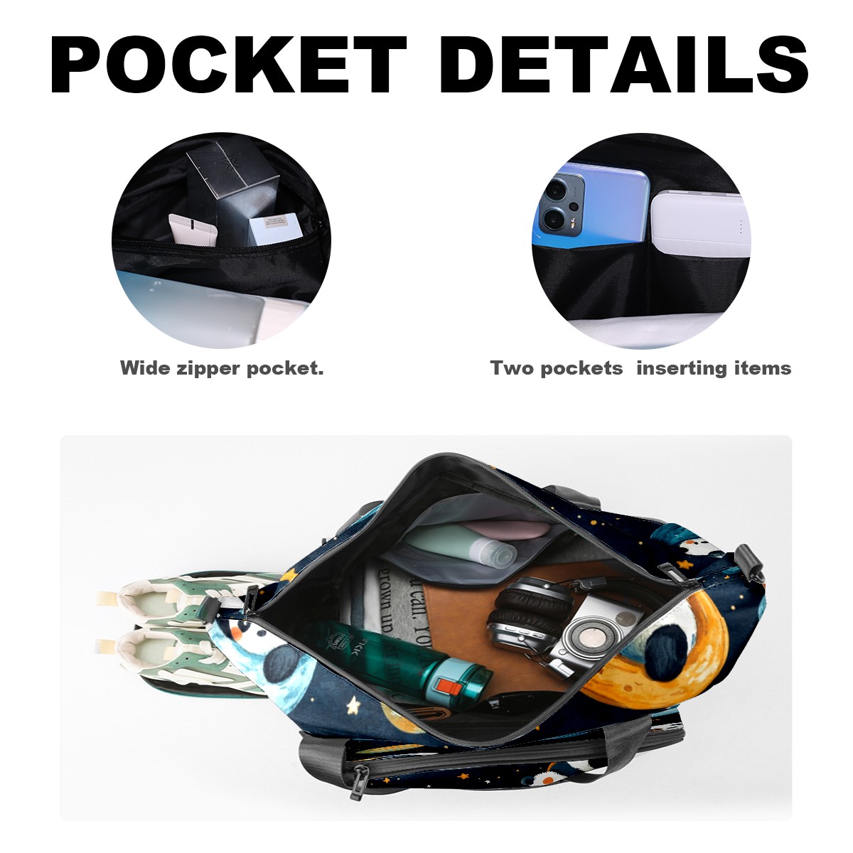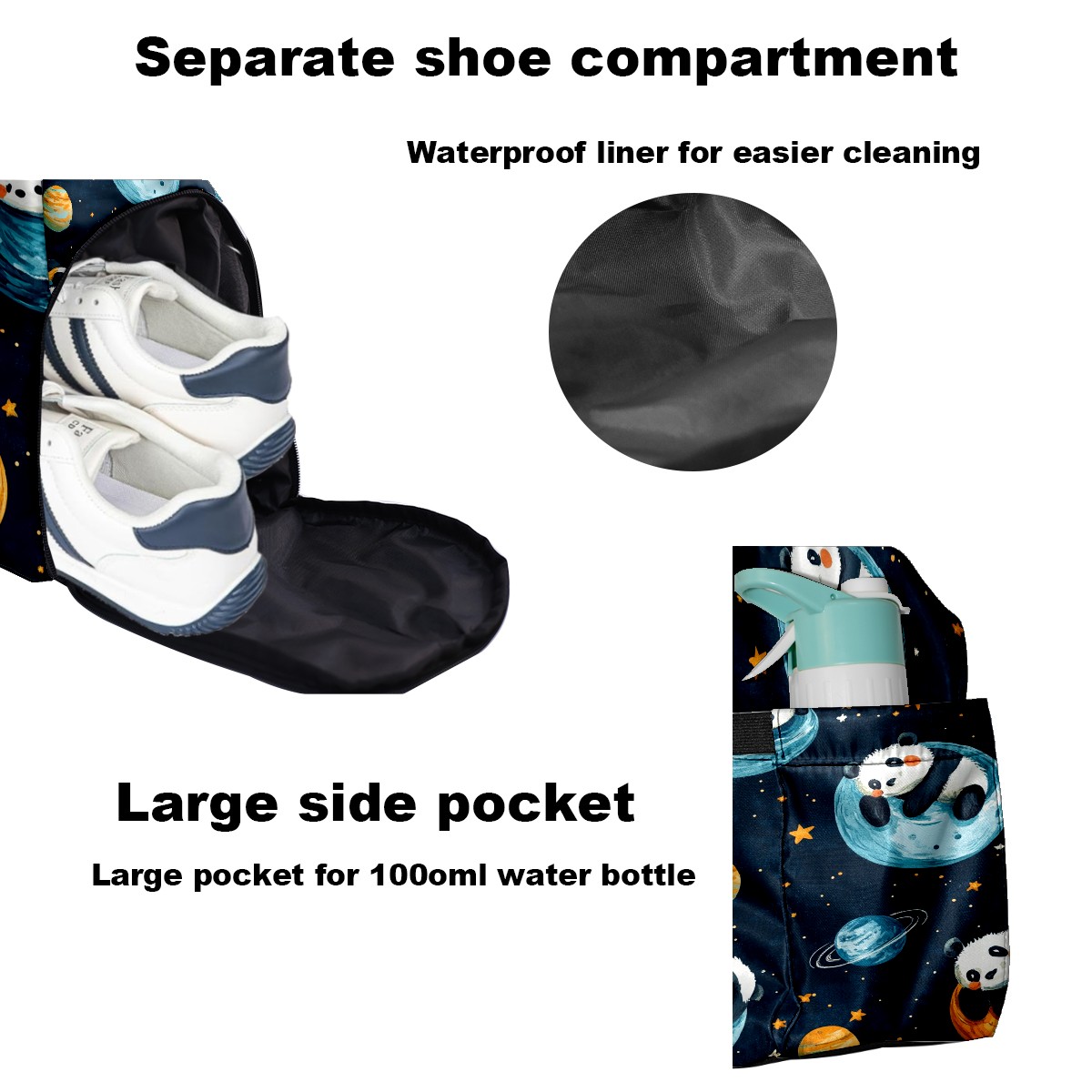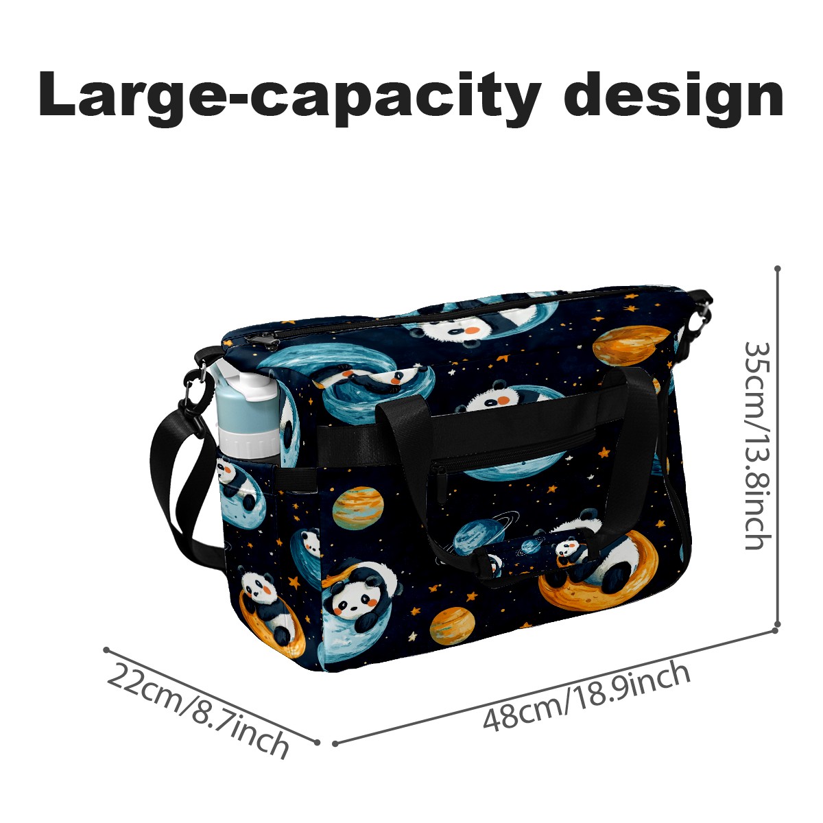 Pickleball Tote Bag Carryall for Paddles Balls and Accessories, Portable Lightweight Gear Bag for Players(Playful Pandas)