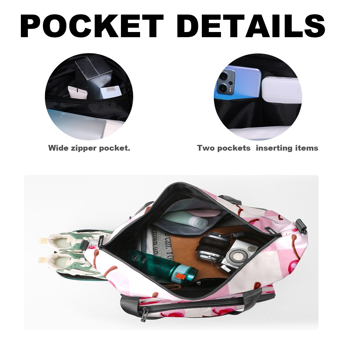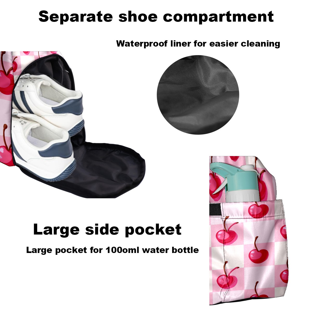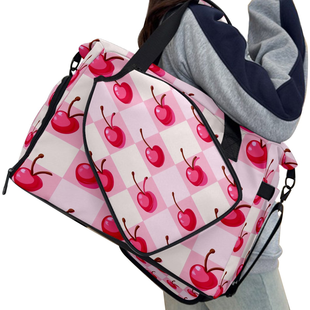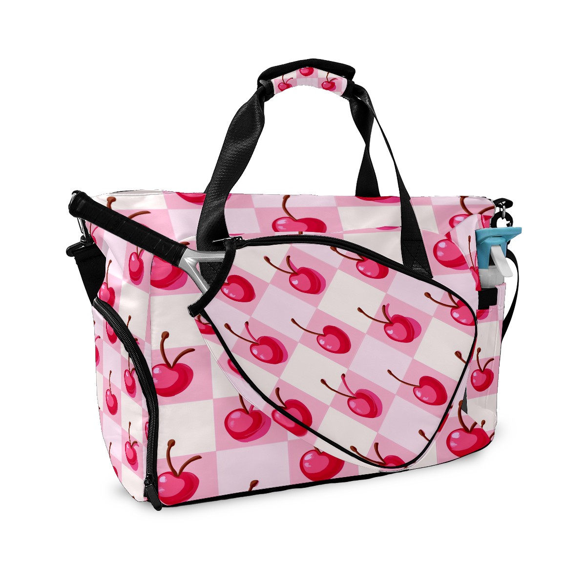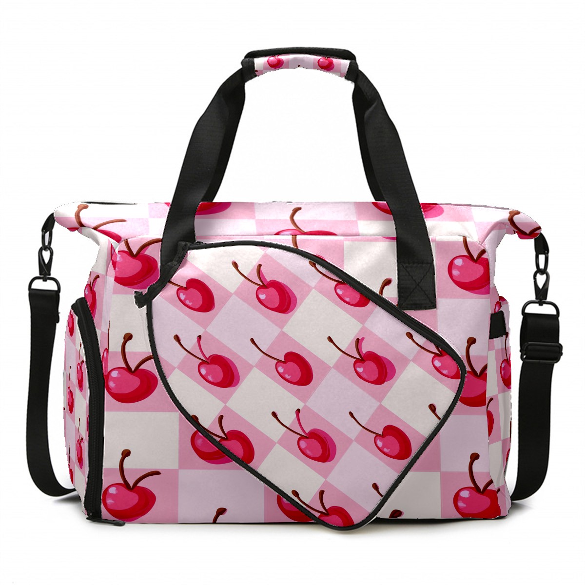 Pickleball Tote Bag Carryall for Paddles Balls and Accessories, Portable Lightweight Gear Bag for Players(Pink Cherry)