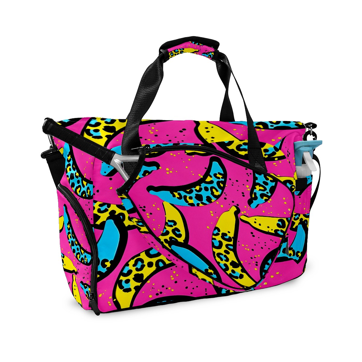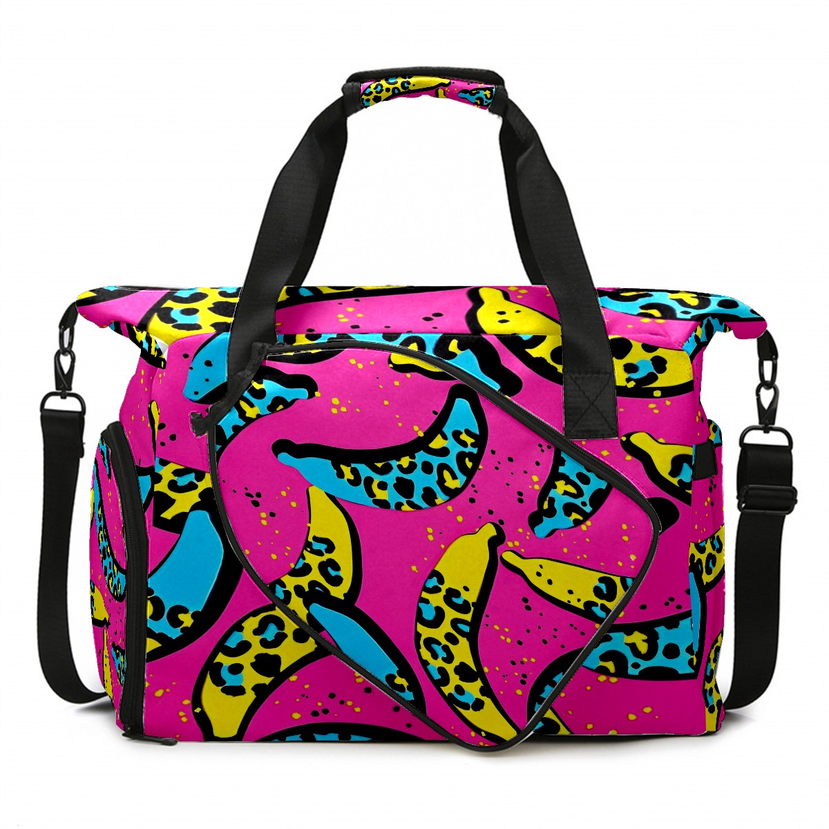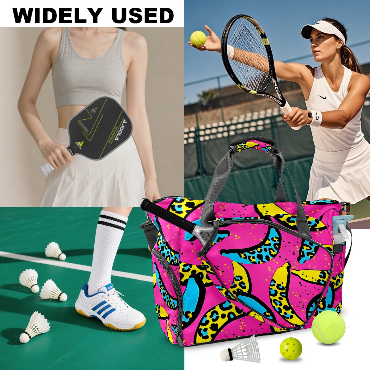 Pickleball Tote Bag Carryall for Paddles Balls and Accessories, Portable Lightweight Gear Bag for Players(Leopard Banana)