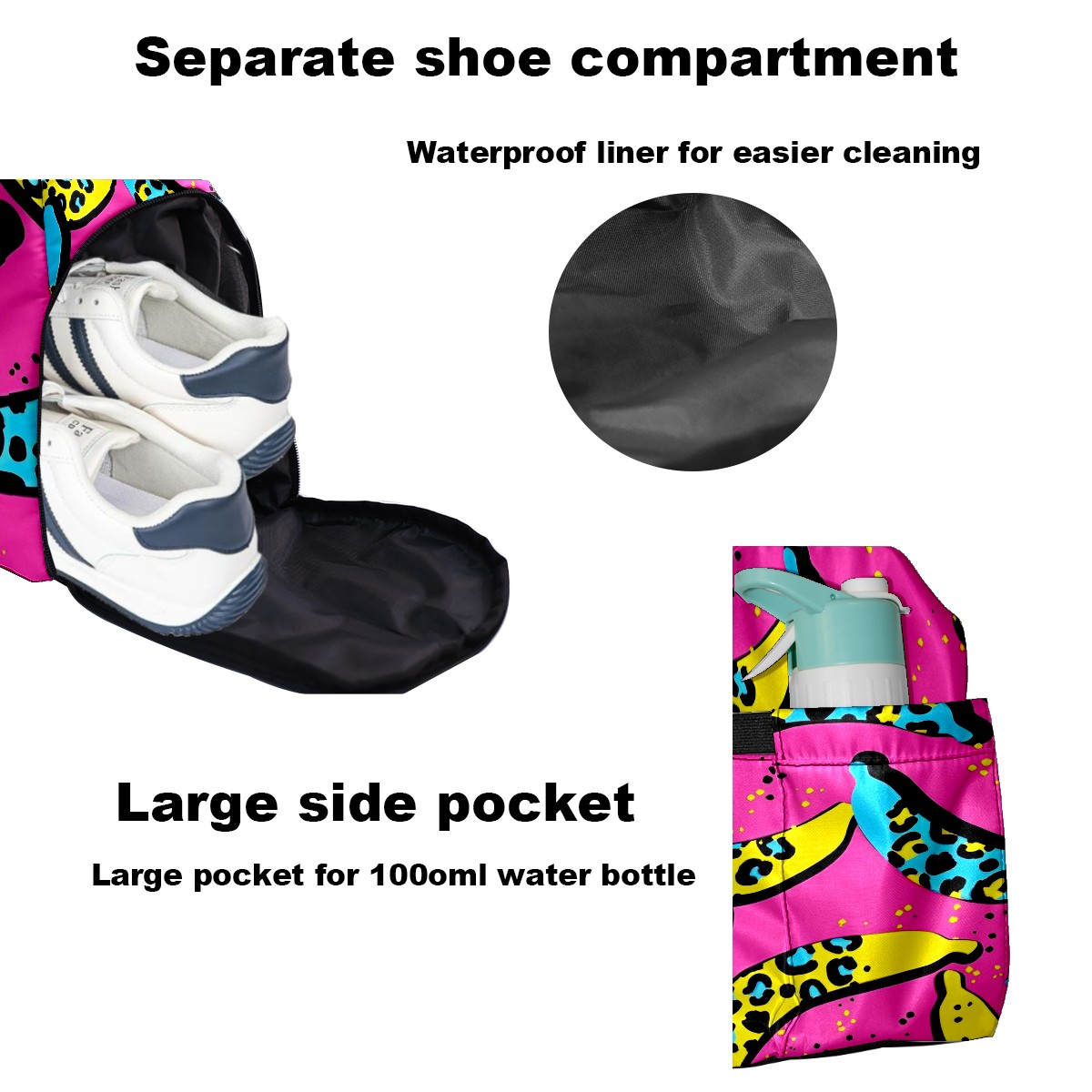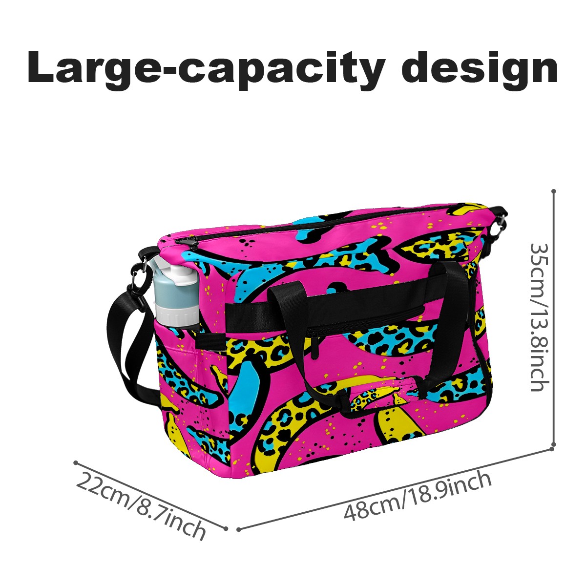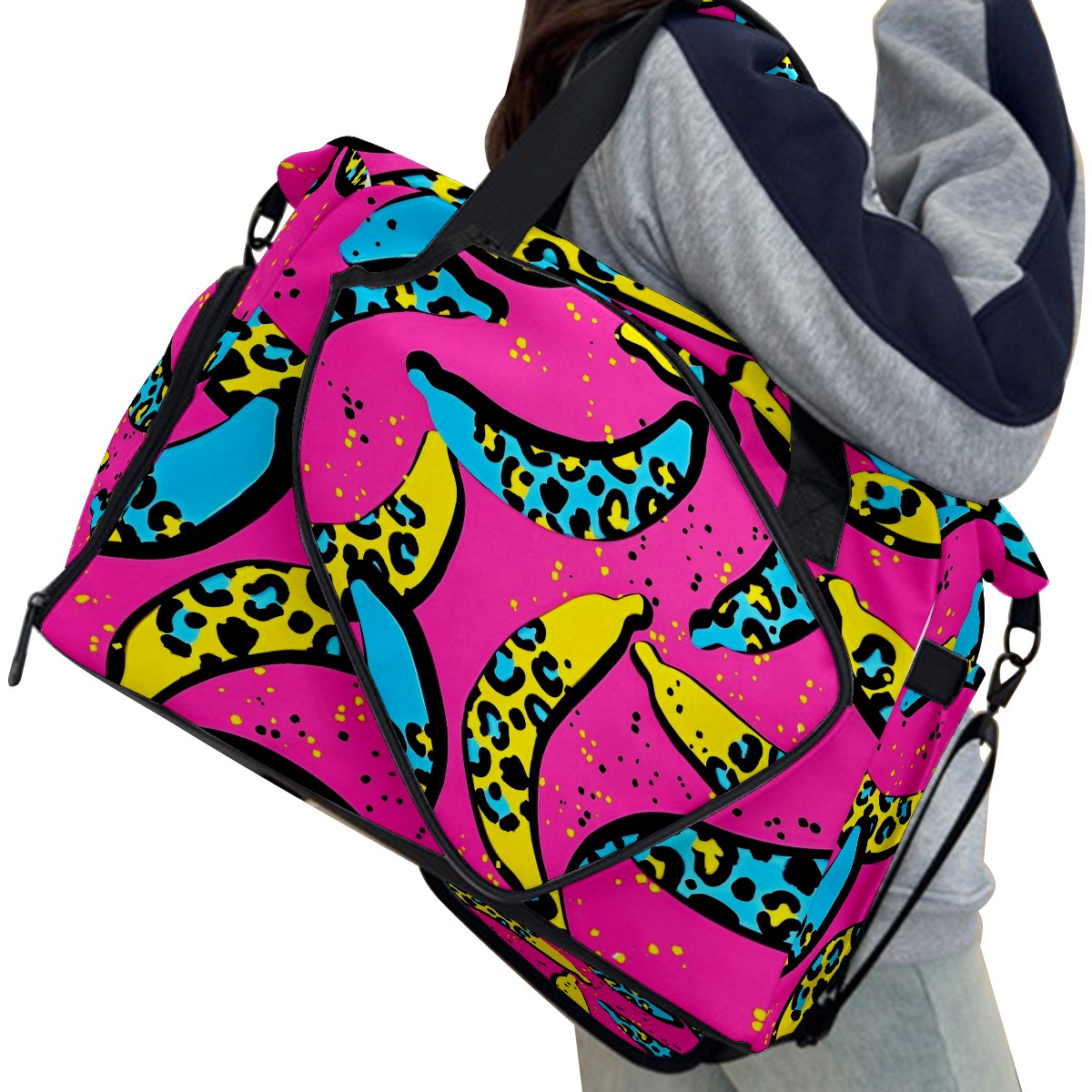 Pickleball Tote Bag Carryall for Paddles Balls and Accessories, Portable Lightweight Gear Bag for Players(Leopard Banana)