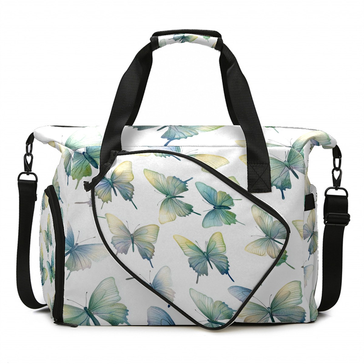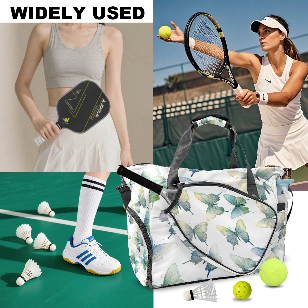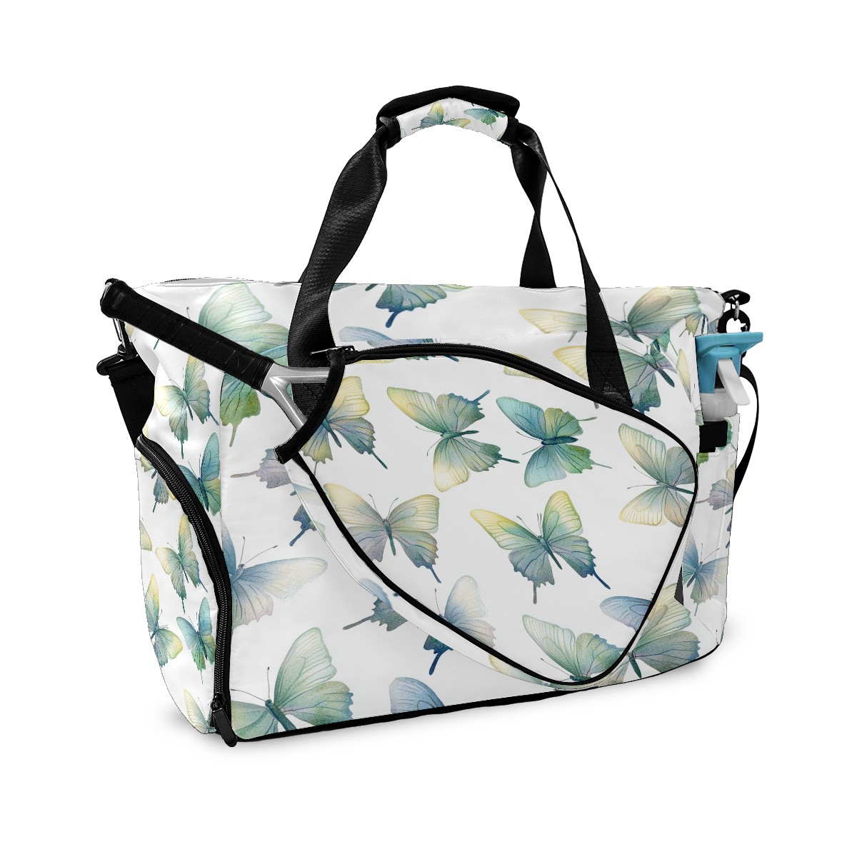 Pickleball Tote Bag Carryall for Paddles Balls and Accessories, Portable Lightweight Gear Bag for Players(Watercolor Butterflies)