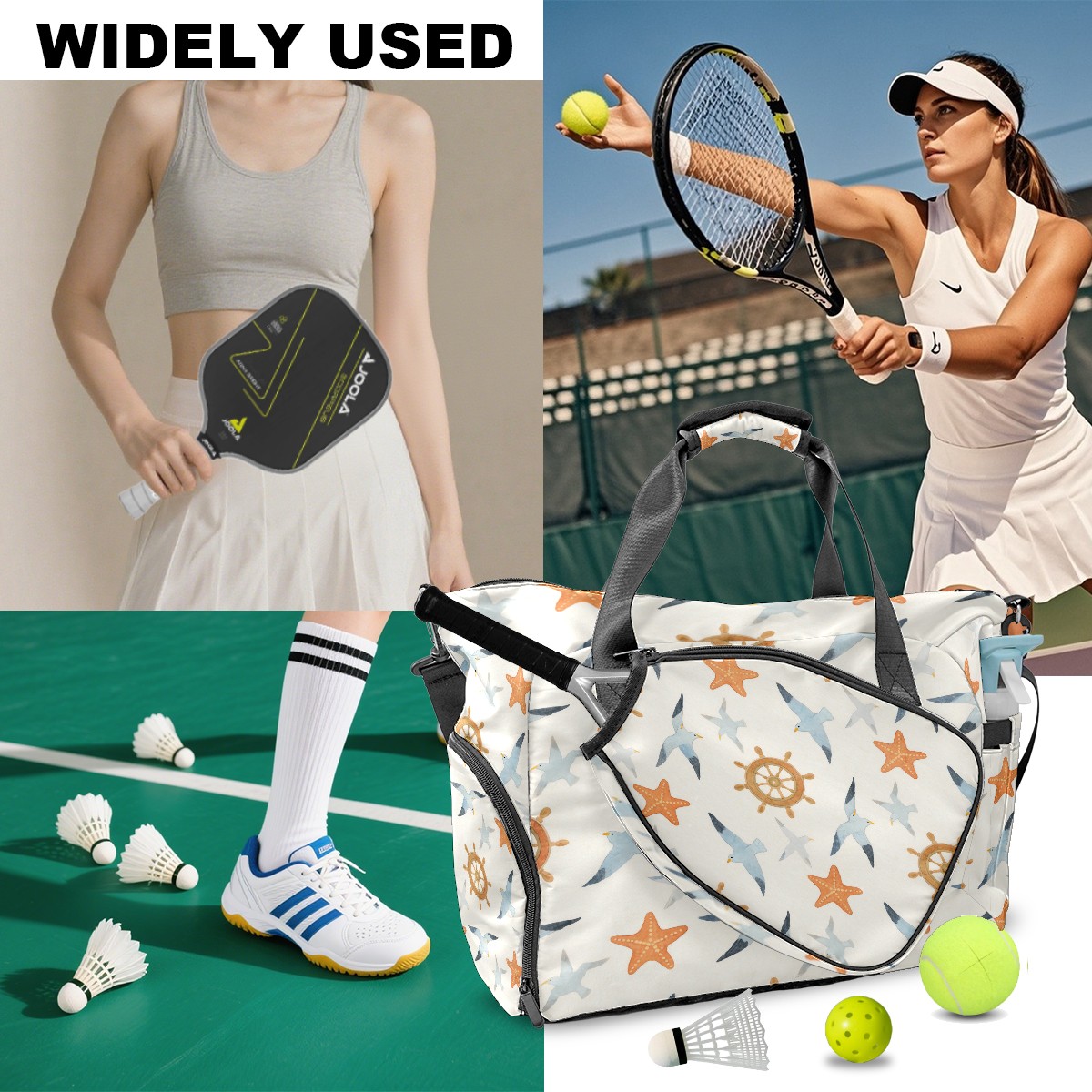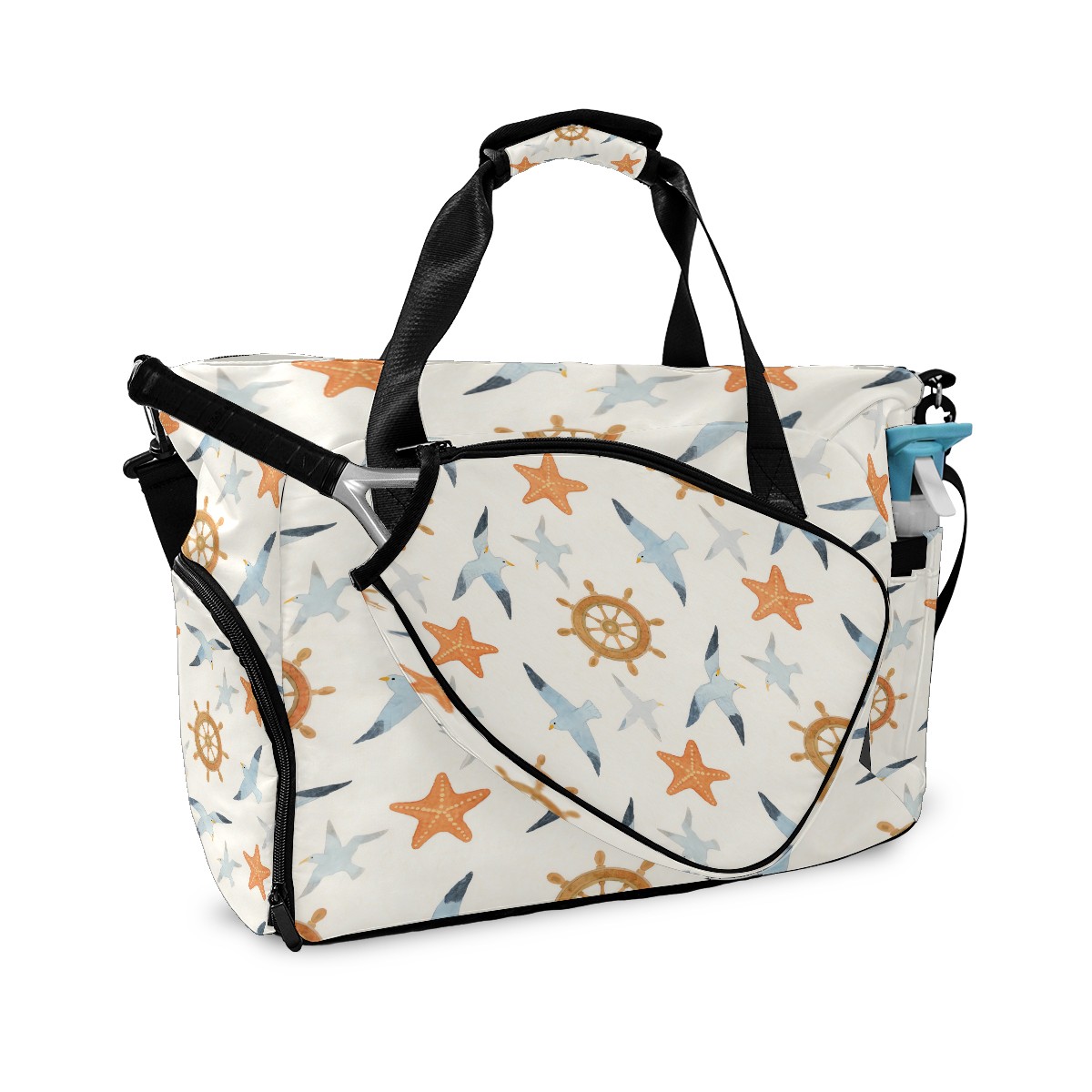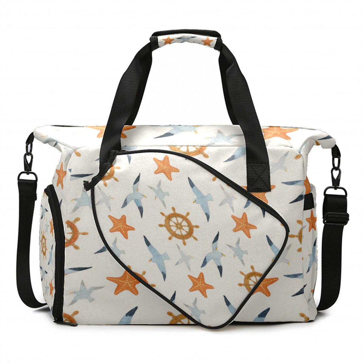 Pickleball Tote Bag Carryall for Paddles Balls and Accessories, Portable Lightweight Gear Bag for Players(Seagull And Starfish)