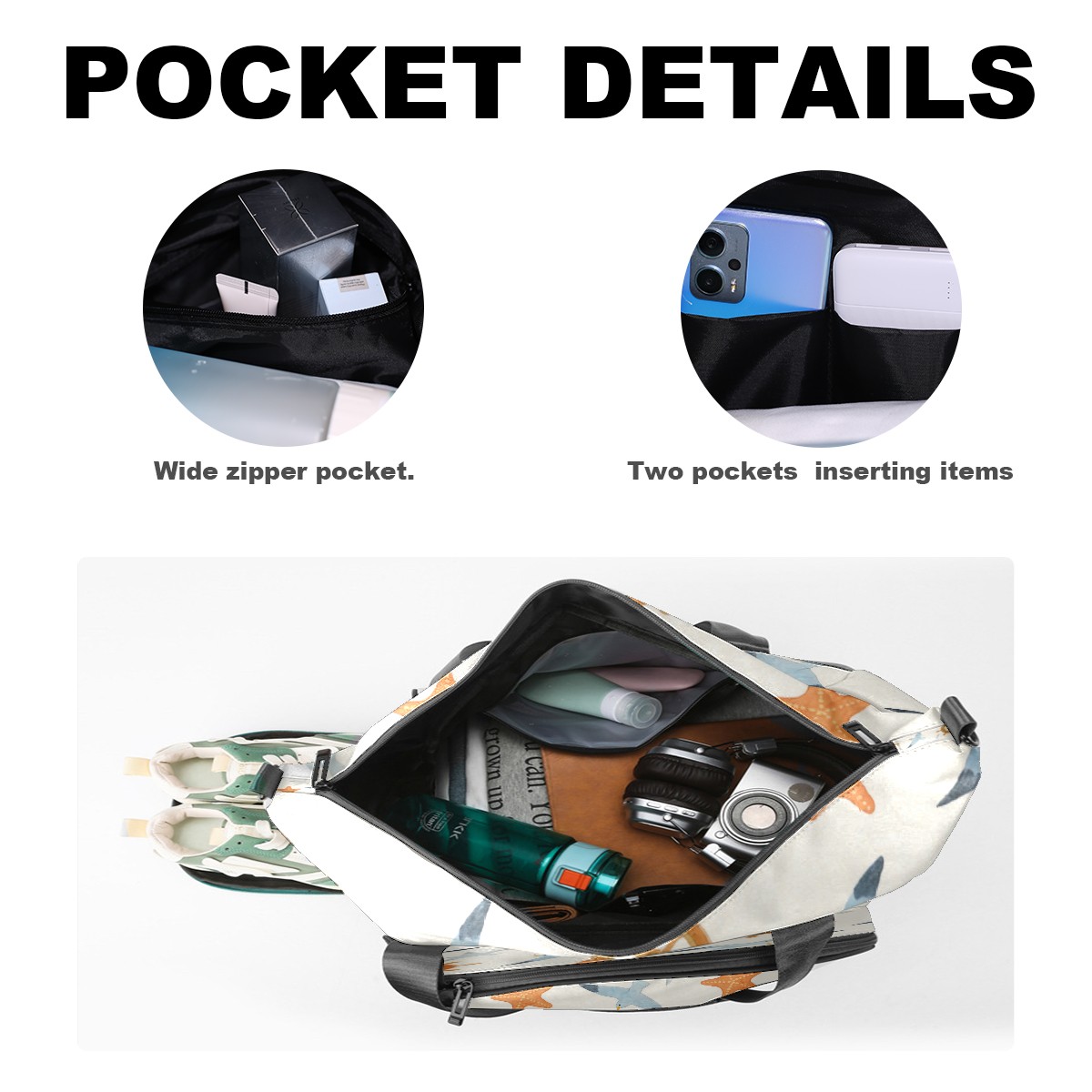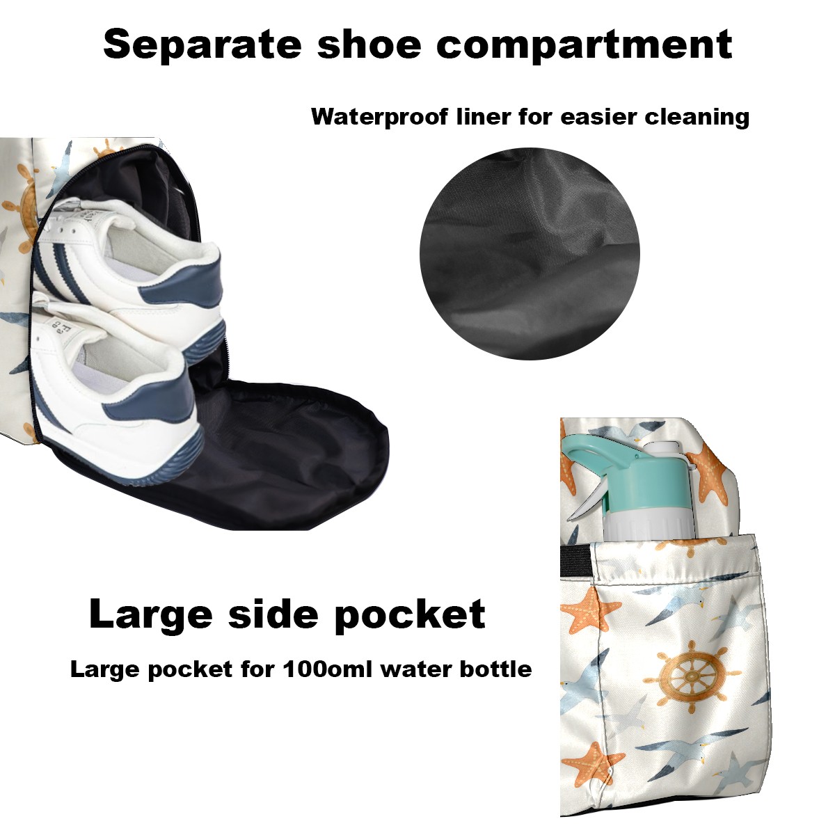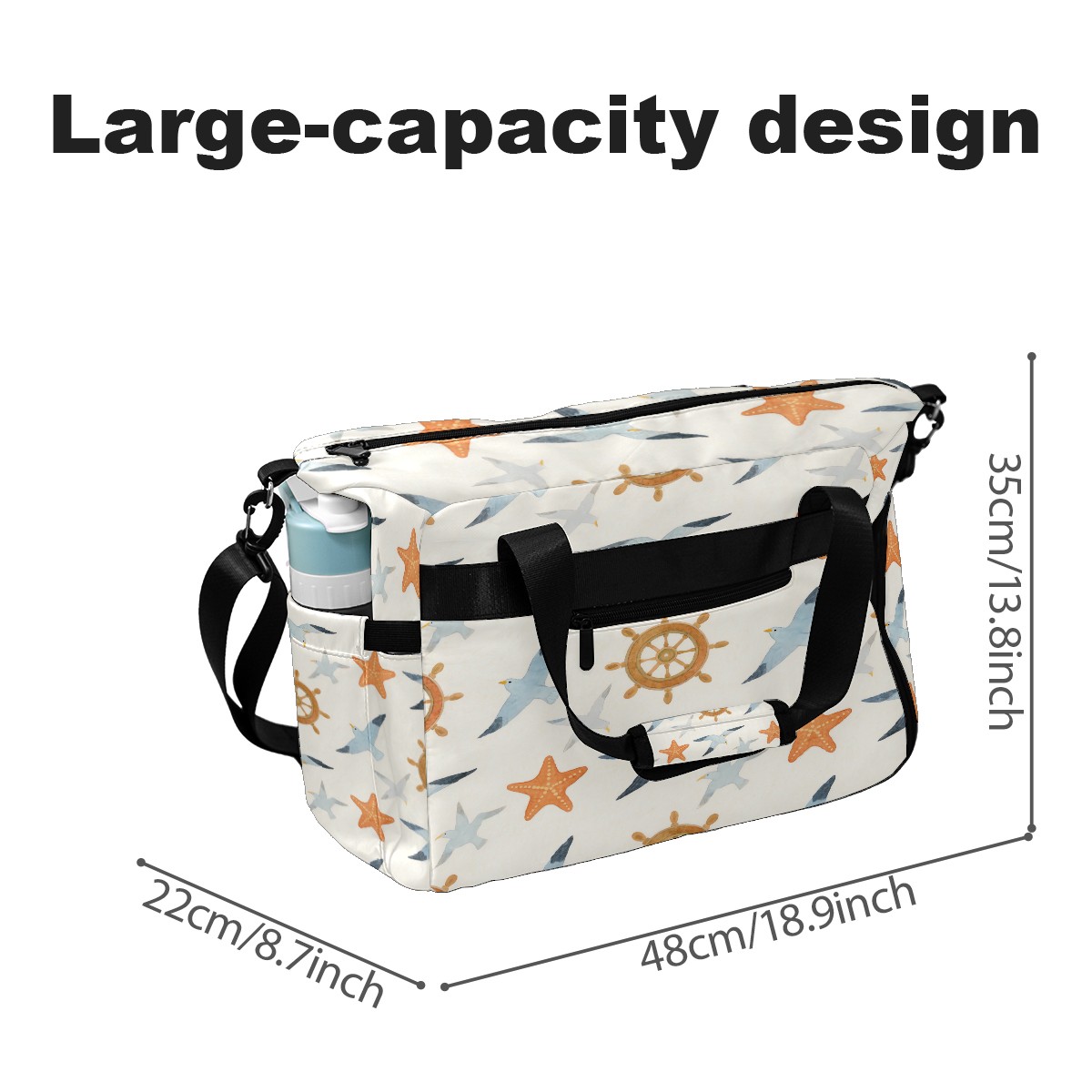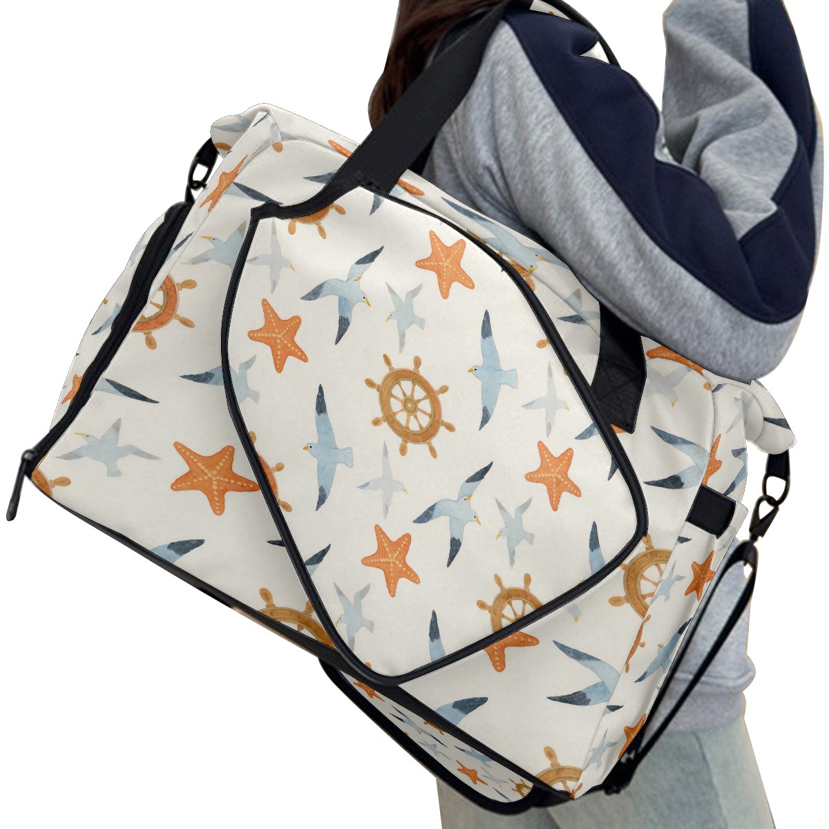 Pickleball Tote Bag Carryall for Paddles Balls and Accessories, Portable Lightweight Gear Bag for Players(Seagull And Starfish)