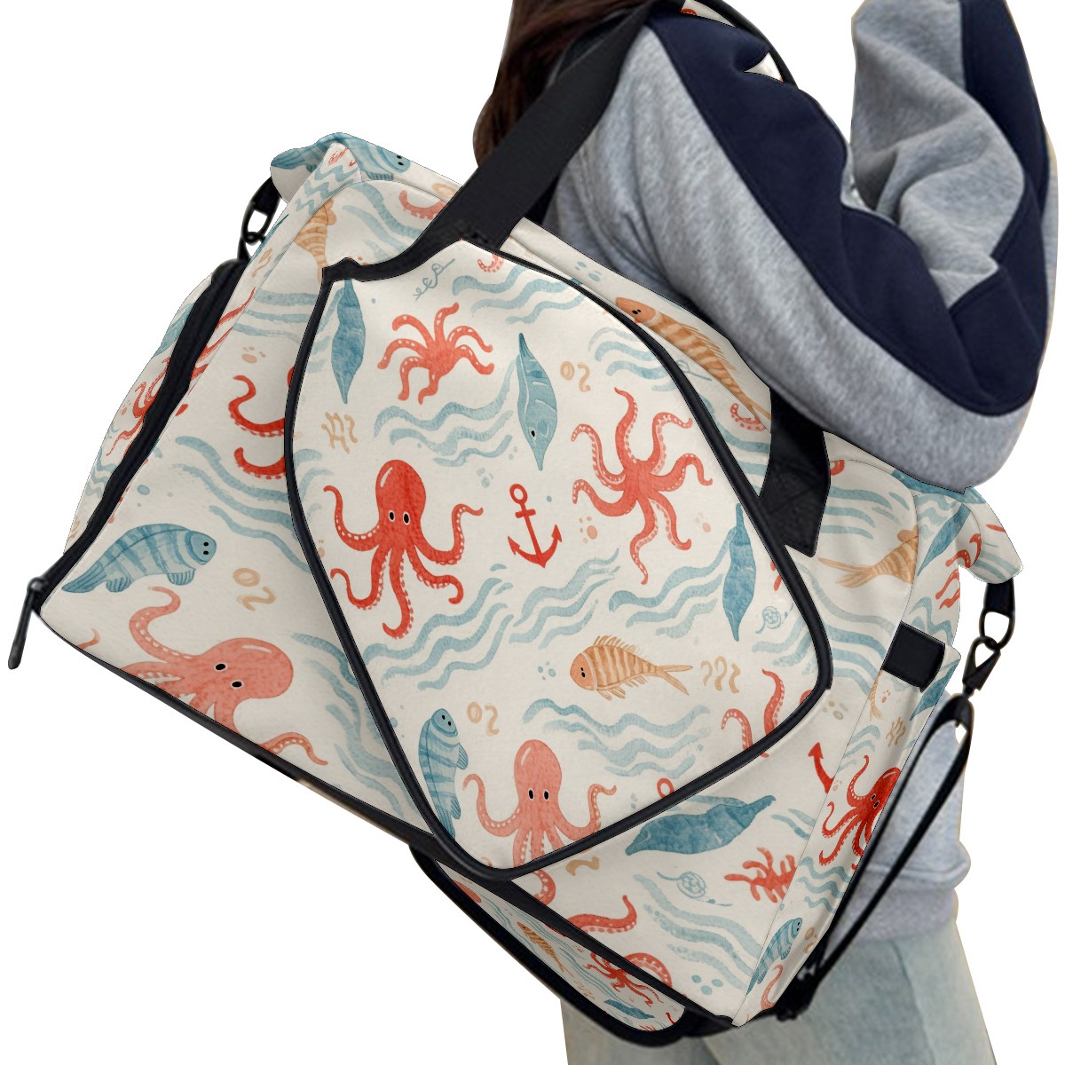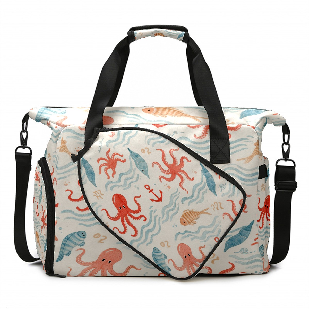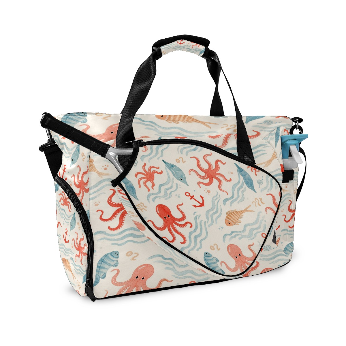 Pickleball Tote Bag Carryall for Paddles Balls and Accessories, Portable Lightweight Gear Bag for Players(Fish And Octopus)