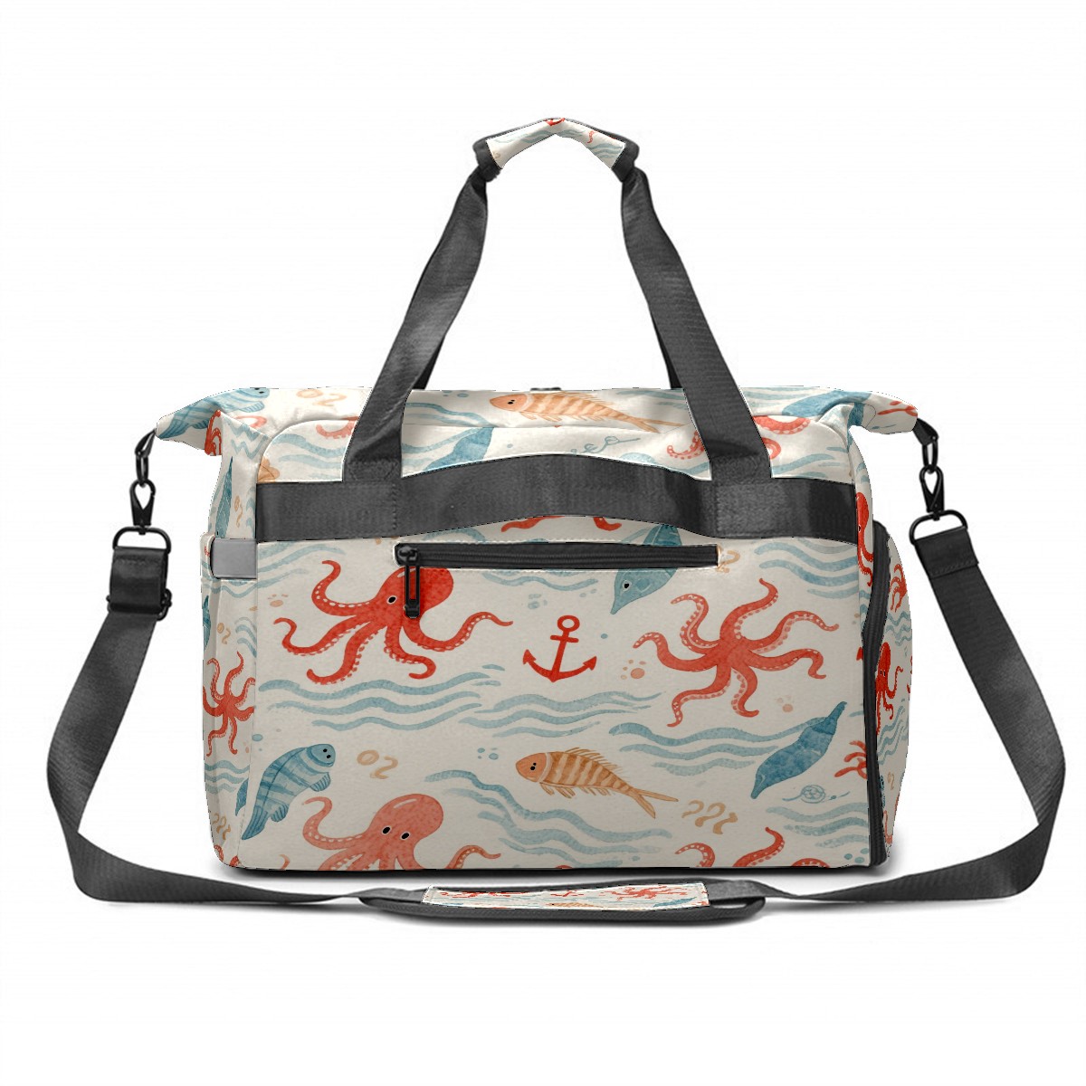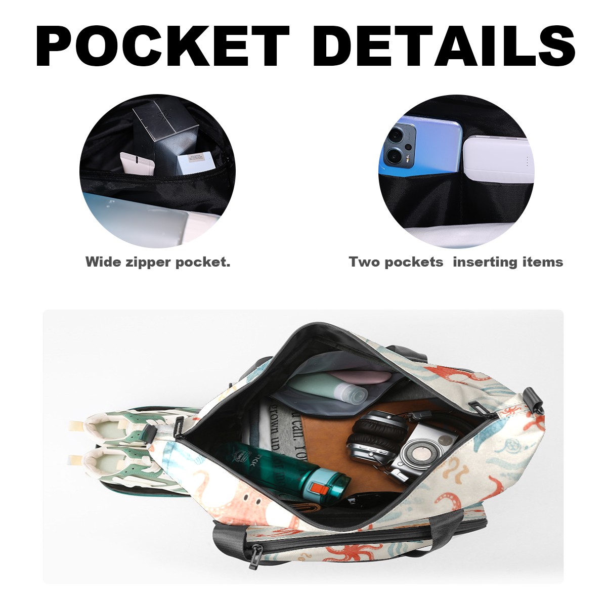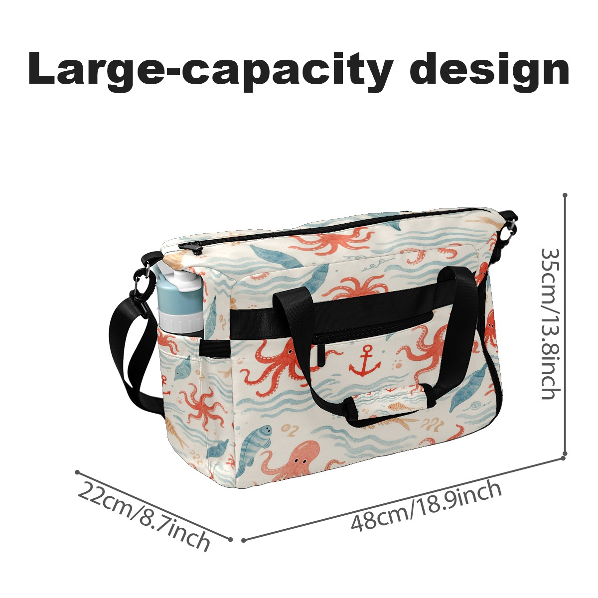Pickleball Tote Bag Carryall for Paddles Balls and Accessories, Portable Lightweight Gear Bag for Players(Fish And Octopus)