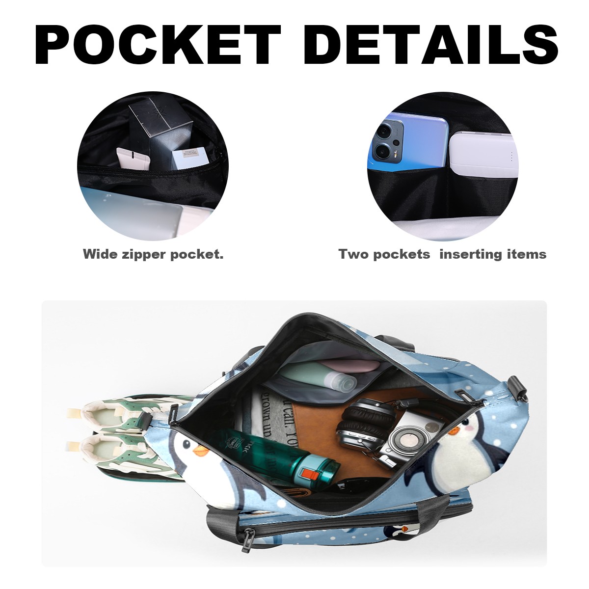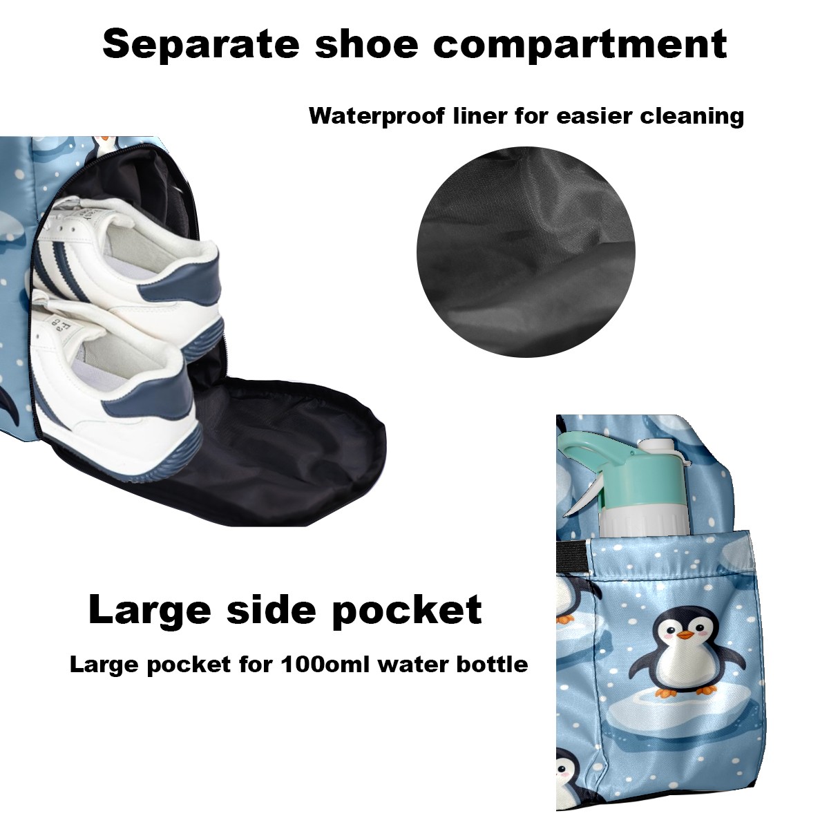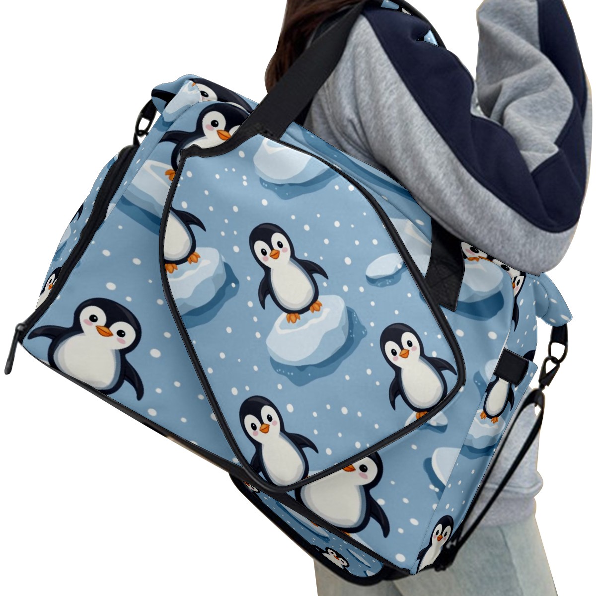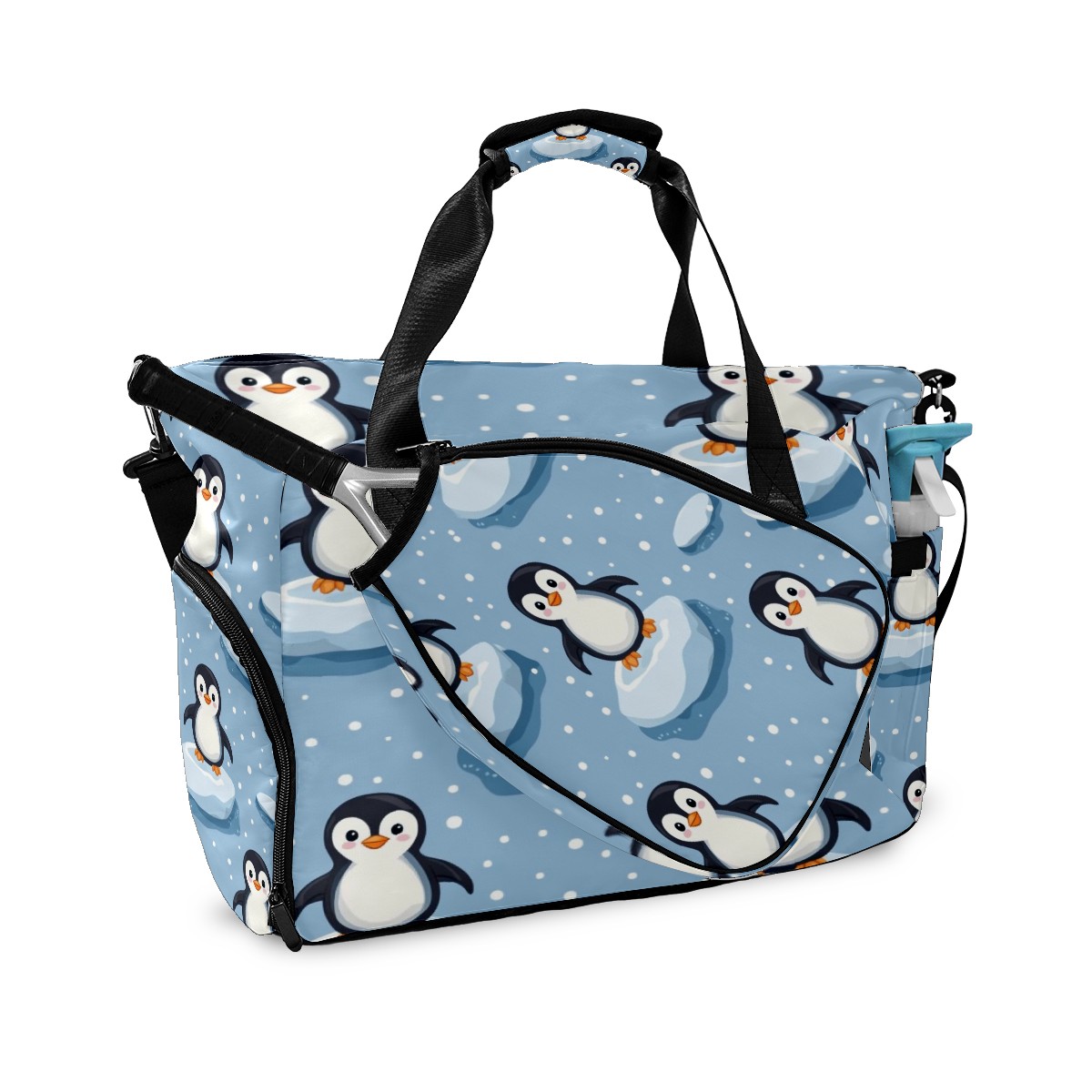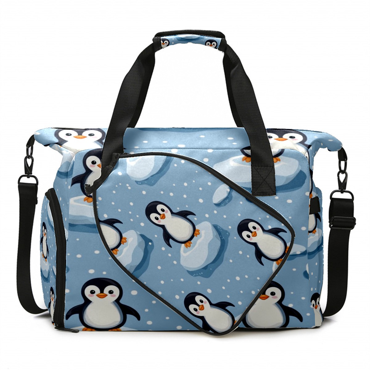 Pickleball Tote Bag Carryall for Paddles Balls and Accessories, Portable Lightweight Gear Bag for Players(Penguins)