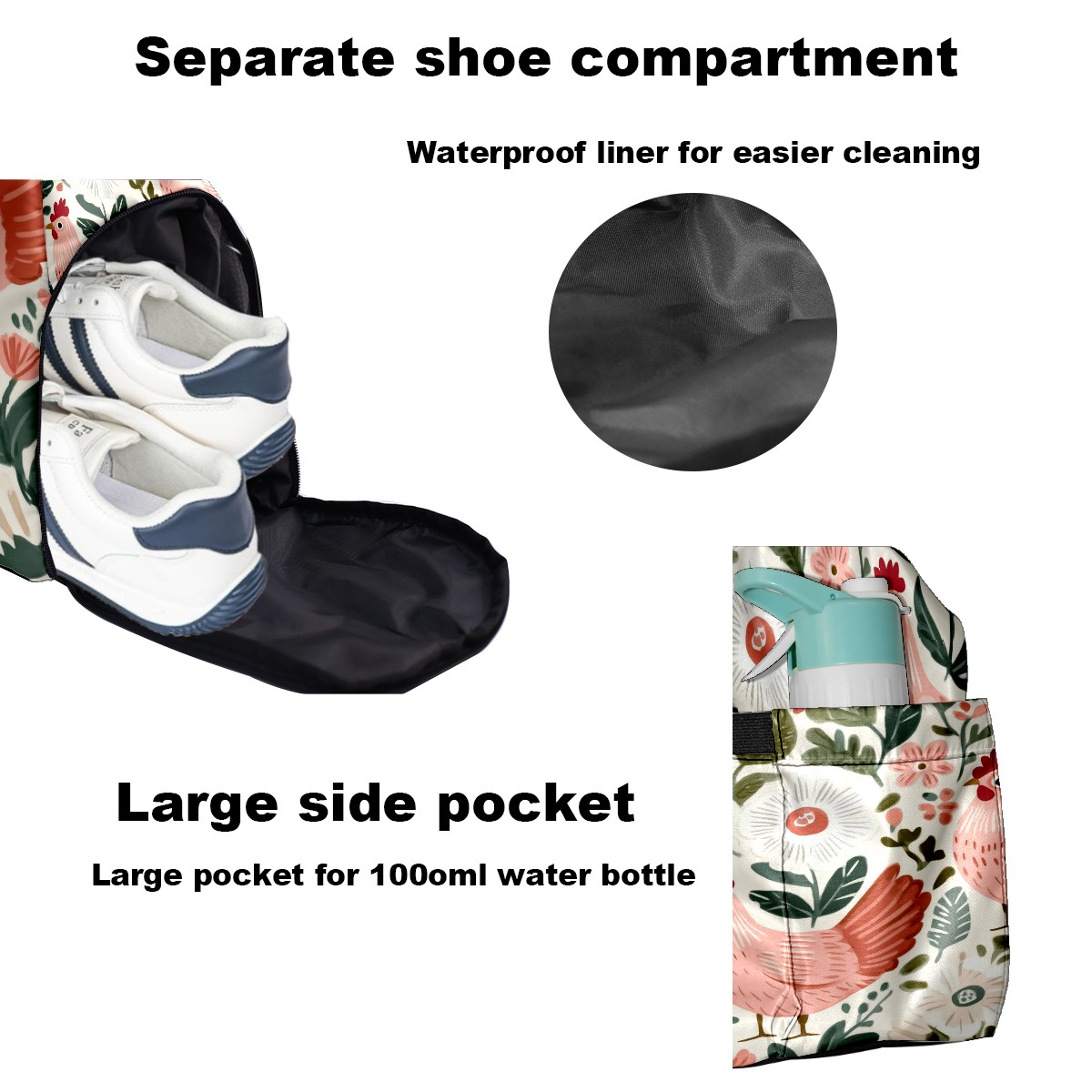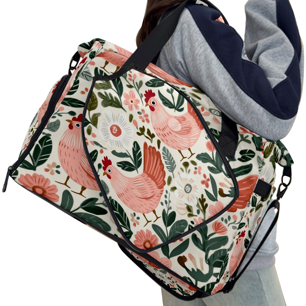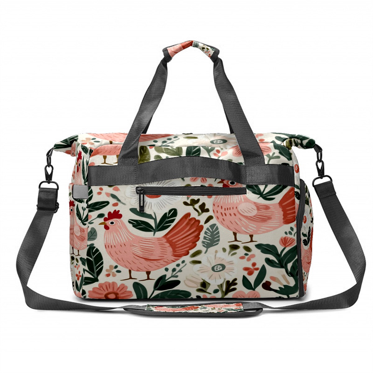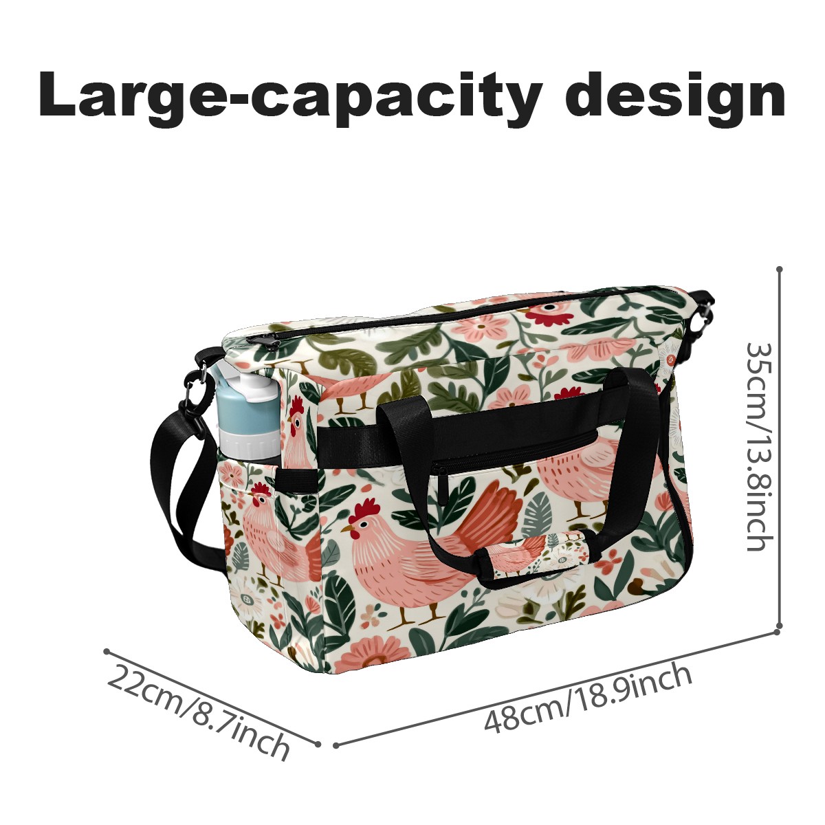 Pickleball Tote Bag Carryall for Paddles Balls and Accessories, Portable Lightweight Gear Bag for Players(Chickens And Flowers)