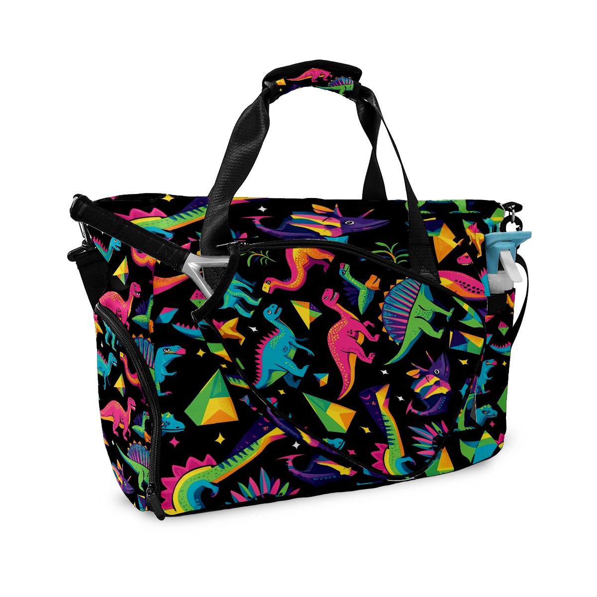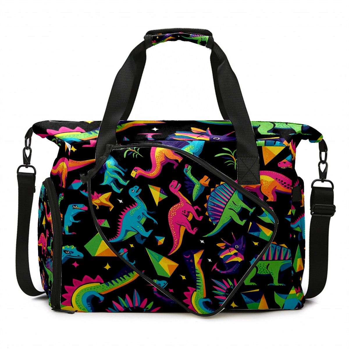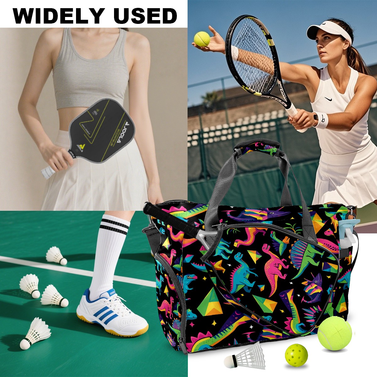Pickleball Tote Bag Carryall for Paddles Balls and Accessories, Portable Lightweight Gear Bag for Players(Colorful Dinosaurs)