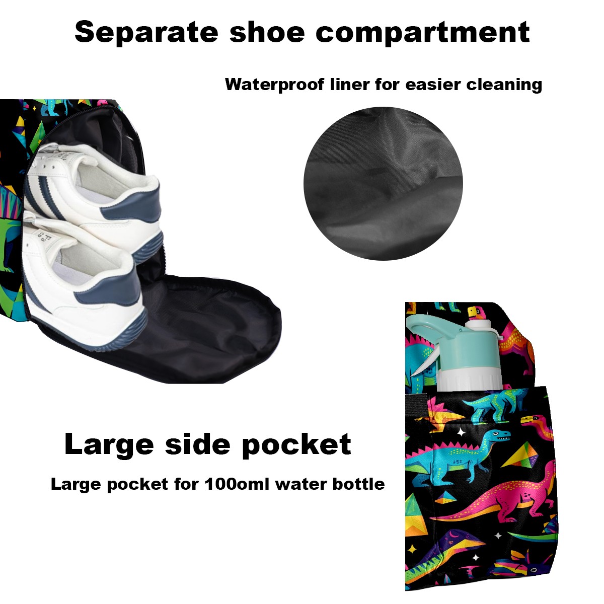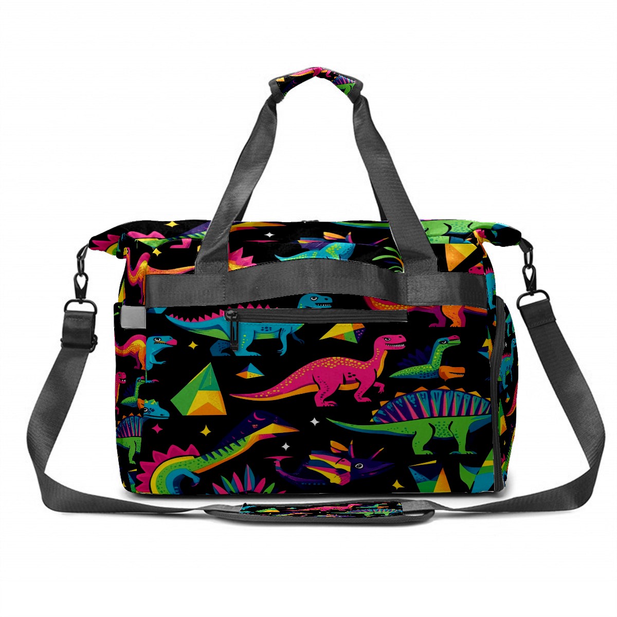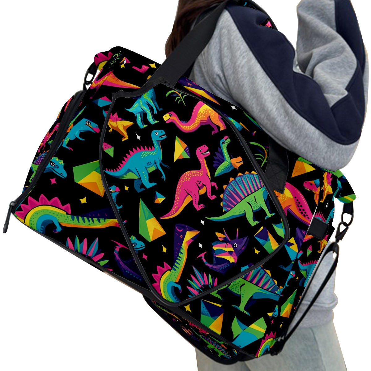 Pickleball Tote Bag Carryall for Paddles Balls and Accessories, Portable Lightweight Gear Bag for Players(Colorful Dinosaurs)