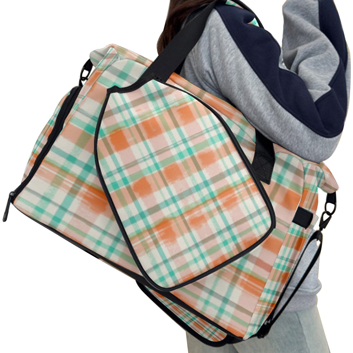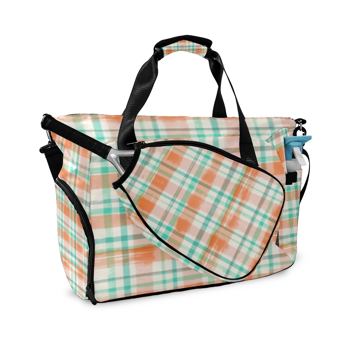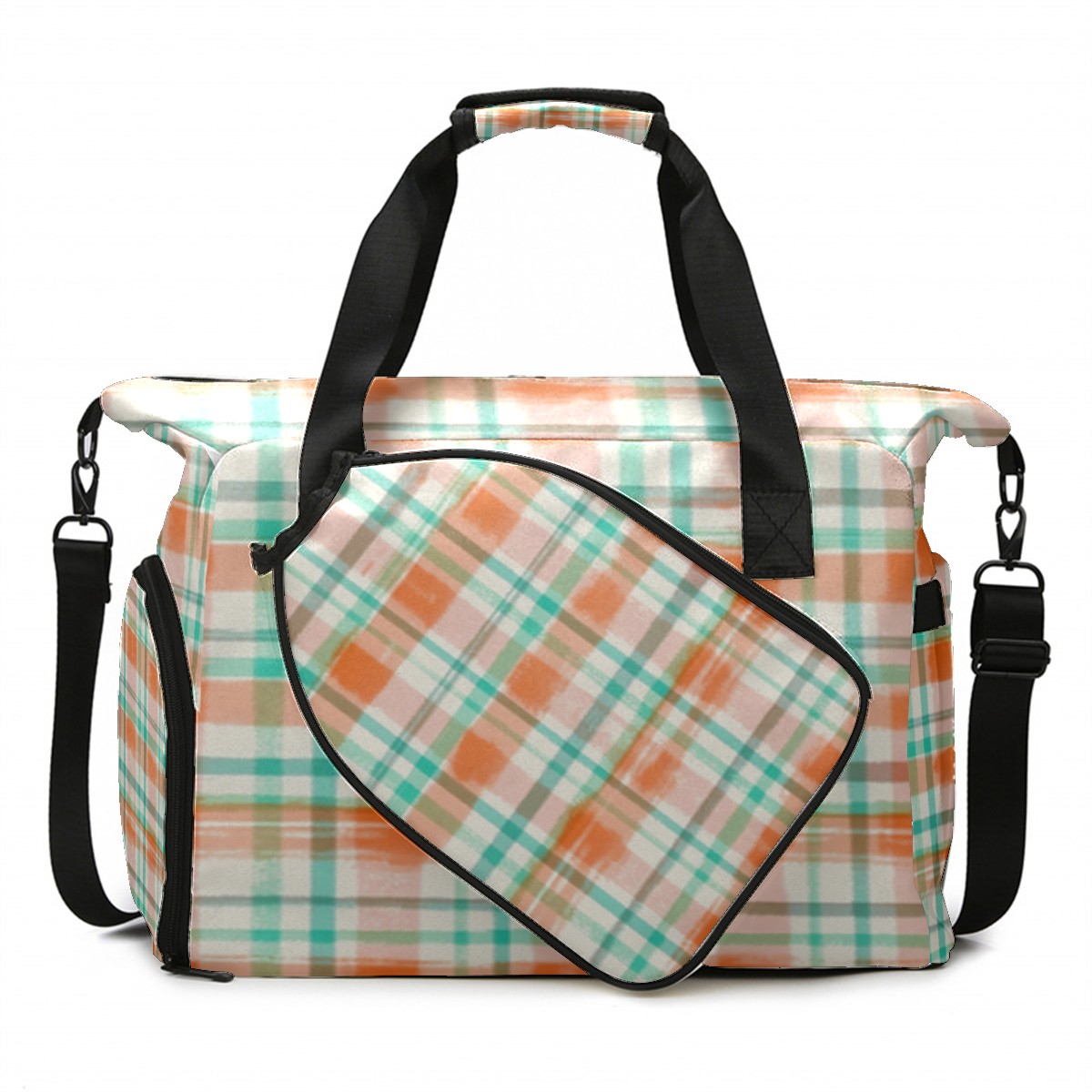 Pickleball Tote Bag Carryall for Paddles Balls and Accessories, Portable Lightweight Gear Bag for Players(Orange And Green Checkered)