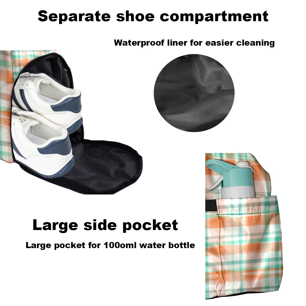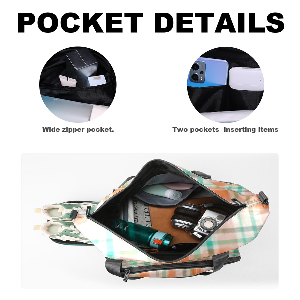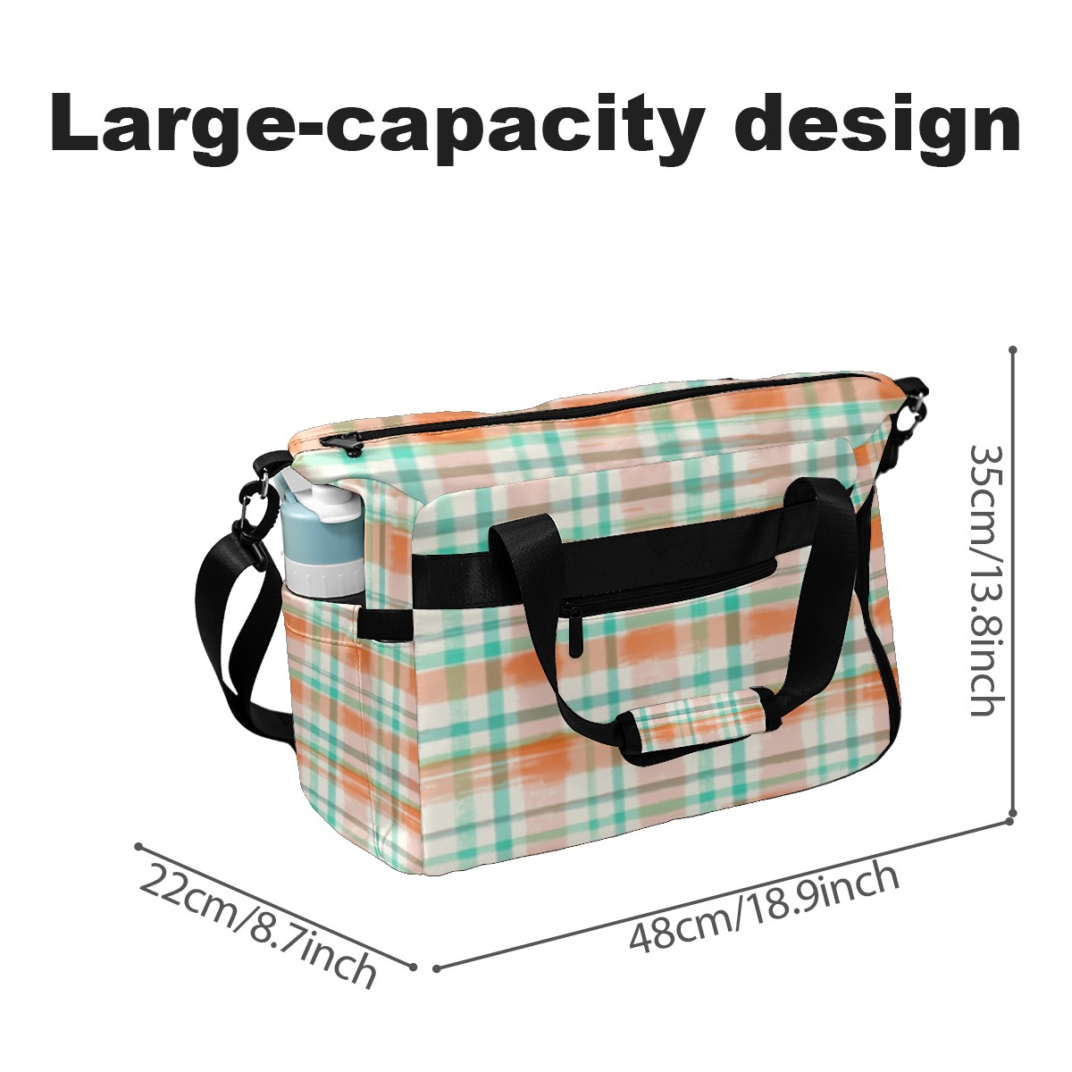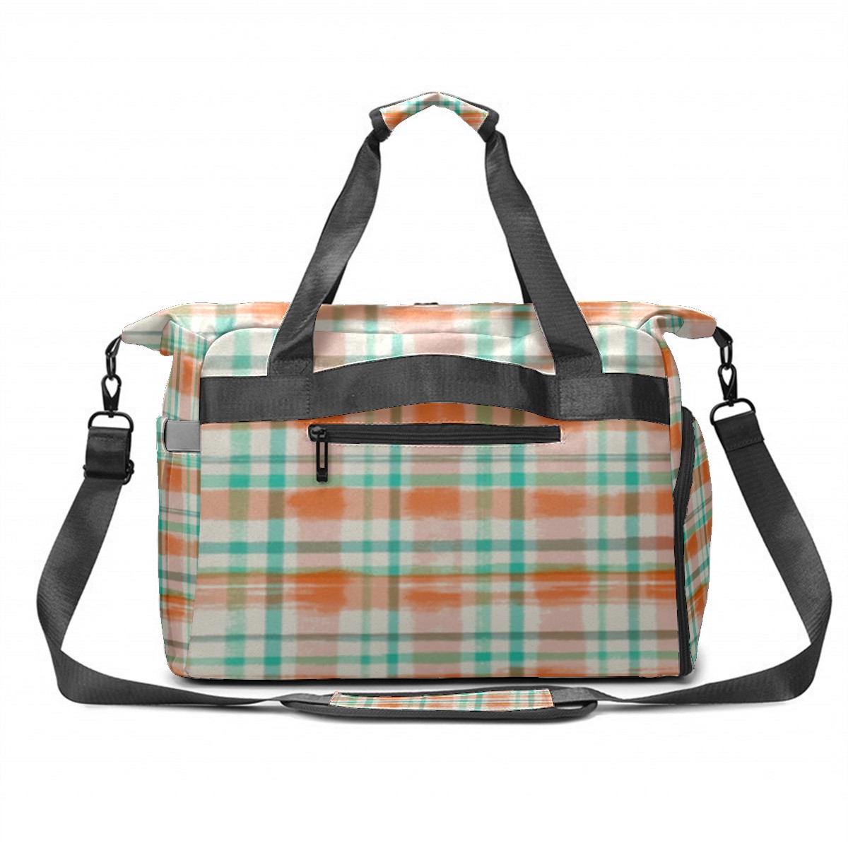 Pickleball Tote Bag Carryall for Paddles Balls and Accessories, Portable Lightweight Gear Bag for Players(Orange And Green Checkered)