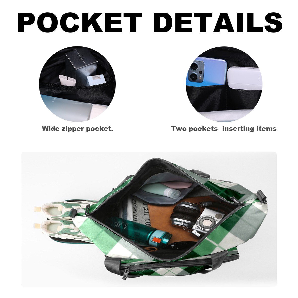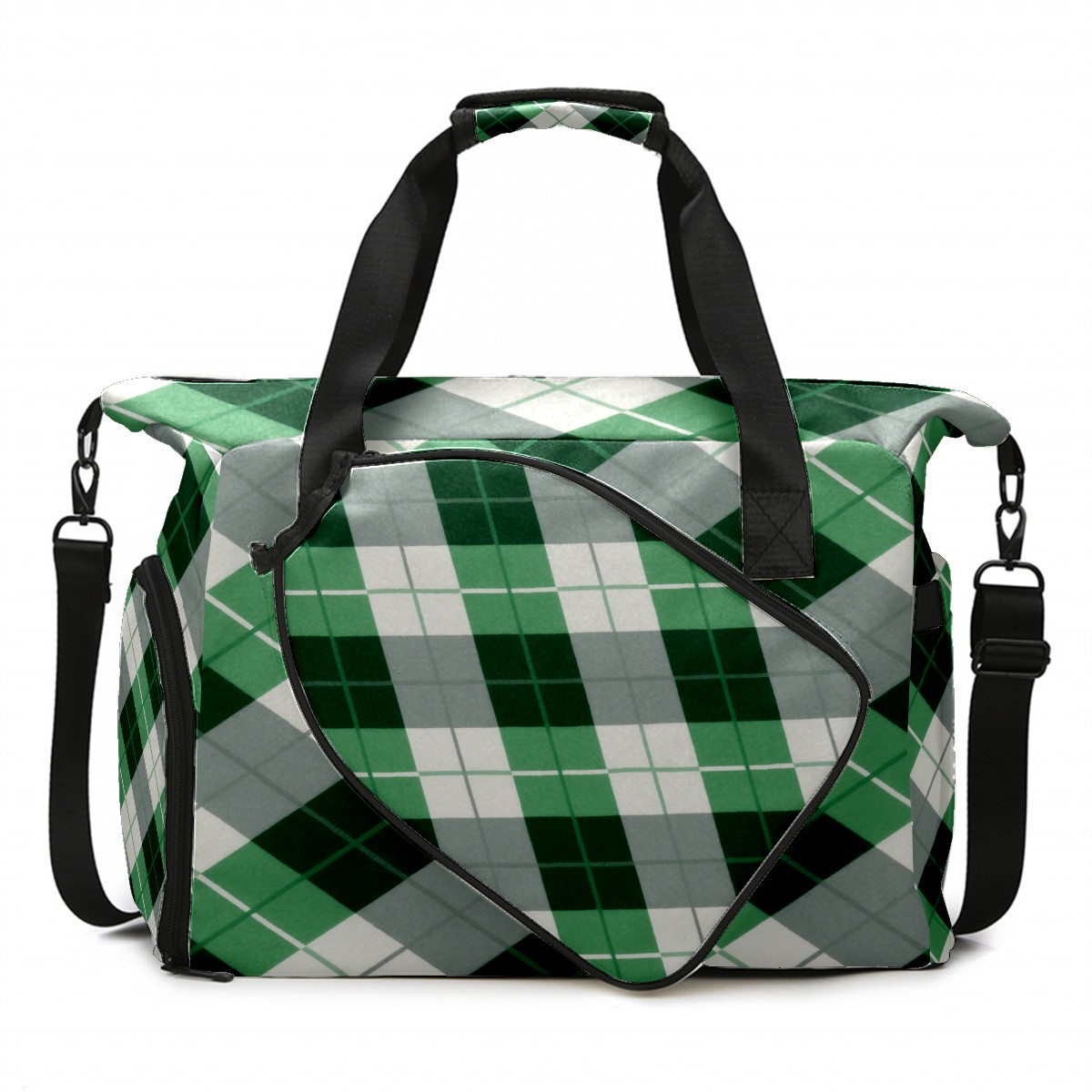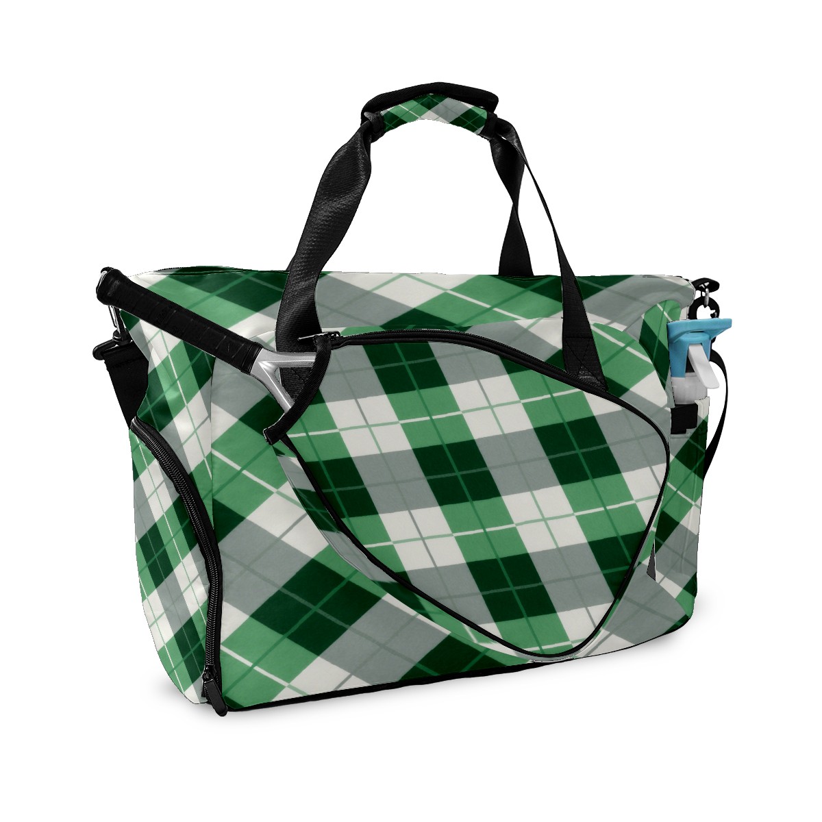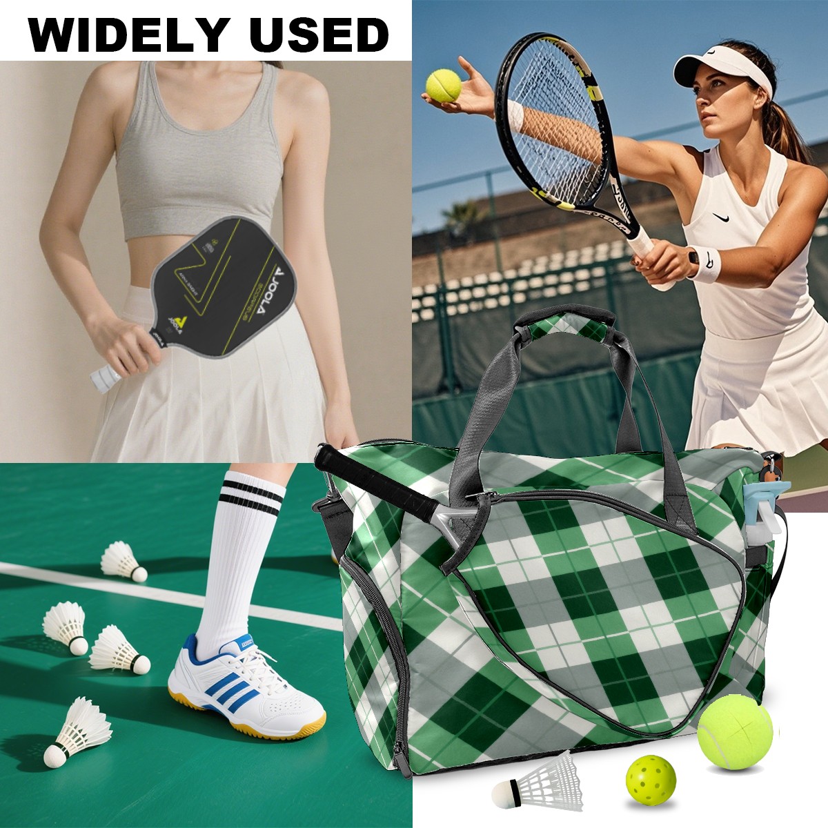 Pickleball Tote Bag Carryall for Paddles Balls and Accessories, Portable Lightweight Gear Bag for Players(Green Checkered)