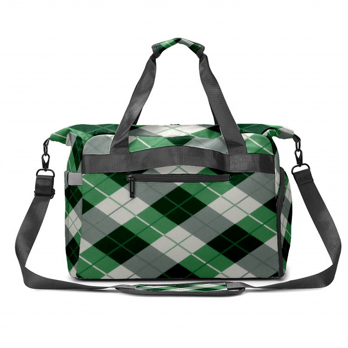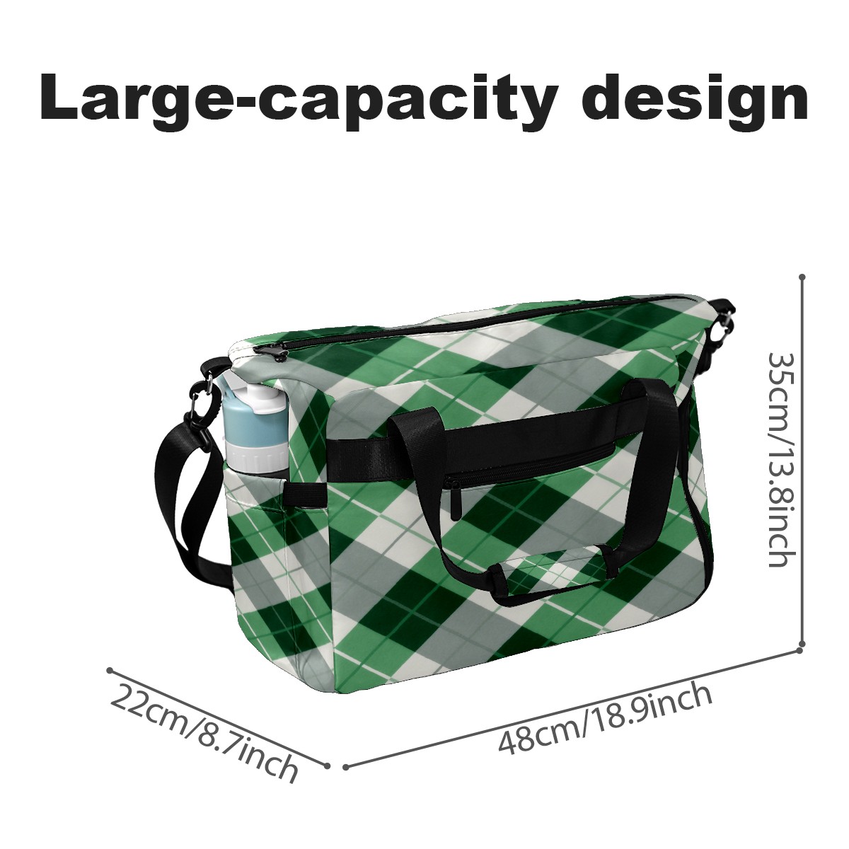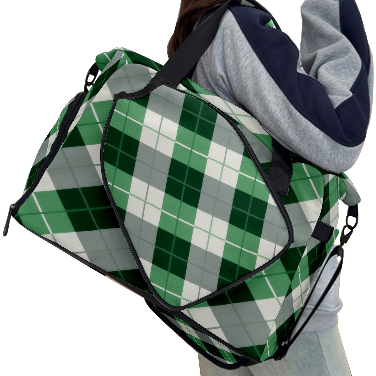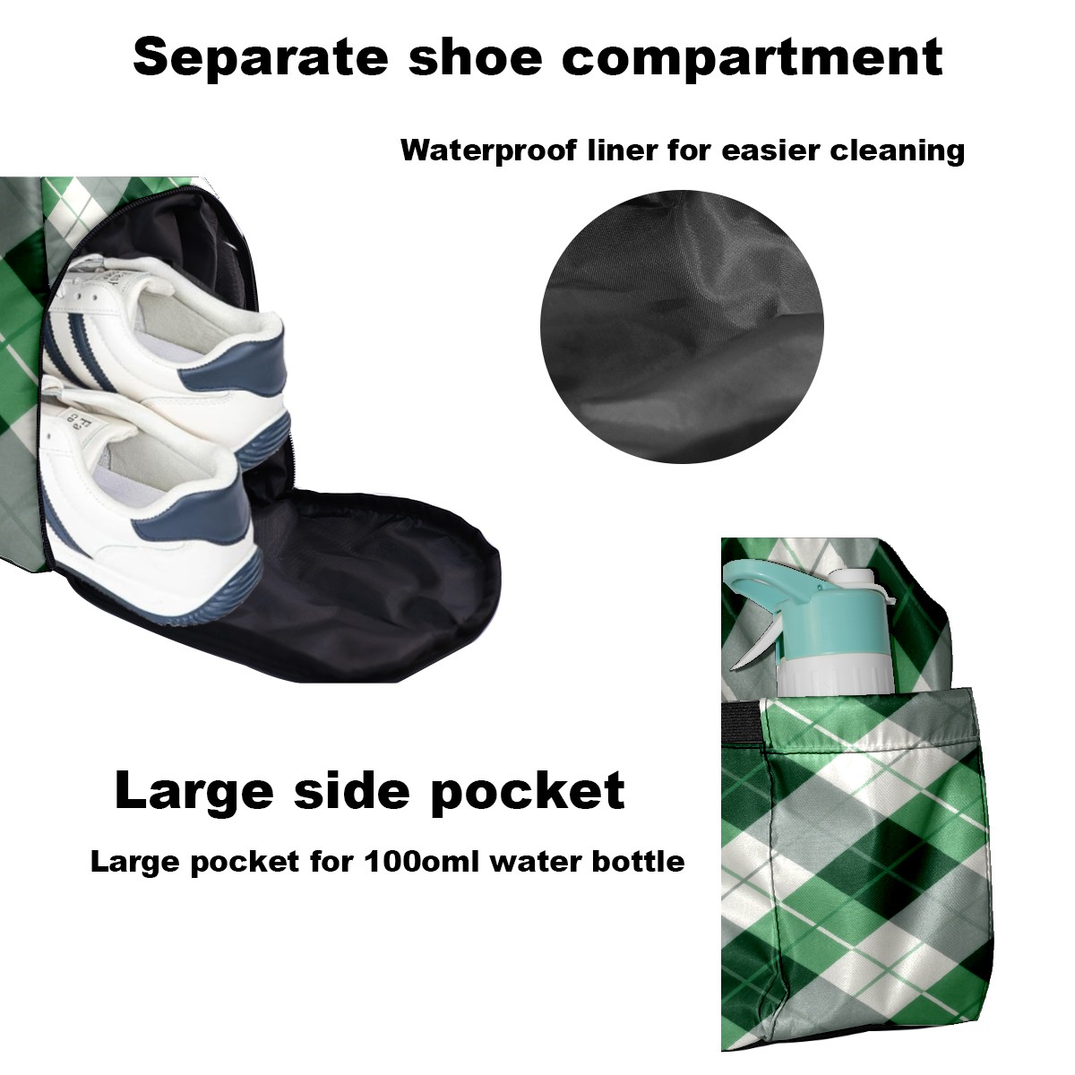 Pickleball Tote Bag Carryall for Paddles Balls and Accessories, Portable Lightweight Gear Bag for Players(Green Checkered)