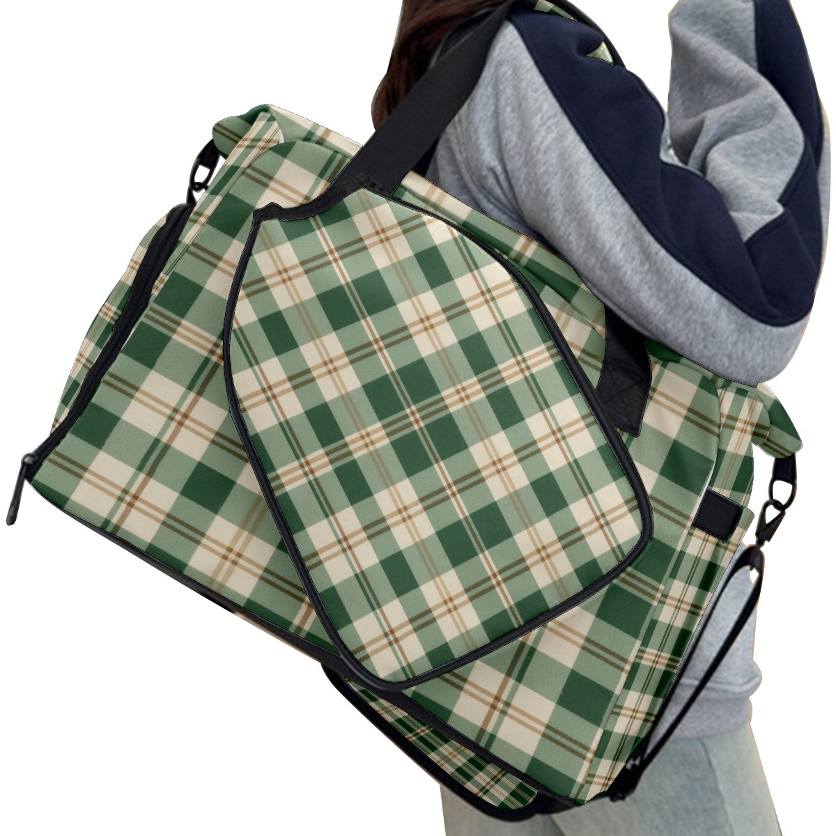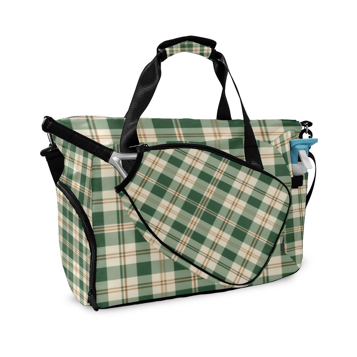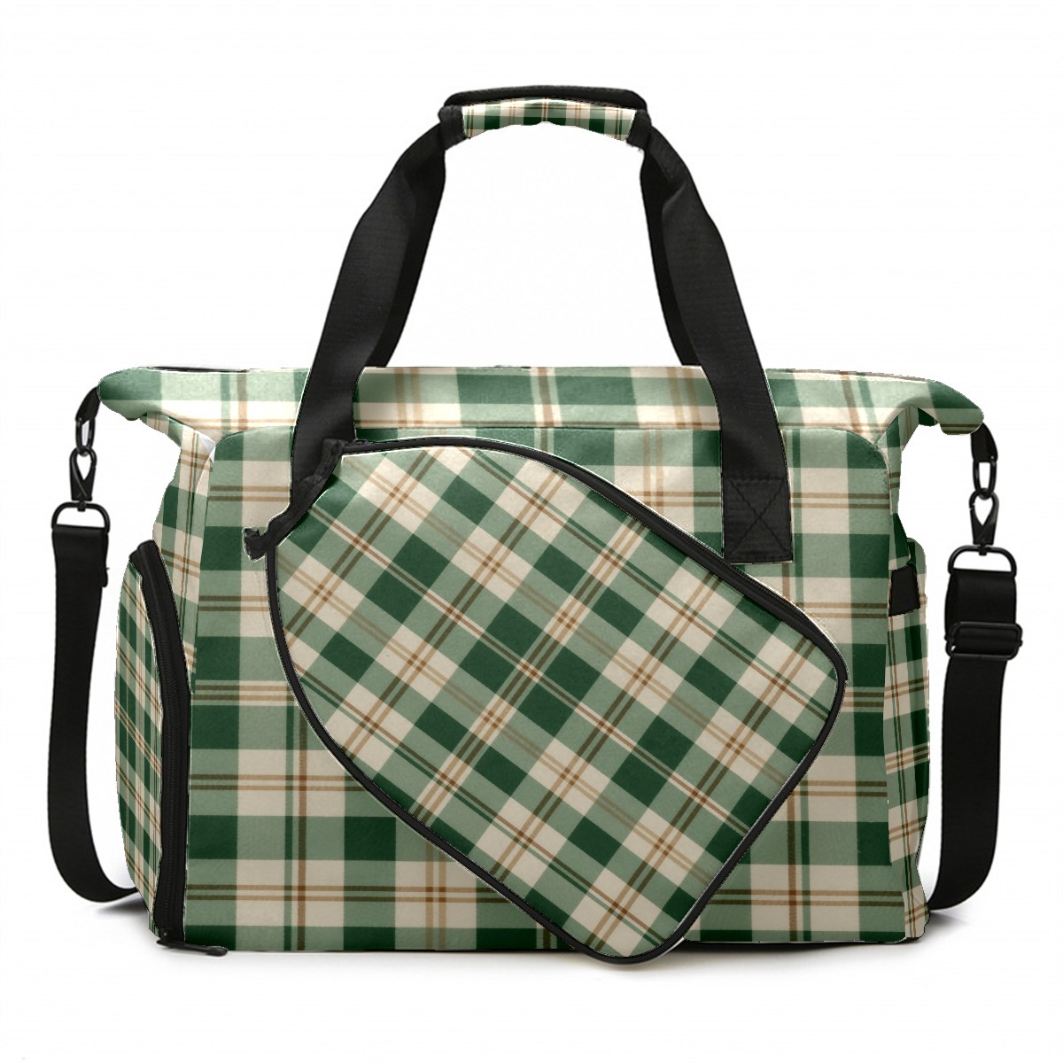 Pickleball Tote Bag Carryall for Paddles Balls and Accessories, Portable Lightweight Gear Bag for Players(Green And White Checkered)