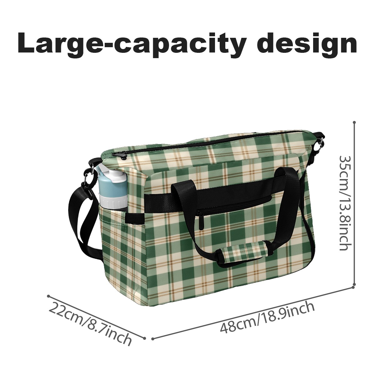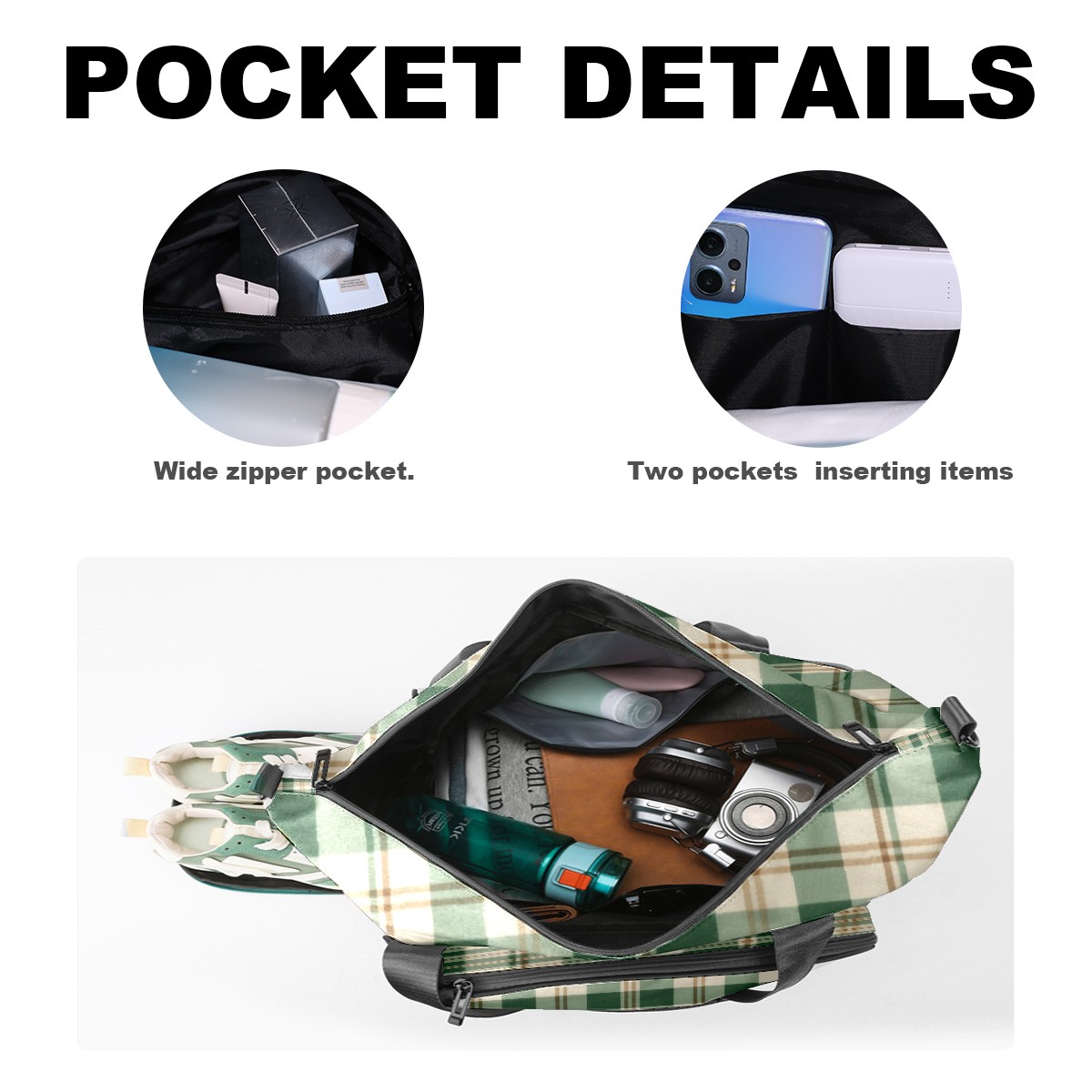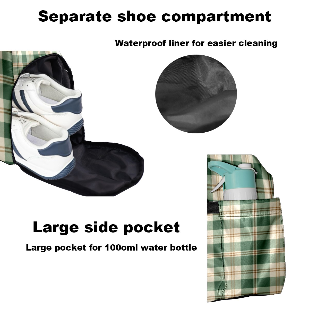Pickleball Tote Bag Carryall for Paddles Balls and Accessories, Portable Lightweight Gear Bag for Players(Green And White Checkered)