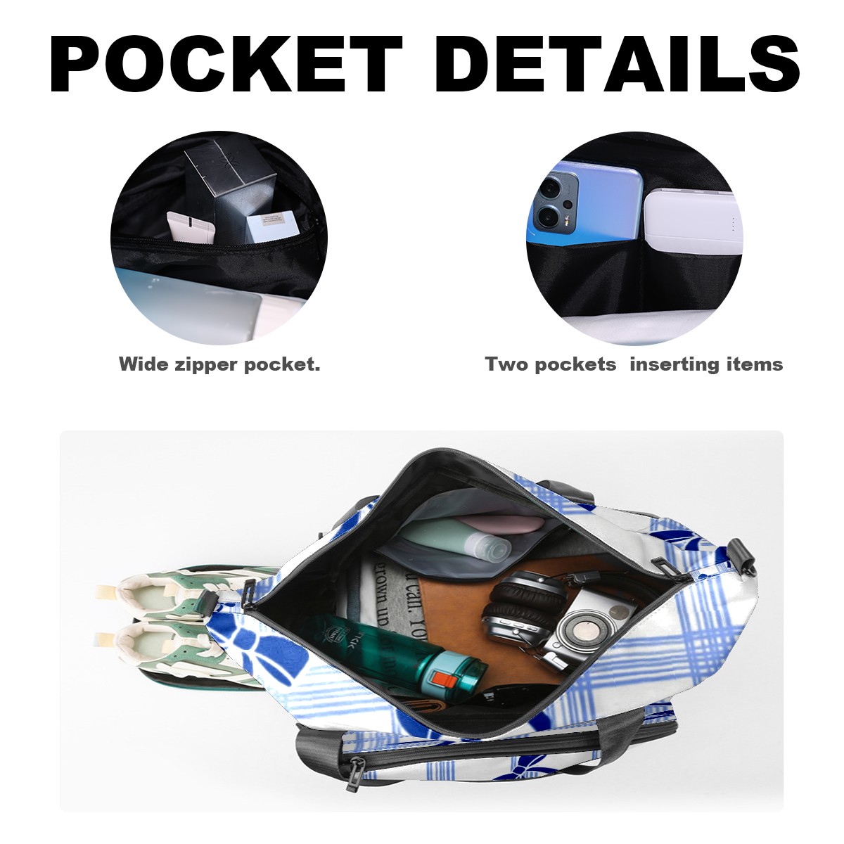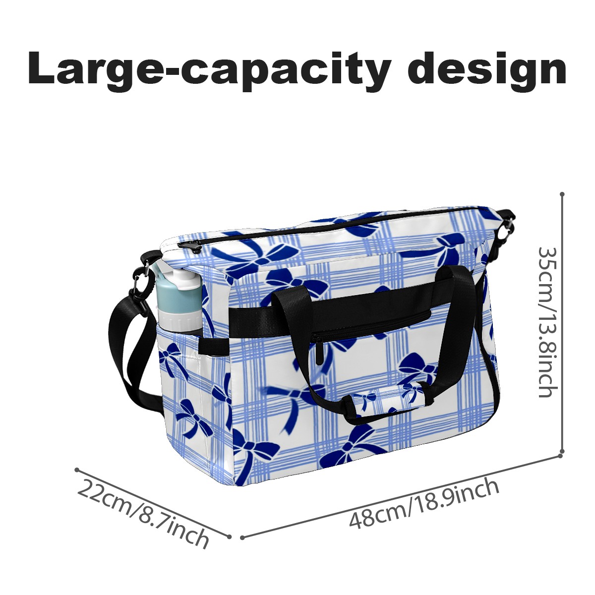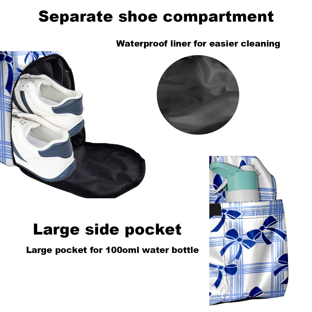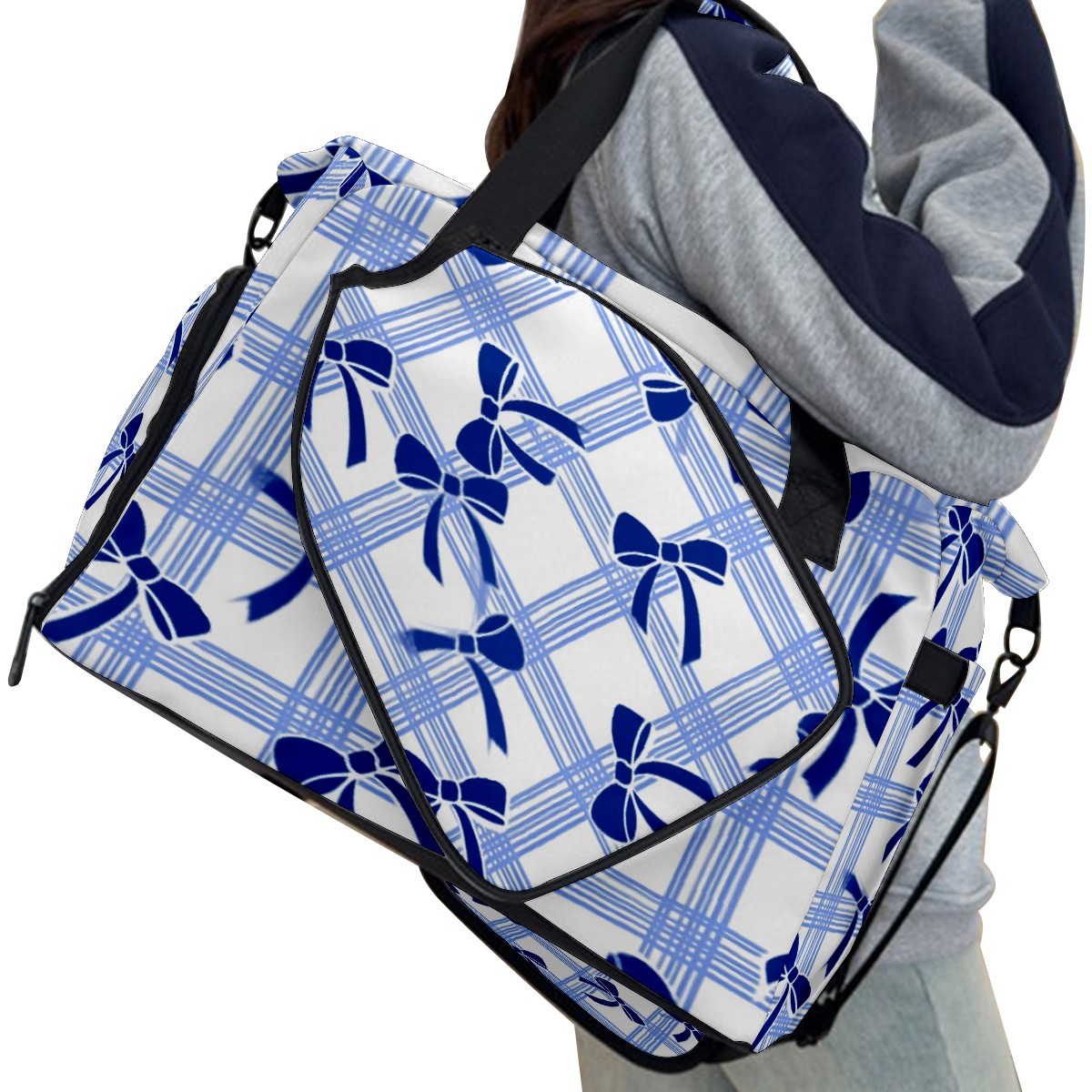 Pickleball Tote Bag Carryall for Paddles Balls and Accessories, Portable Lightweight Gear Bag for Players(Blue White Checkered And Bow)