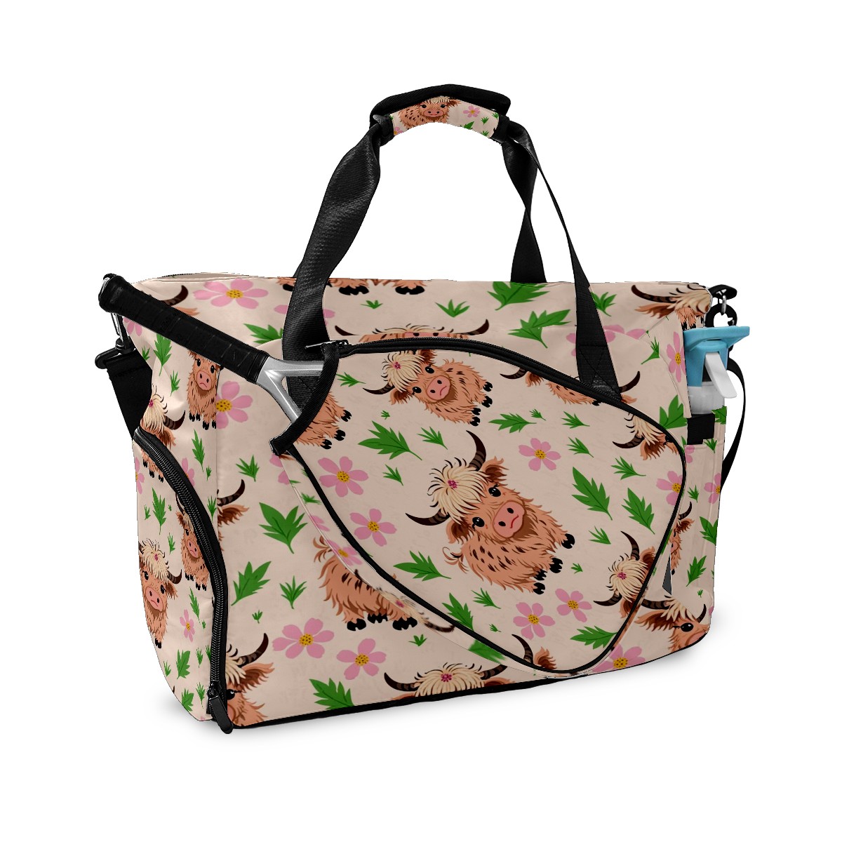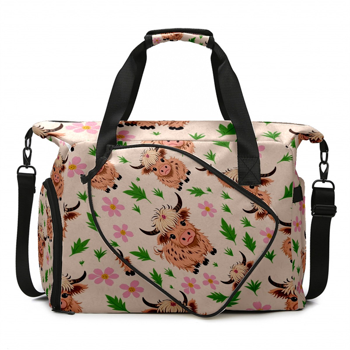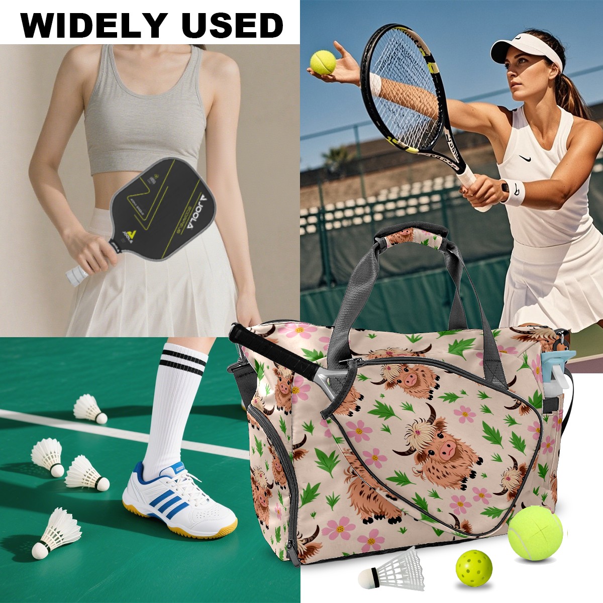 Pickleball Tote Bag Carryall for Paddles Balls and Accessories, Portable Lightweight Gear Bag for Players(Highland Cattle)