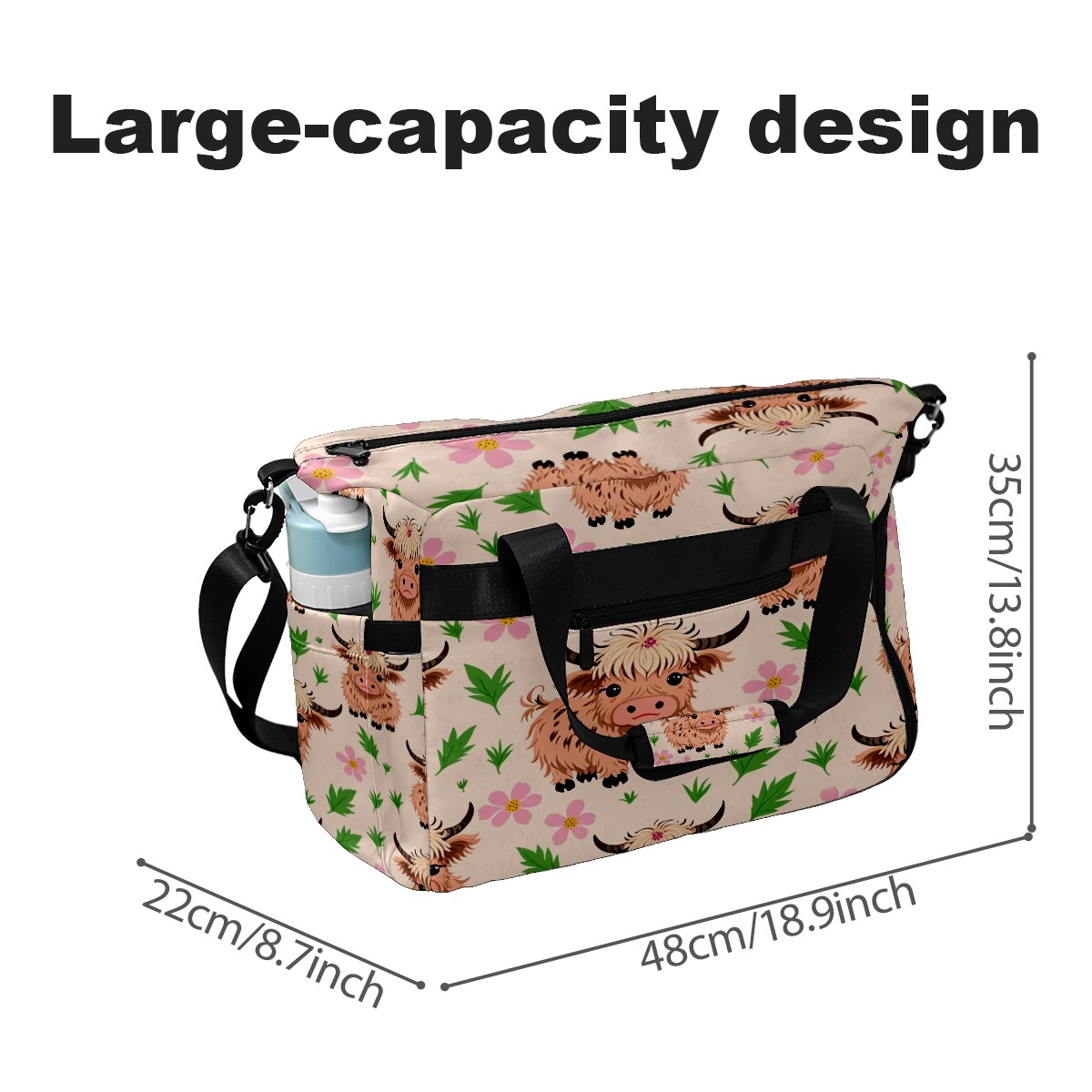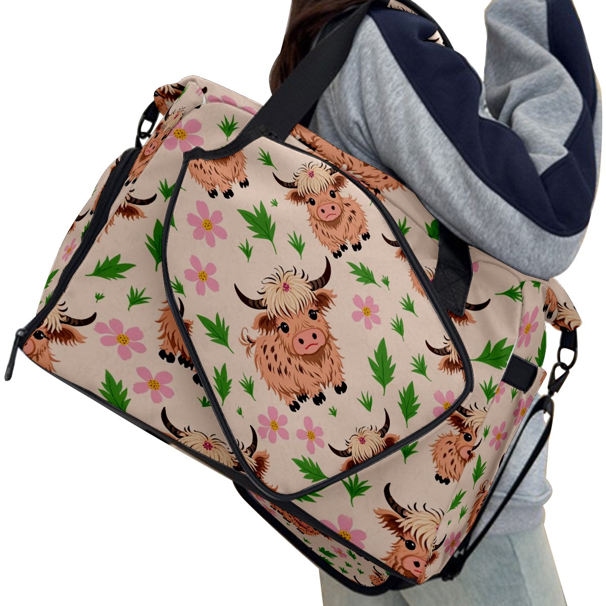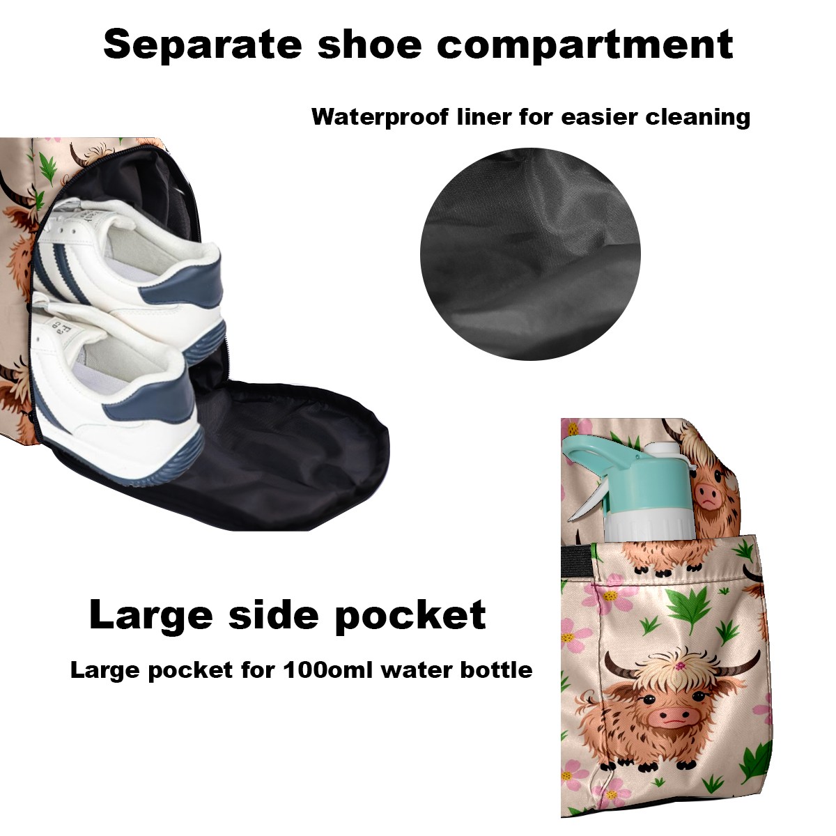 Pickleball Tote Bag Carryall for Paddles Balls and Accessories, Portable Lightweight Gear Bag for Players(Highland Cattle)