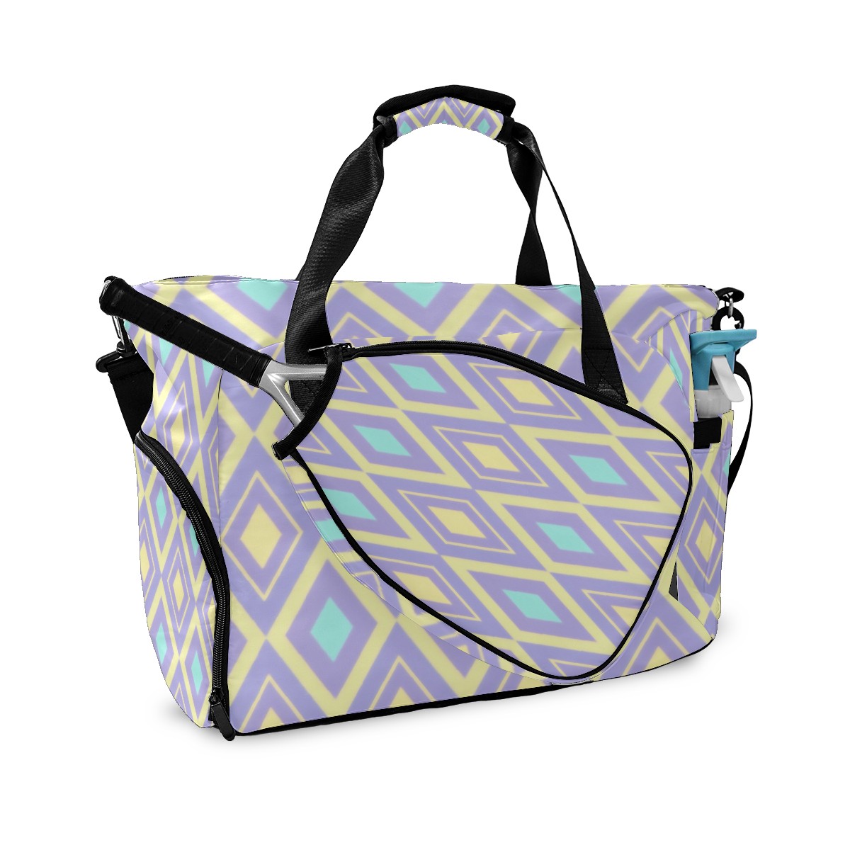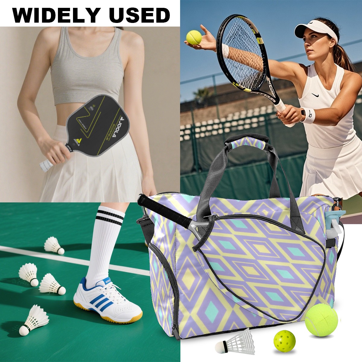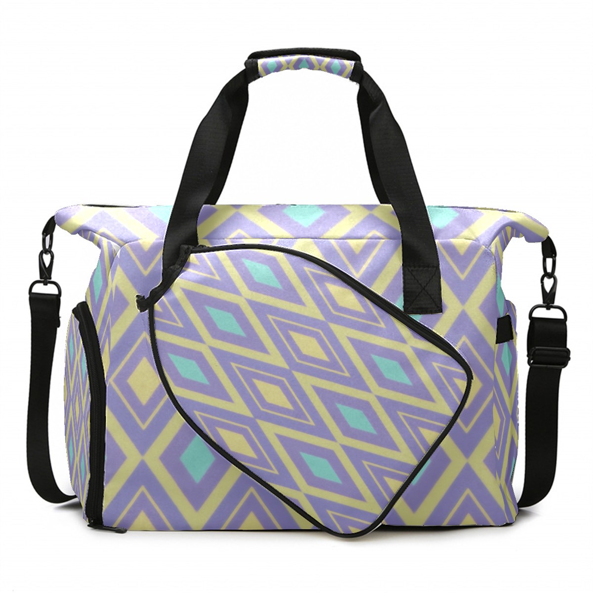 Pickleball Tote Bag Carryall for Paddles Balls and Accessories, Portable Lightweight Gear Bag for Players(Purple Yellow Plaid)