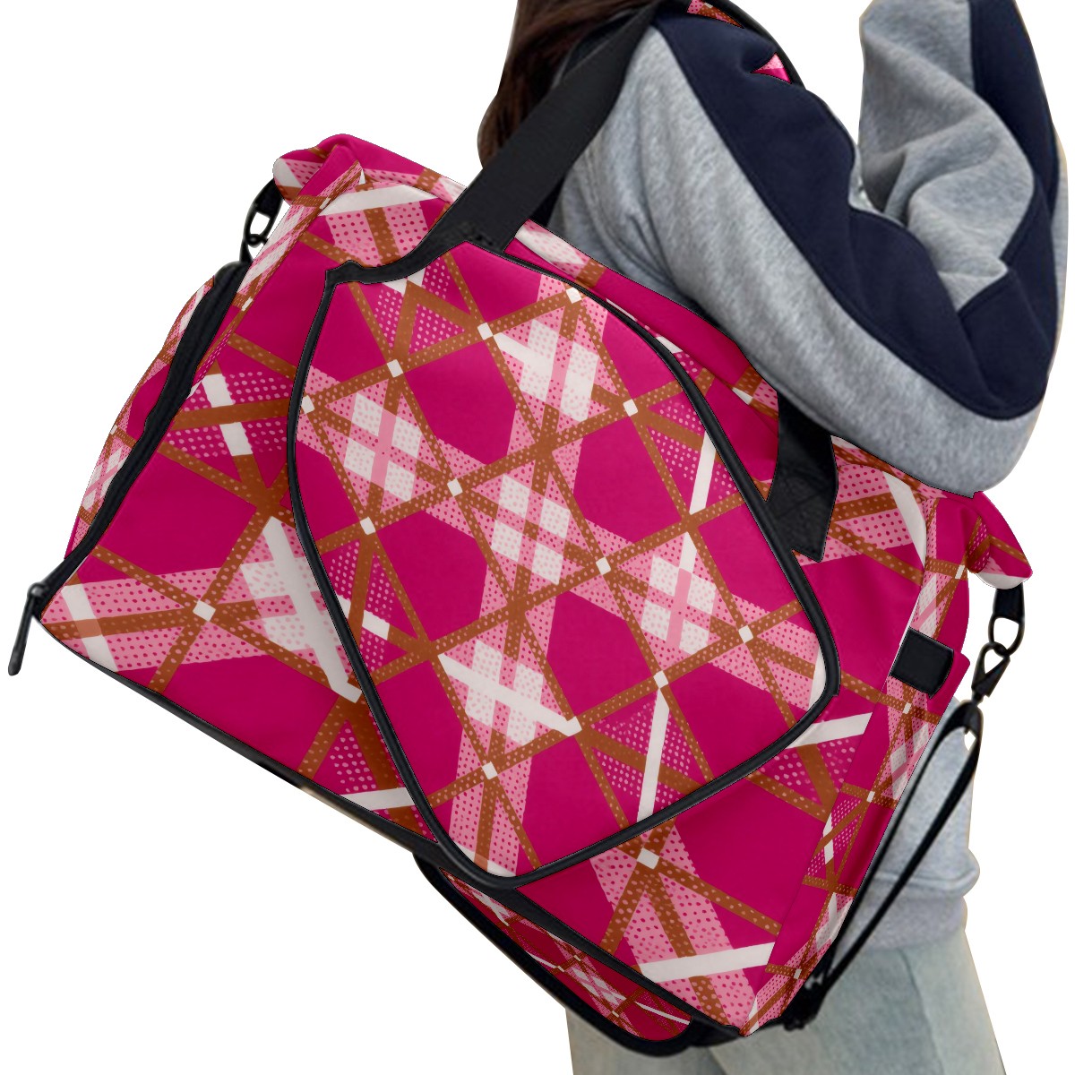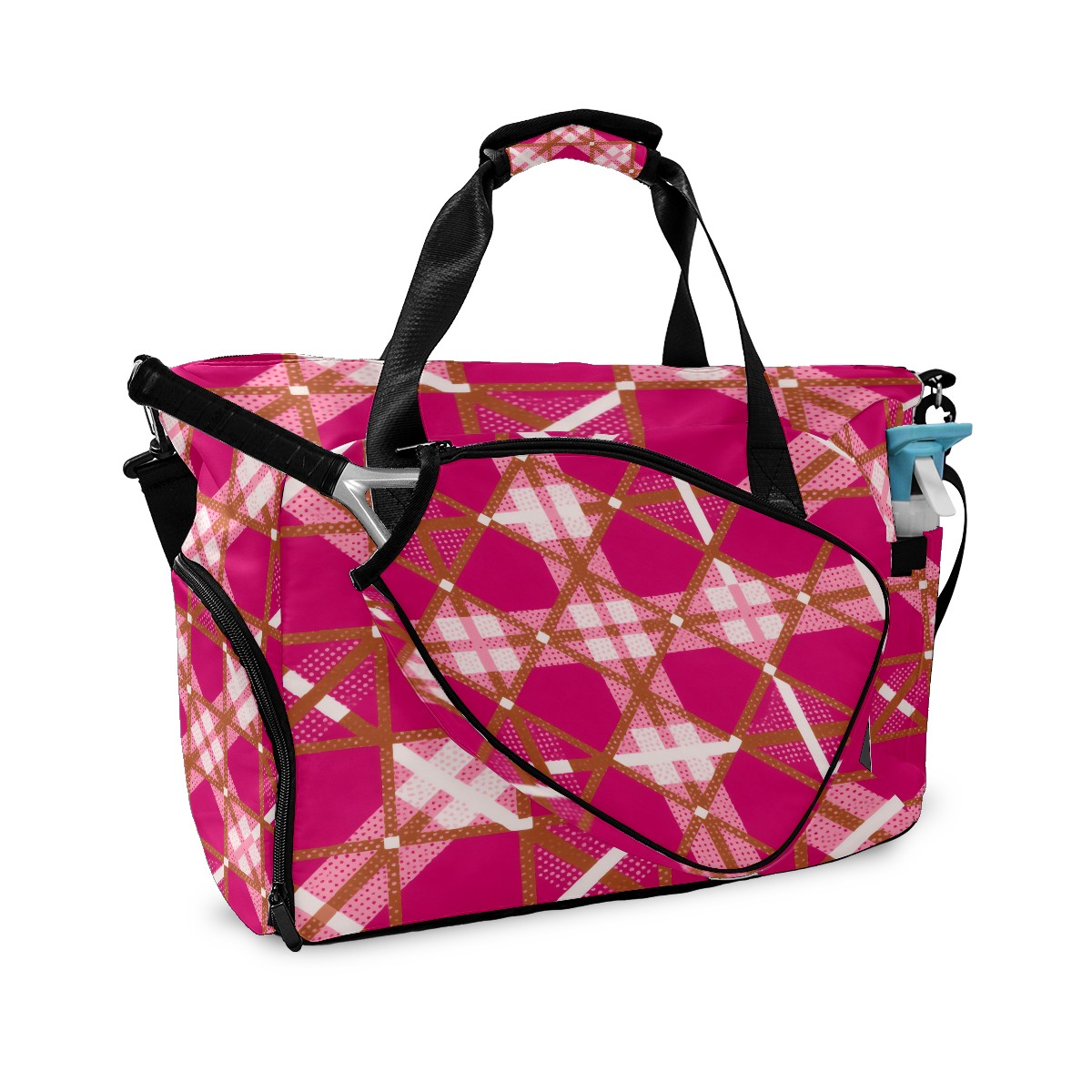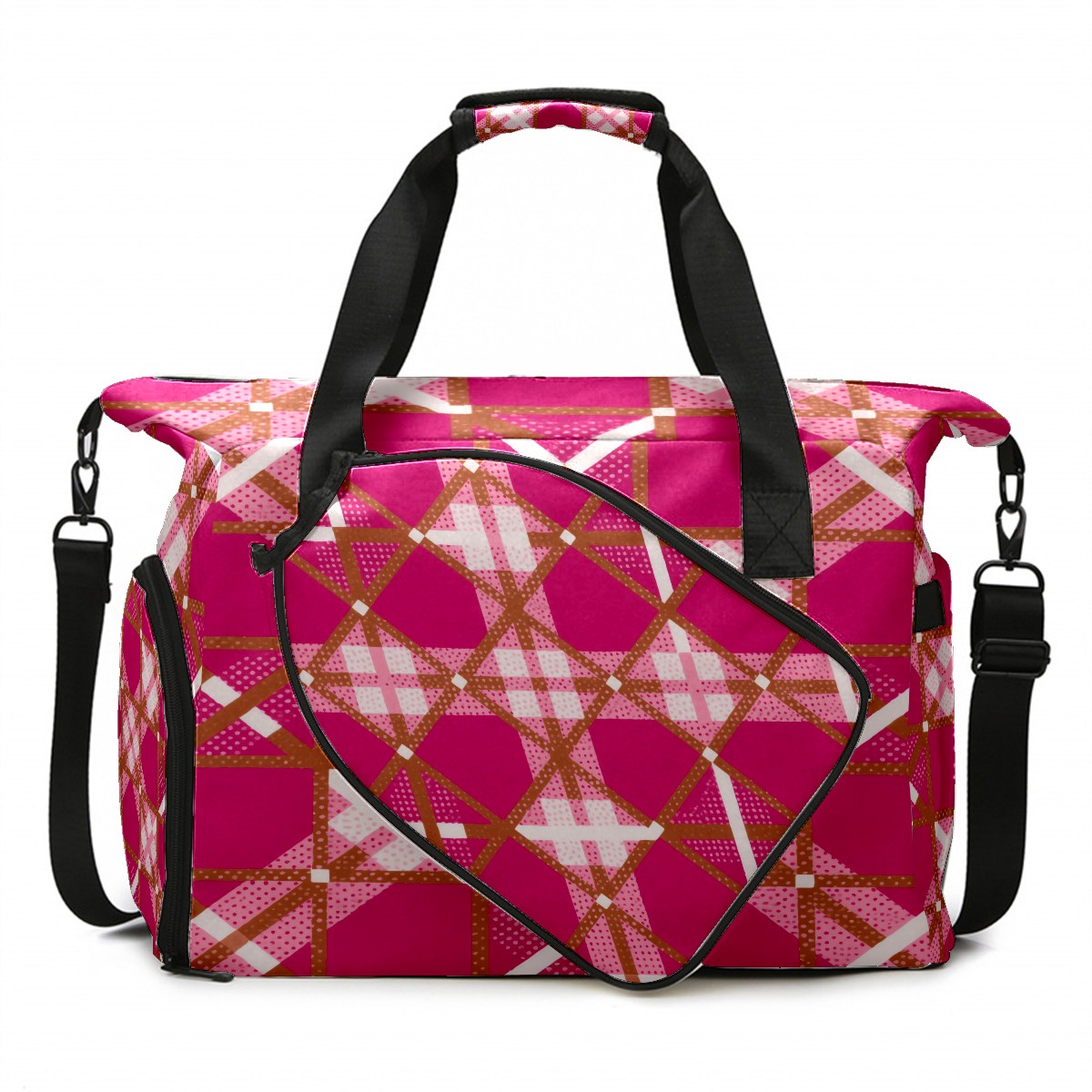 Pickleball Tote Bag Carryall for Paddles Balls and Accessories, Portable Lightweight Gear Bag for Players(Rose Red Checkered)