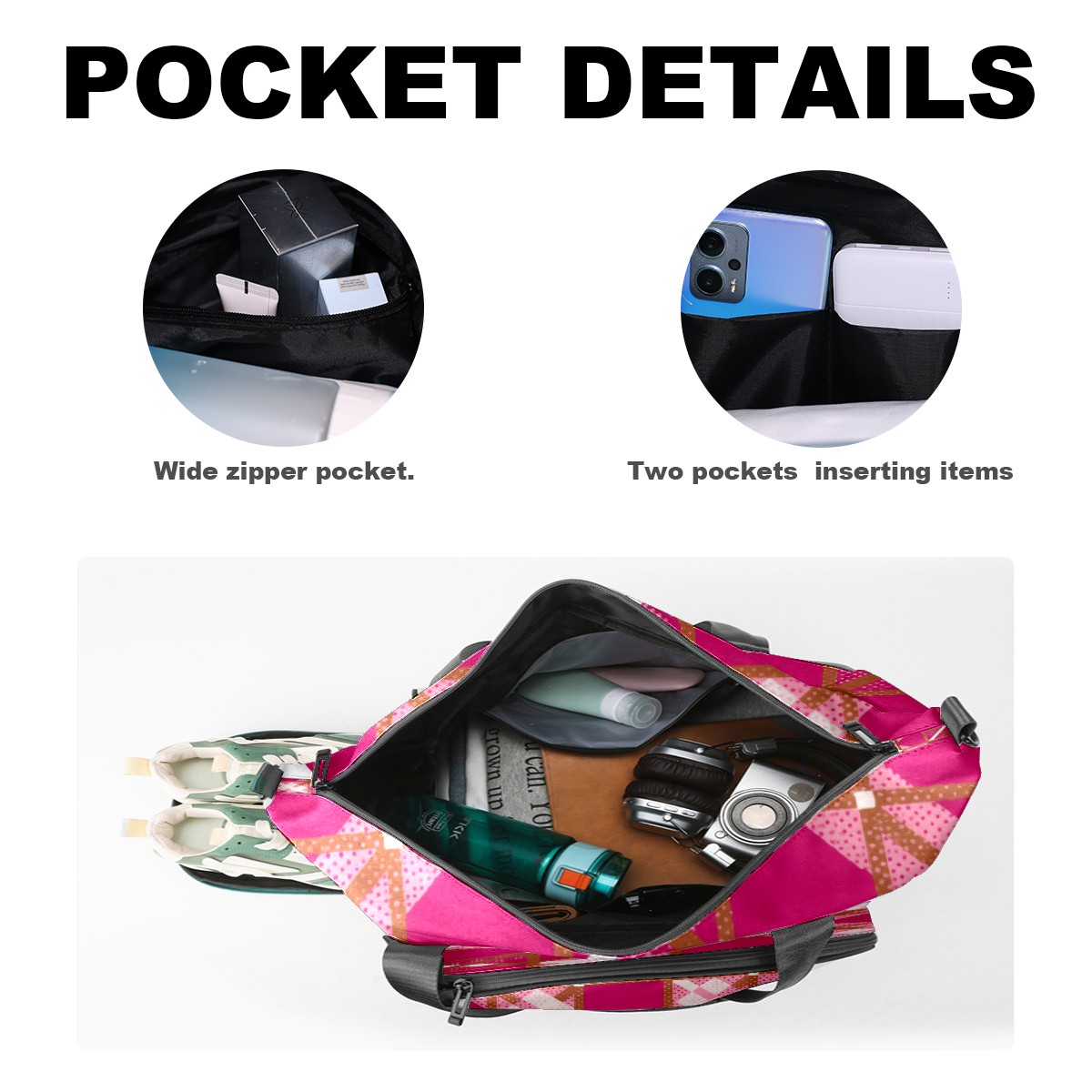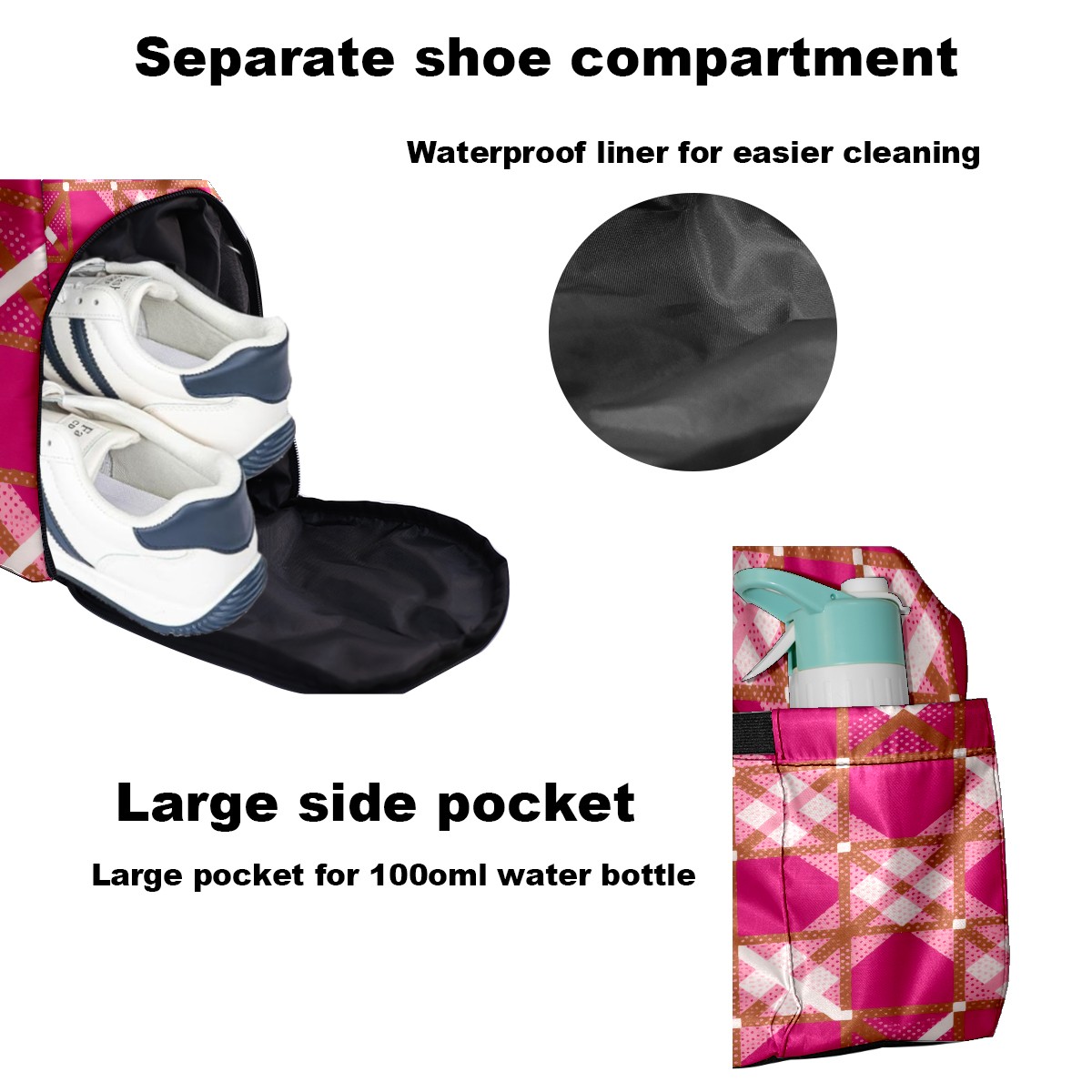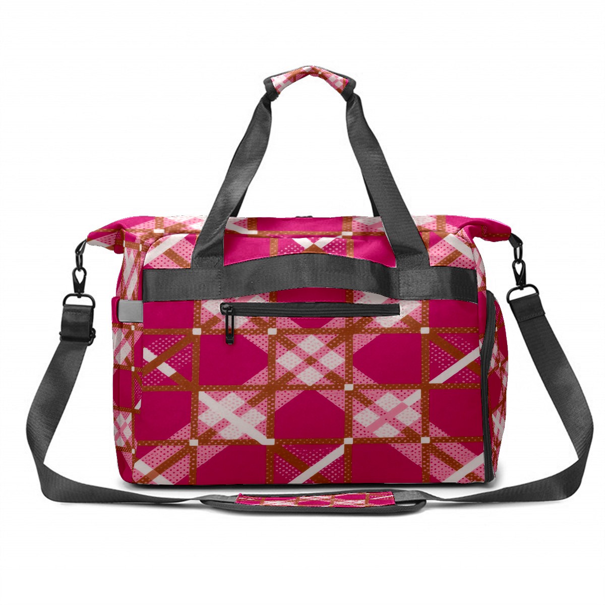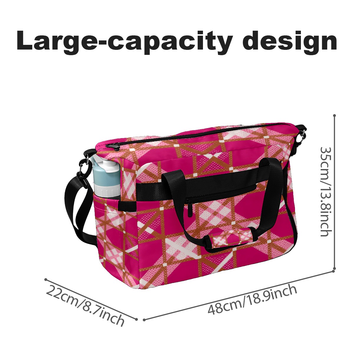 Pickleball Tote Bag Carryall for Paddles Balls and Accessories, Portable Lightweight Gear Bag for Players(Rose Red Checkered)