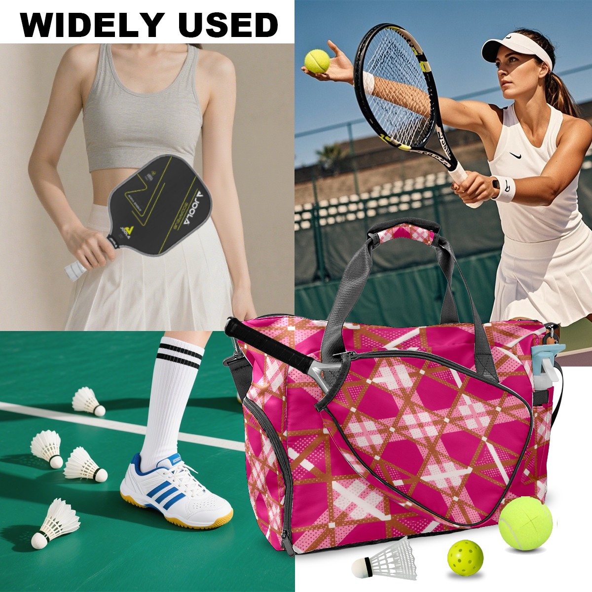 <p>Meet your ultimate court companion – the premium pickleball bag designed for players who demand durability and smart organization. Whether you're heading to a local tournament or a casual game with friends, our meticulously crafted bag keeps your gear secure, accessible, and tournament-ready.</p> <p><b>Built for the Active Lifestyle:</b></p> <p>From casual pickleball games to competitive leagues, this bag adapts to your needs. Store paddles, balls, towels, water bottles, and phones in intelligently placed pockets. The nylon fabric construction withstands court abrasions and daily use season after season.</p>