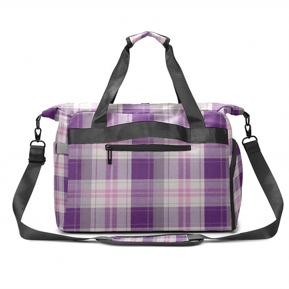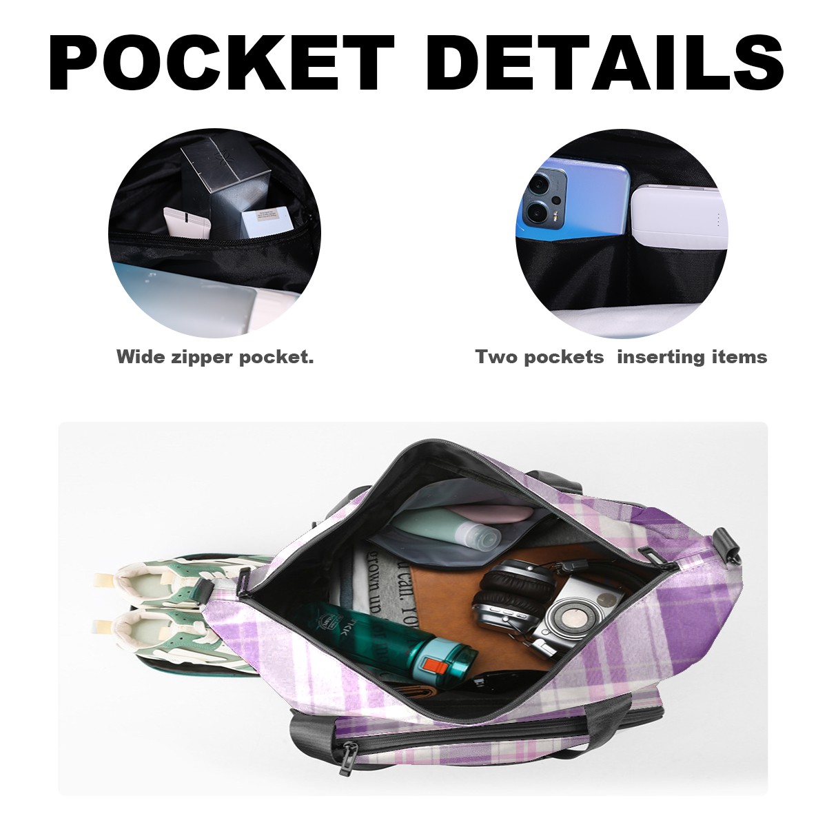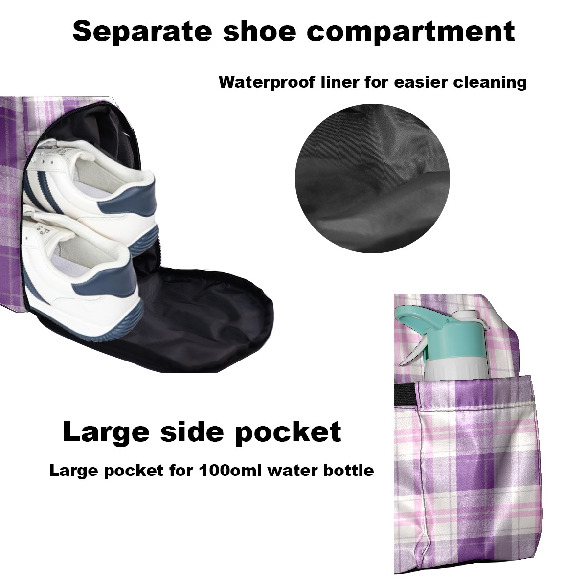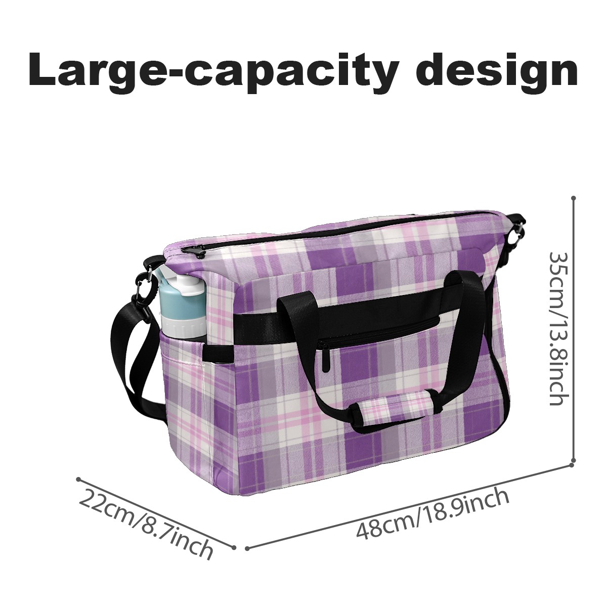 Pickleball Tote Bag Carryall for Paddles Balls and Accessories, Portable Lightweight Gear Bag for Players(Purple And White Checkered)