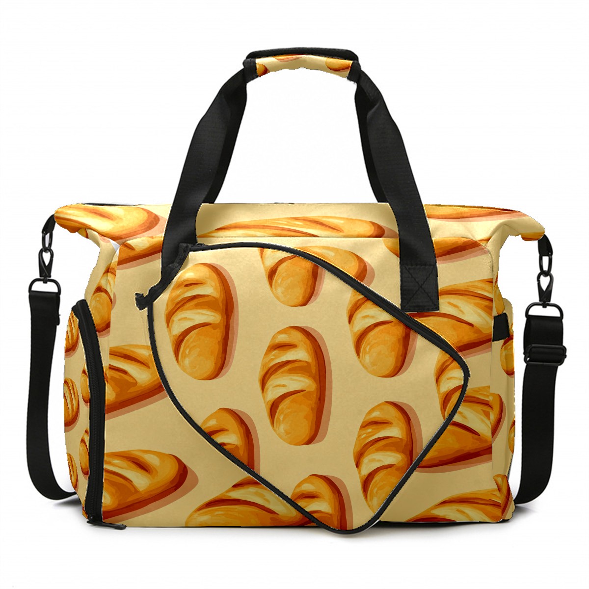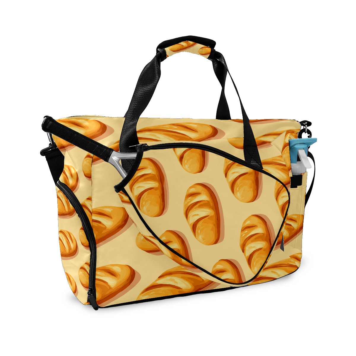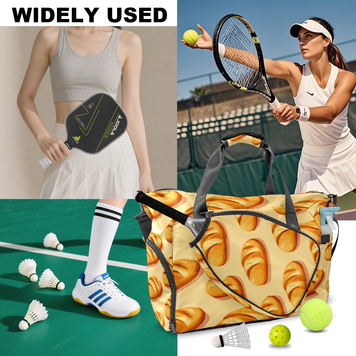 Pickleball Tote Bag Carryall for Paddles Balls and Accessories, Portable Lightweight Gear Bag for Players(Golden-brown French Loaves)