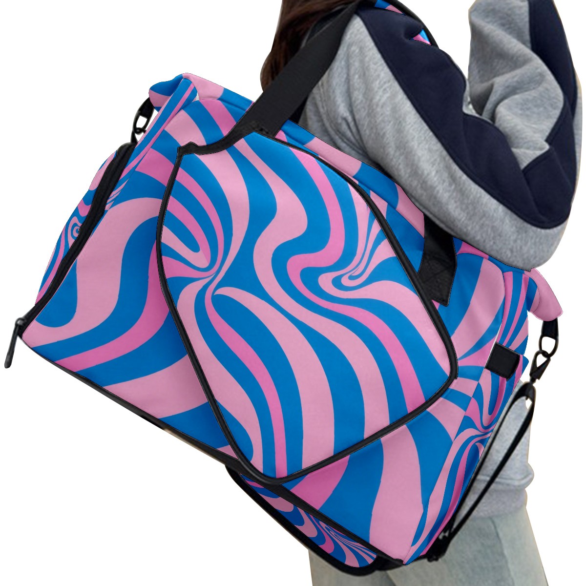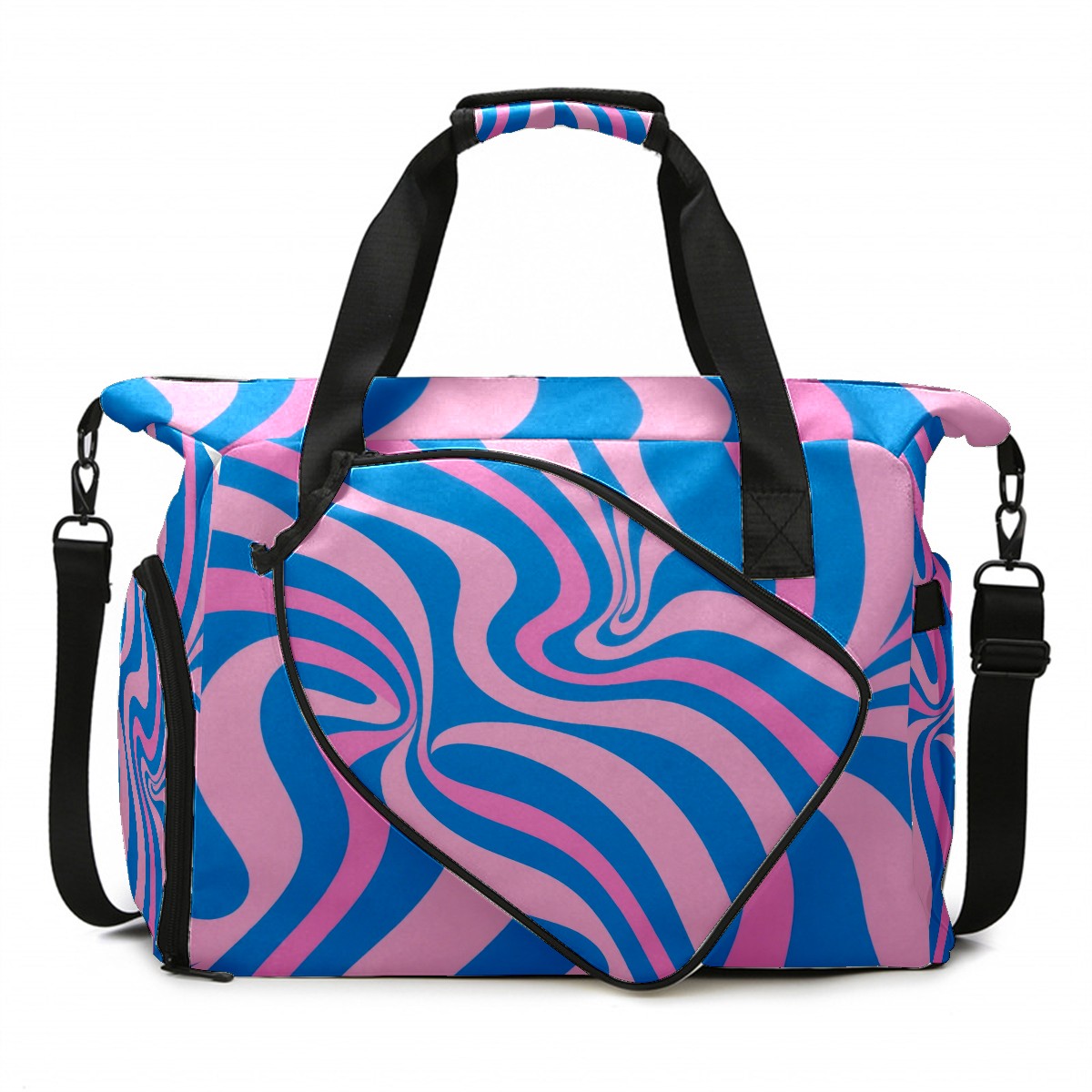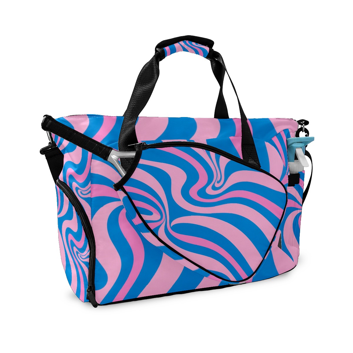 Pickleball Tote Bag Carryall for Paddles Balls and Accessories, Portable Lightweight Gear Bag for Players(Pink Blue Wavy)