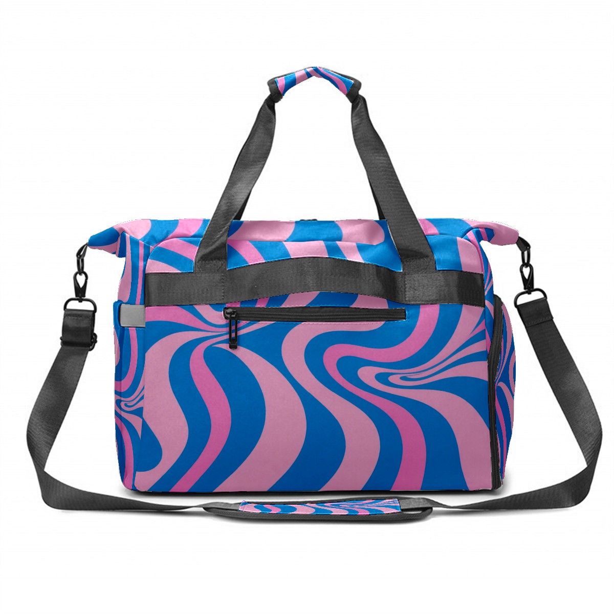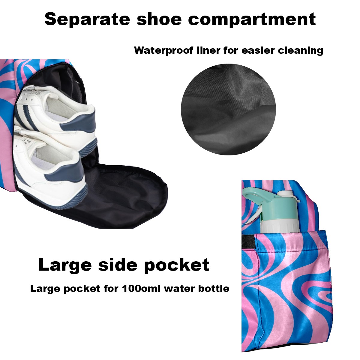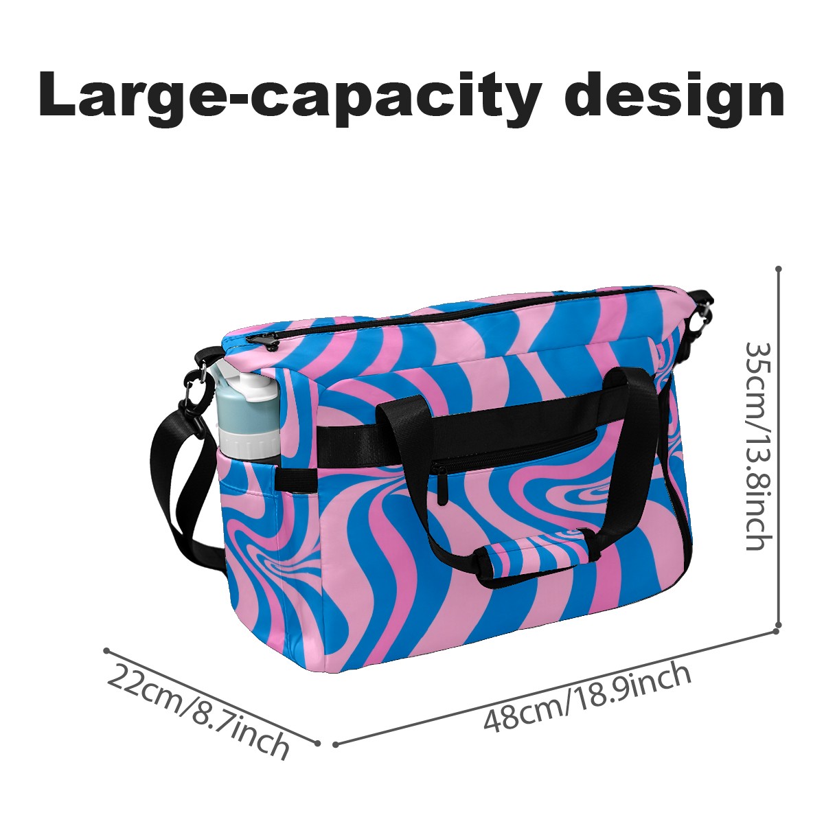 Pickleball Tote Bag Carryall for Paddles Balls and Accessories, Portable Lightweight Gear Bag for Players(Pink Blue Wavy)