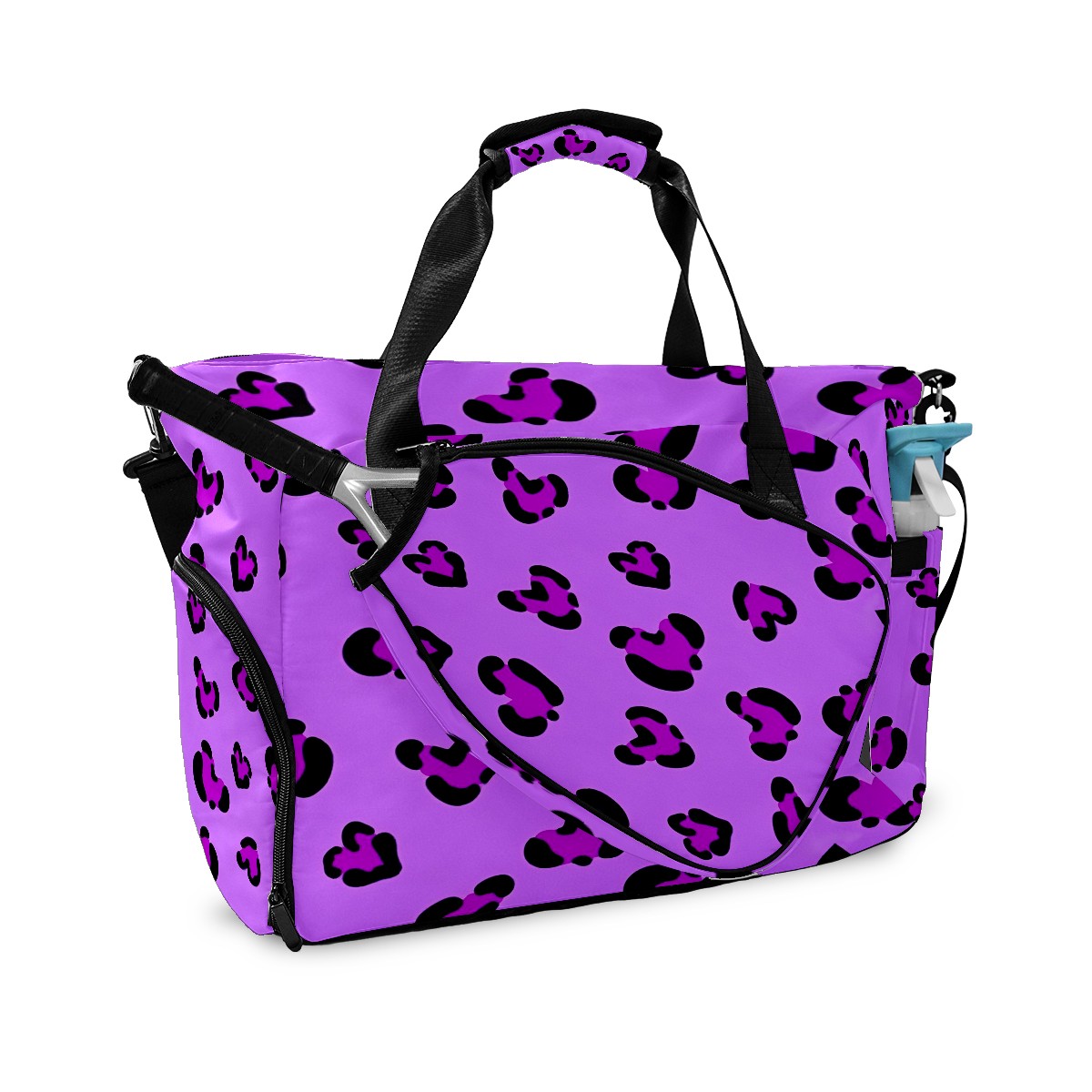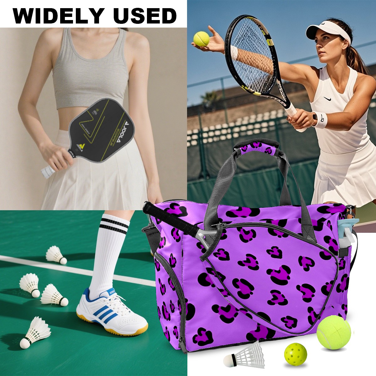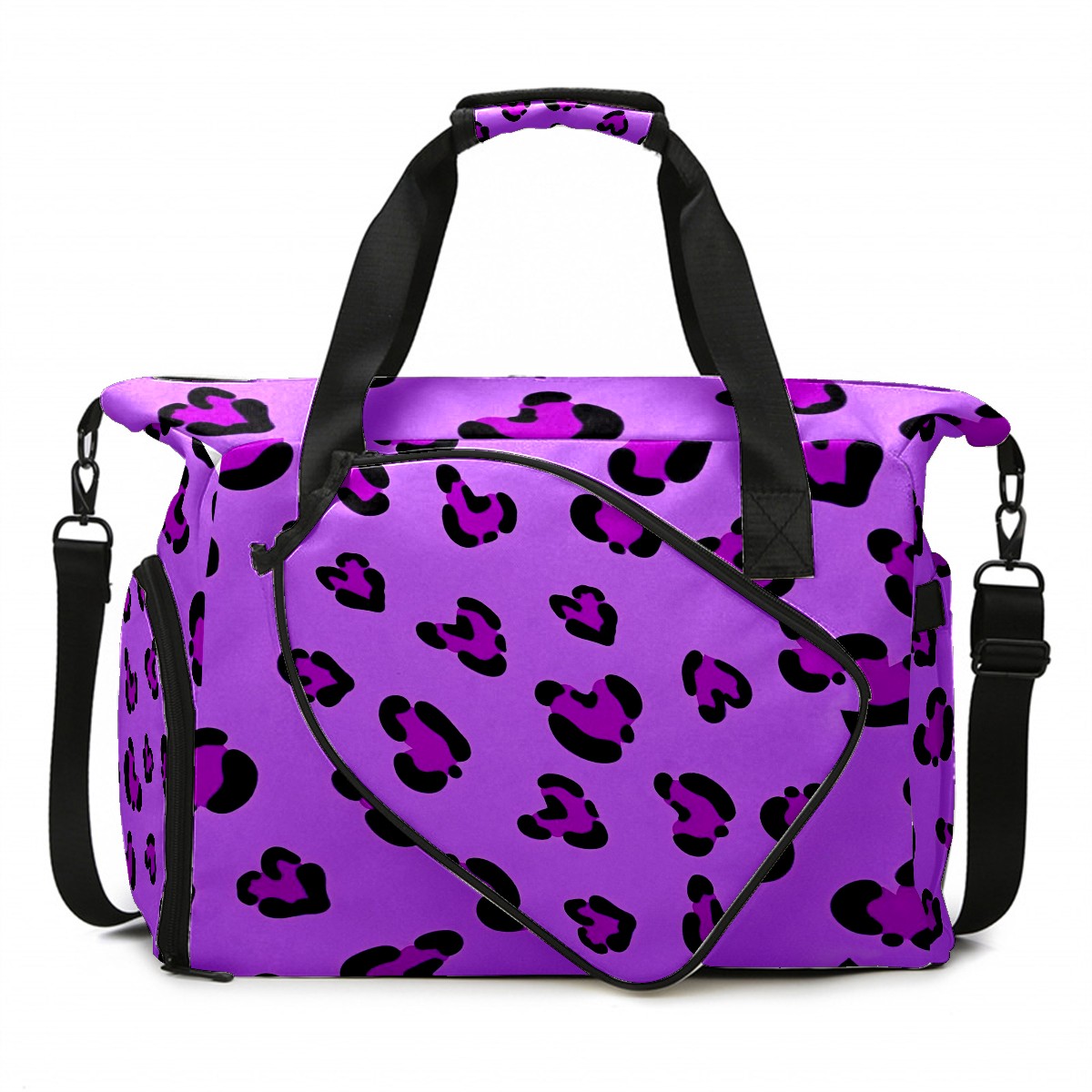 Pickleball Tote Bag Carryall for Paddles Balls and Accessories, Portable Lightweight Gear Bag for Players(Purple Leopard)