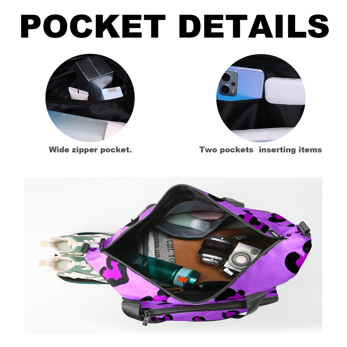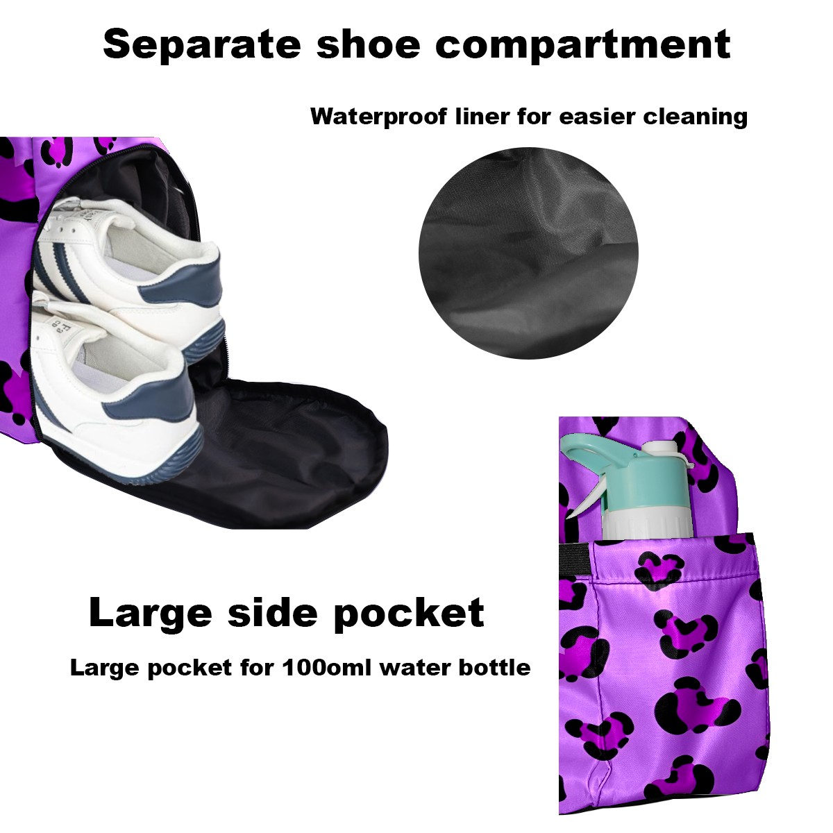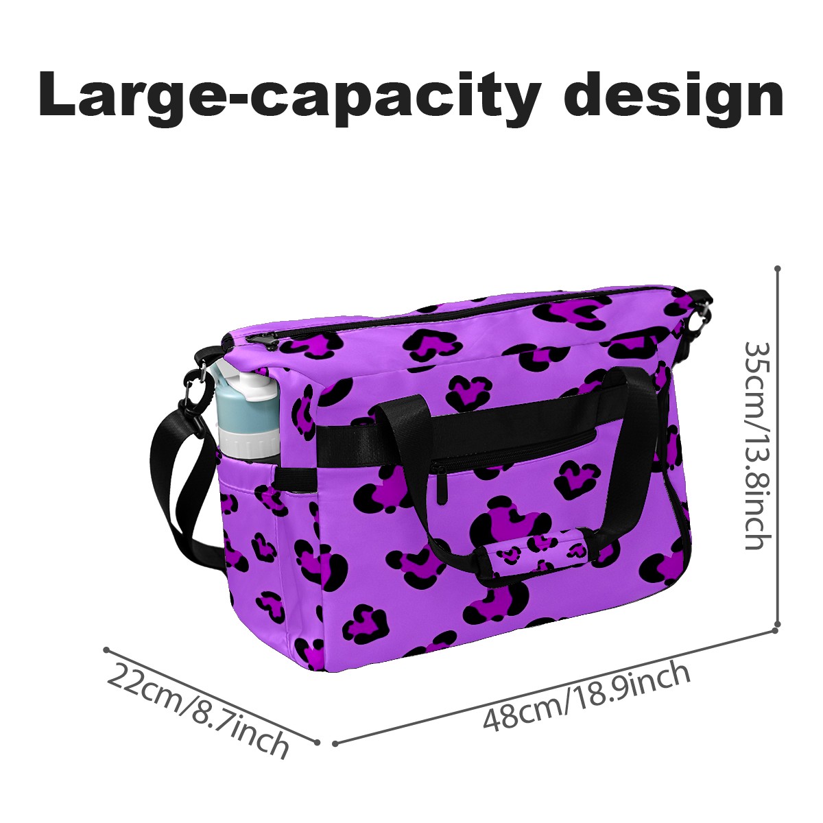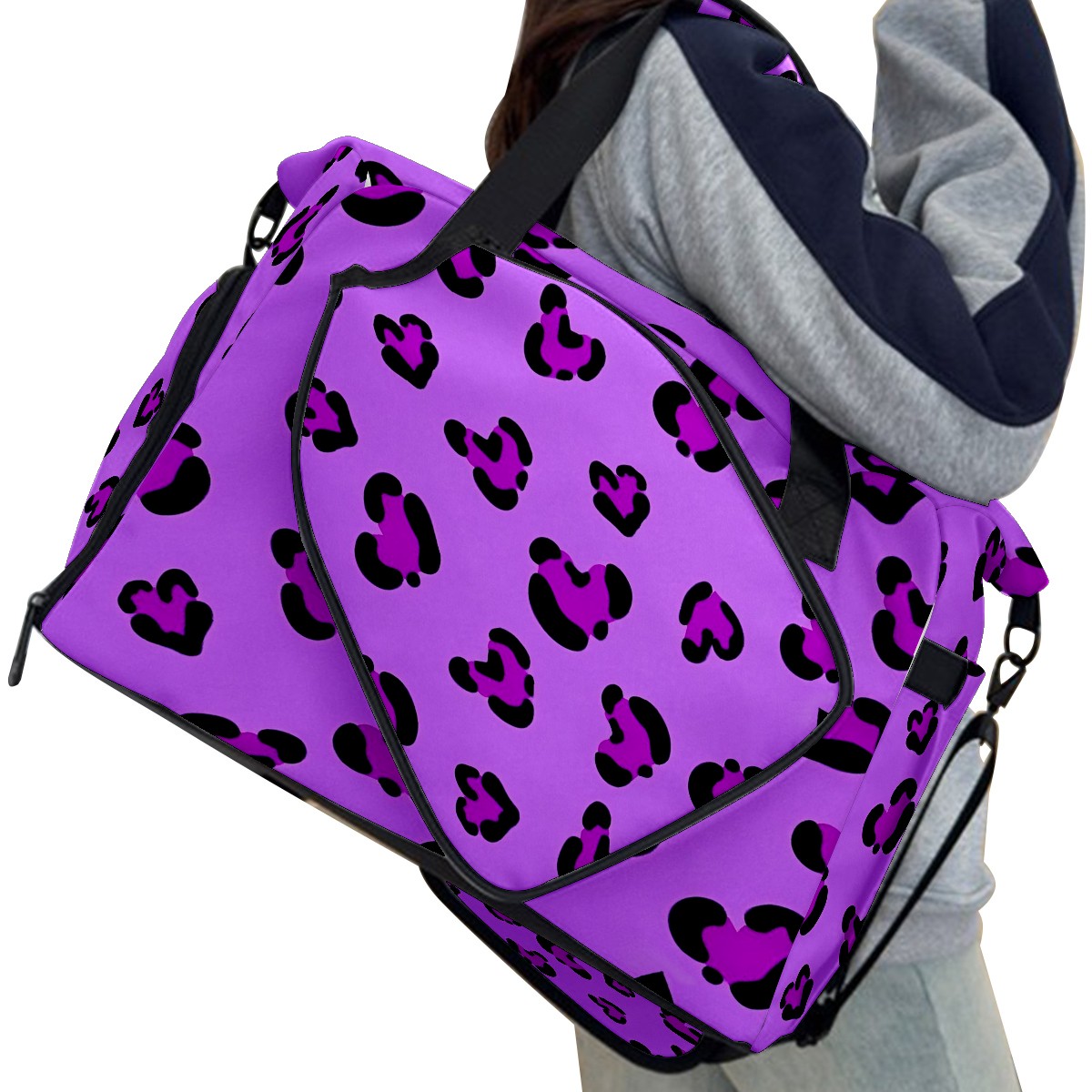 Pickleball Tote Bag Carryall for Paddles Balls and Accessories, Portable Lightweight Gear Bag for Players(Purple Leopard)