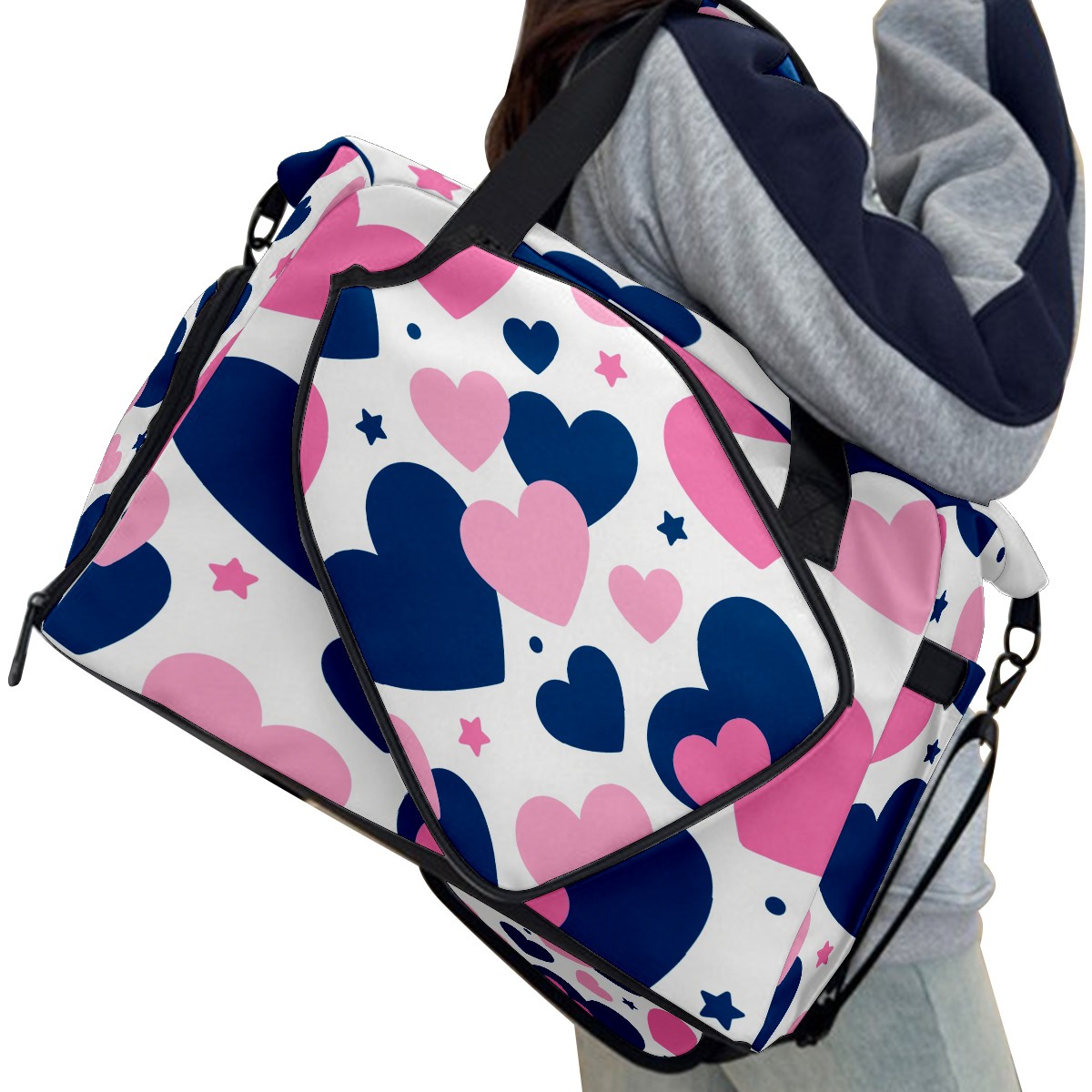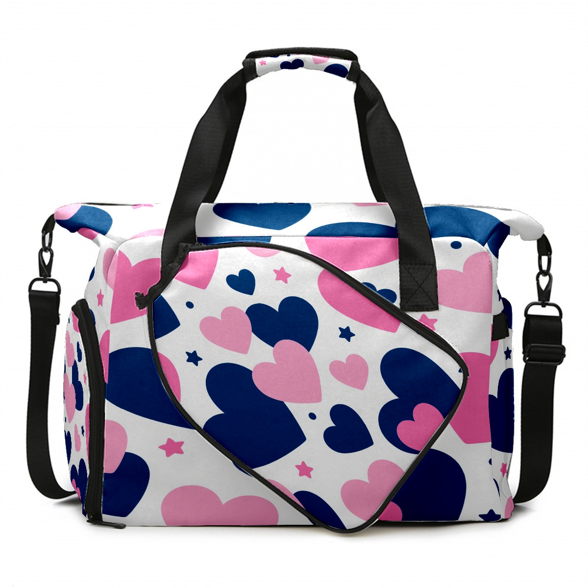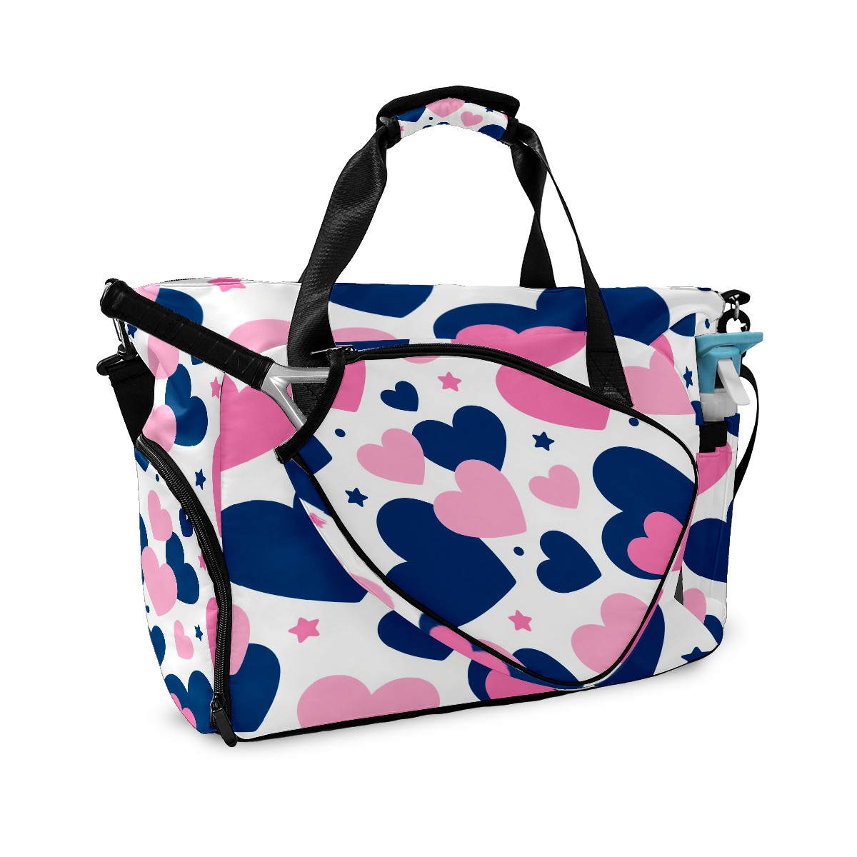 Pickleball Tote Bag Carryall for Paddles Balls and Accessories, Portable Lightweight Gear Bag for Players(Pink Blue Hearts)